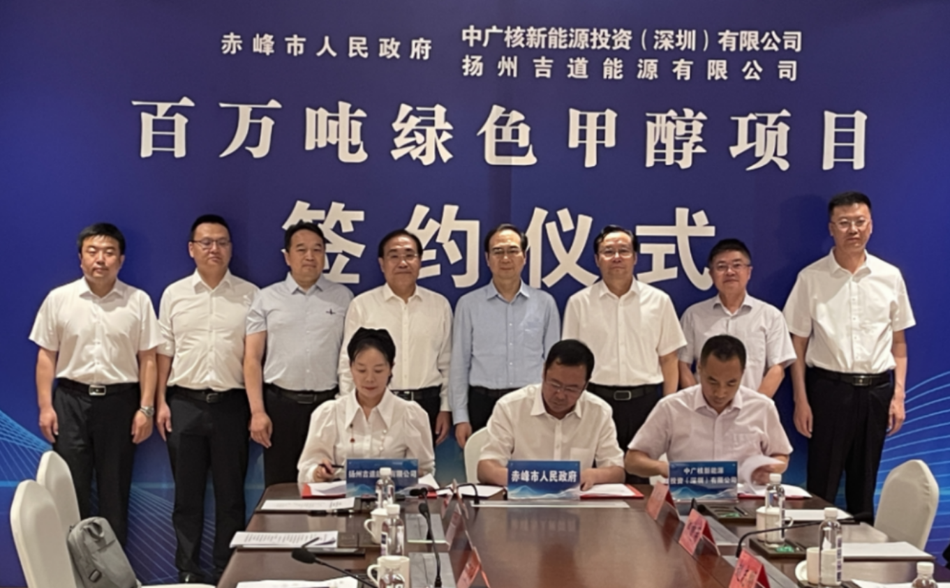 6月13日上午,赤峰市政府與中廣核新能源投資(深圳)有限公司、揚州吉道能源有限公司舉行簽約儀式,三方正式簽約風(fēng)光制氫百萬噸綠色甲醇項目,協(xié)議投資約260億元,項目將落地巴林左旗和阿魯科爾沁旗。 赤峰市委書記萬超岐出席簽約儀式。市委副書記、市長王旺盛主持簽約儀式。中廣核新能源投資(深圳)有限公司黨委書記、董事長、總經(jīng)理張志武,中廣核新能源投資(深圳)有限公司內(nèi)蒙古分公司黨委書記、總經(jīng)理計文博,揚州吉道能源有限公司董事長岳鋅,赤峰市招商大使劉玉彬等企業(yè)負責人出席簽約儀式。赤峰市副市長趙志剛、中廣核新能源投資(深圳)有限公司副總經(jīng)理劉超、揚州吉道能源有限公司副總經(jīng)理陳芳代表三方簽署合作框架協(xié)議。 該項目落地建成后,預(yù)計年產(chǎn)值約84億元,稅收約10億元,安排就業(yè)1000人左右,將對推動我市產(chǎn)業(yè)轉(zhuǎn)型升級和經(jīng)濟高質(zhì)量發(fā)展具有重要意義。 資料顯示,揚州吉道能源有限公司(簡稱“吉道能源”)成立于2021年3月,致力于研發(fā)新型的電解槽結(jié)構(gòu),解決單體電解槽產(chǎn)能擴增難、工作壓力受限、設(shè)備單體占地面積較大等問題,同時降低電解槽能耗以及制造成本。 2021年年底,由吉道能源研制成功的電解槽在上海制造基地全球首發(fā)。該電解槽的制氫量達1350m3/h,最高可達1500m3/h,壓力為2.5MPa,可以節(jié)省50%用地、90%廠房,真正開啟大規(guī)模建設(shè)和應(yīng)用新時代,并擁有多項國際領(lǐng)先關(guān)鍵指標。該電解槽的發(fā)布標志著我國已成功掌握高性能大型電解制氫設(shè)備的關(guān)鍵技術(shù)。同時,和二氧化碳制甲醇、液態(tài)陽光加氫站進一步完善了液態(tài)陽光產(chǎn)業(yè)鏈裝備。 2022年,吉道能源在內(nèi)蒙古有不少動作,也是在內(nèi)蒙古最活躍的制氫創(chuàng)業(yè)公司之一。 2022年8月,吉道能源1GW風(fēng)光電可再生能源制綠氫合成甲醇項目落地鄂托克旗,該項目的快速推進,為我國東北、北部、西北部等地區(qū)豐富的可再生能源大規(guī)模消納儲存開辟了一條全新的產(chǎn)業(yè)鏈條。 2022年11月,鄂托克旗人民政府、鄂托克經(jīng)濟開發(fā)區(qū)管委會與吉道能源舉行投資協(xié)議簽訂儀式。雙方就年產(chǎn)100套室外安全承壓殼式電解槽高端制造基地項目和年產(chǎn)33.75萬噸綠色合成甲醇項目正式簽訂投資協(xié)議。根據(jù)協(xié)議,年產(chǎn)100套室外安全承壓殼式電解槽高端制造基地項目總投資2億元,達產(chǎn)后年產(chǎn)值可達10億元。年產(chǎn)33.75萬噸綠色合成甲醇項目總投資24.8億元,達產(chǎn)后年產(chǎn)值可達22.7億元。 1月10日,巴彥淖爾經(jīng)濟技術(shù)開發(fā)區(qū)與揚州吉道能源有限公司簽訂新能源制氫、生物制綠色甲醇及綠氫設(shè)備裝配制造項目框架合作協(xié)議。根據(jù)協(xié)議,吉道能源擬在巴彥淖爾市投資250億元建設(shè)新能源制氫、生物制綠色甲醇項目。計劃在開發(fā)區(qū)投資建設(shè)年產(chǎn)100臺綠氫設(shè)備裝配制造項目,并將公司總部、行政辦公場所、研發(fā)中心落地開發(fā)區(qū),建成后GDP可達12-14億元。