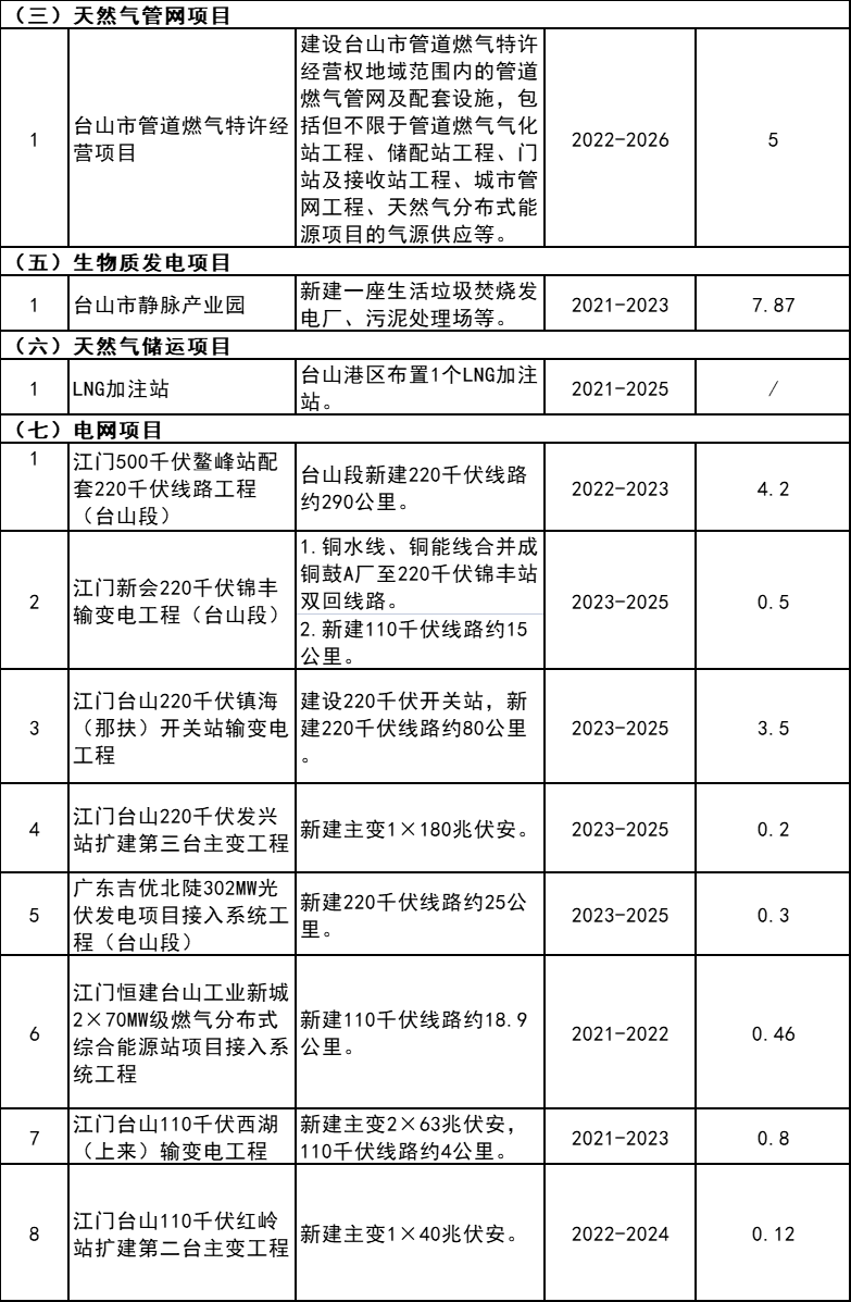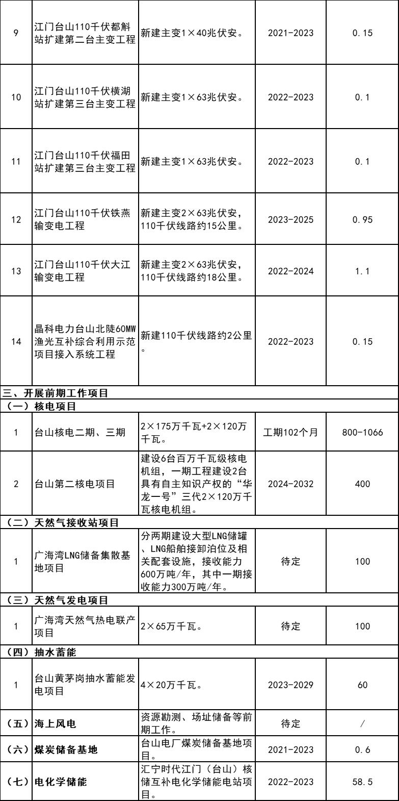 6月20日,臺山市人民政府關(guān)于印發(fā)《臺山市能源發(fā)展“十四五”規(guī)劃(2021-2025年)》的通知,通知指出,新開工的光伏項目700MW,詳情如下: