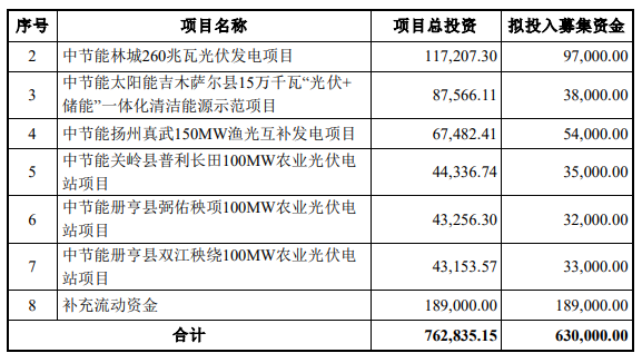 7月14日,中節(jié)能太陽(yáng)能發(fā)布公告稱,本次可轉(zhuǎn)債募集資金不超過(guò)人民幣 63 億元(含本數(shù)),扣除發(fā)行費(fèi)用后的 凈額將全部用于光伏電站項(xiàng)目建設(shè)及補(bǔ)充流動(dòng)資金,具體情況如下: