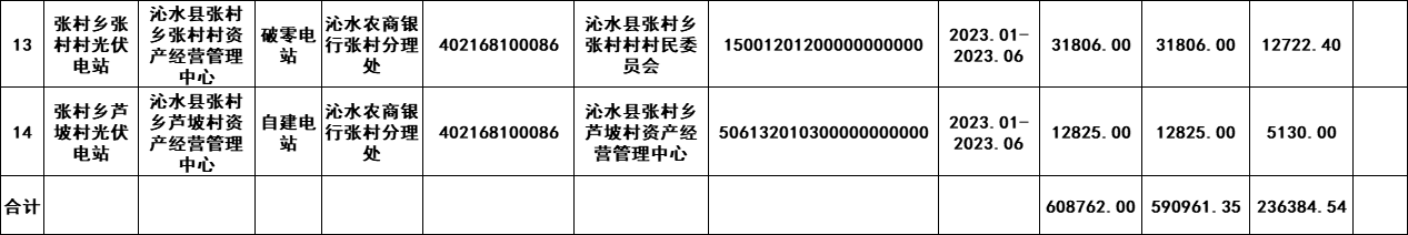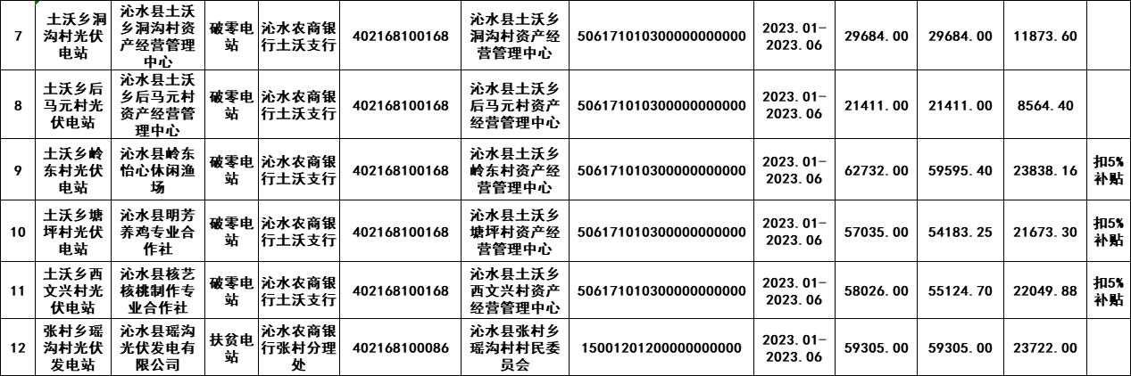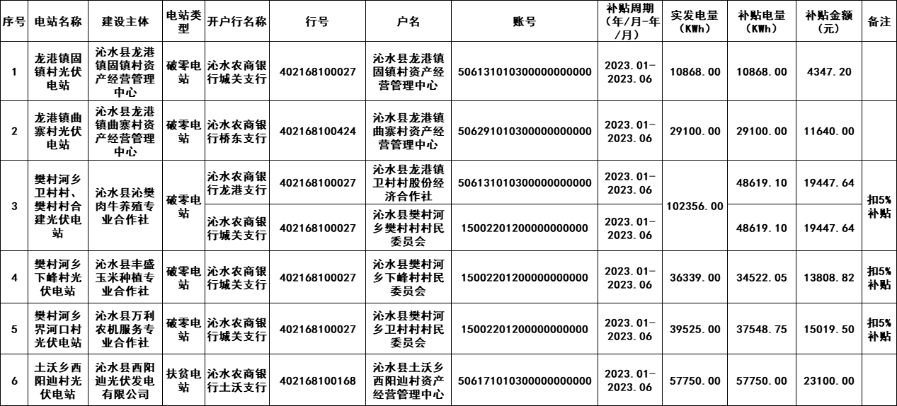 7月17日,沁水縣能源局發(fā)布關(guān)于全縣村級(jí)光伏電站電價(jià)補(bǔ)貼的公示,根據(jù)公示名單,2023年1月至6月,沁水縣有14座村級(jí)光伏電站進(jìn)入補(bǔ)貼清單。補(bǔ)貼電量為590961.35kWh,補(bǔ)貼金額為236384.54元,約合0.4元/kWh。 原文如下: 按照《沁水縣村級(jí)光伏電站電價(jià)補(bǔ)貼實(shí)施細(xì)則》(沁政辦發(fā)〔2020〕29號(hào)),現(xiàn)將2023年1月至6月全縣14座村級(jí)光伏電站電價(jià)補(bǔ)貼情況進(jìn)行公示,公示期為7天(2023年7月18日-2023年7月24日)。如有異議,請(qǐng)與縣能源局聯(lián)系,聯(lián)系電話:0356-3216979。 附件:沁水縣村級(jí)光伏電站電量補(bǔ)貼清單 沁水縣能源局 2023年7月17日 沁水縣村級(jí)光伏電站電量補(bǔ)貼清單(2023.01-2023.06) 單位(公章):沁水縣能源局 2023年7月10日