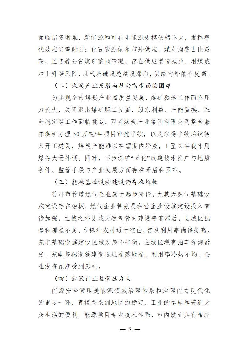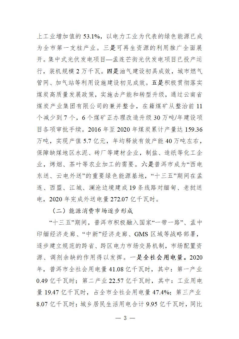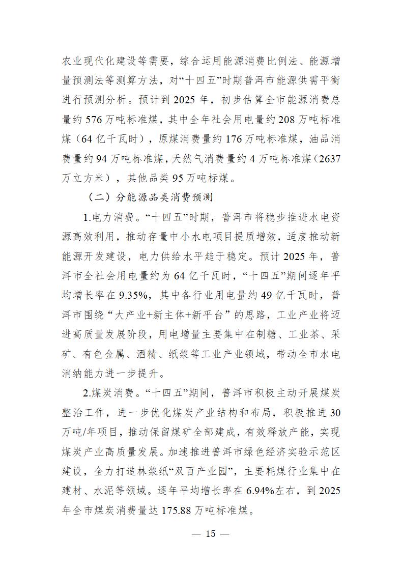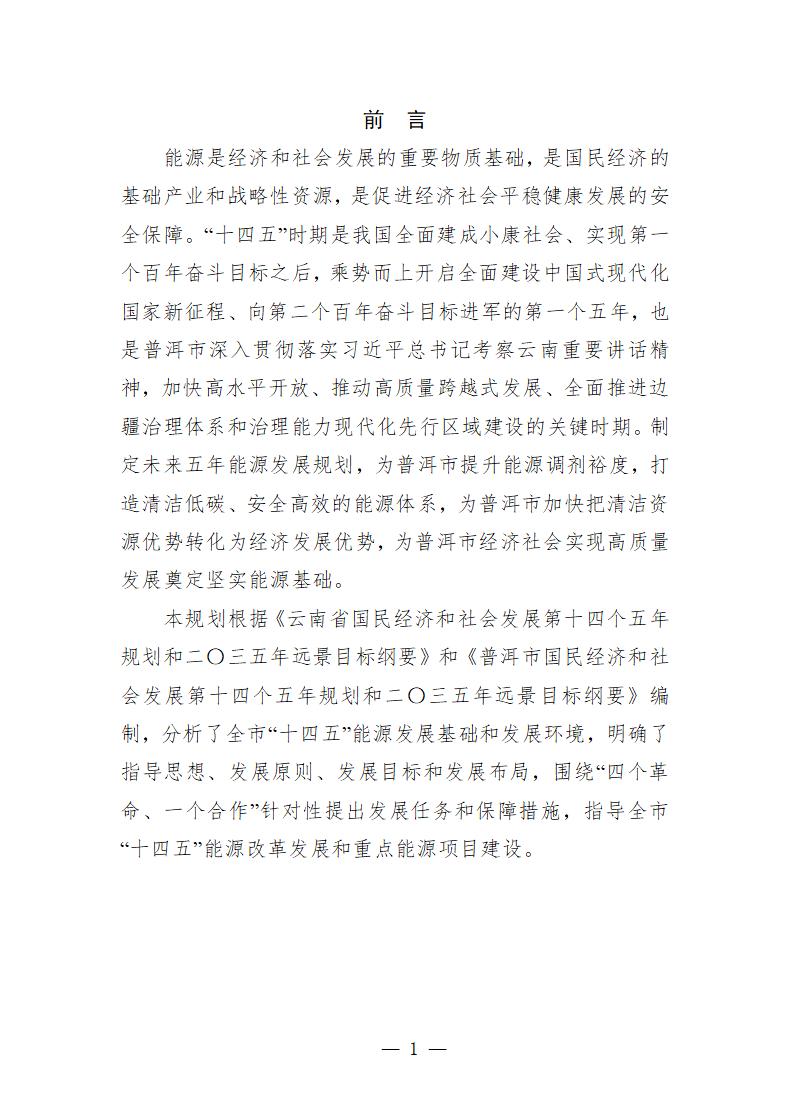 7月17日,普洱市發(fā)展改革委發(fā)布關(guān)于印發(fā)《普洱市能源“十四五”規(guī)劃(公開(kāi)征求意見(jiàn)稿)》(以下簡(jiǎn)稱《規(guī)劃》)的通知?!兑?guī)劃》提出,到2025年,新建裝機(jī)370萬(wàn)千瓦(其中:光伏290萬(wàn)千瓦,風(fēng)電80萬(wàn)千瓦),全市累計(jì)裝機(jī)達(dá)1300萬(wàn)千瓦。 《規(guī)劃》指出綠色能源發(fā)展目標(biāo)——積極爭(zhēng)取省級(jí)統(tǒng)籌規(guī)劃,審慎適度開(kāi)發(fā)風(fēng)電、光伏發(fā)電、地?zé)崮馨l(fā)電,開(kāi)展太陽(yáng)能多元利用,新建垃圾焚燒發(fā)電項(xiàng)目。圍繞現(xiàn)有水電基地,加快普洱市“風(fēng)光水儲(chǔ)”一體化基地建設(shè),通過(guò)存量水電+新建光伏+新建風(fēng)電+地?zé)崮馨l(fā)電,構(gòu)建多能互補(bǔ)的清潔能源基地。 結(jié)合普洱市“風(fēng)光水儲(chǔ)一體化”基地建設(shè),在瀾滄江流域、紅河流域、李仙江流域、阿墨江流域存量水電基地周邊開(kāi)發(fā)建設(shè)“風(fēng)電+光伏”新能源發(fā)電項(xiàng)目?!笆奈濉逼陂g原則上不再新開(kāi)發(fā)中小水電,加大光伏等新能源項(xiàng)目建設(shè),以整線推進(jìn)普洱市風(fēng)光水儲(chǔ)一體化為抓手,在思茅區(qū)、景谷縣、瀾滄縣規(guī)劃布局集中式、分布式光伏發(fā)電(包括農(nóng)光互補(bǔ))項(xiàng)目,在景谷縣布局生物質(zhì)能發(fā)電項(xiàng)目,在鎮(zhèn)沅縣、瀾滄縣布局垃圾焚燒發(fā)電廠項(xiàng)目,在瀾滄縣規(guī)劃建設(shè)風(fēng)能發(fā)電項(xiàng)目。 建立集中式光伏發(fā)電新建項(xiàng)目同步落實(shí)消納市場(chǎng)的機(jī)制,推動(dòng)光電有效消納。推進(jìn)光伏智能化升級(jí),開(kāi)展光伏園區(qū)、光伏建筑、光伏交通、光伏農(nóng)業(yè)、光伏扶貧等方面的智能化示范工作。推進(jìn)“太陽(yáng)能+”模式,加快分布式光伏發(fā)展,推進(jìn)光電、光熱協(xié)同發(fā)展和光伏扶貧工作,鼓勵(lì)工業(yè)企業(yè)、大型公共建筑、火車站、高速公路服務(wù)區(qū)、航站樓、客運(yùn)站等適宜區(qū)域安裝分布式光伏系統(tǒng),鼓勵(lì)企事業(yè)單位建設(shè)太陽(yáng)能集中供熱水工程;擴(kuò)大農(nóng)業(yè)農(nóng)村太陽(yáng)能使用范圍,支持農(nóng)村和城鎮(zhèn)居民安裝太陽(yáng)能熱水器、太陽(yáng)房,推動(dòng)太陽(yáng)能在供暖、制冷、中高溫工業(yè)和民用領(lǐng)域的應(yīng)用;積極推動(dòng)“光伏+生態(tài)”模式,推進(jìn)“農(nóng)光互補(bǔ)”“林光互補(bǔ)”“養(yǎng)光互補(bǔ)”。 詳情如下: