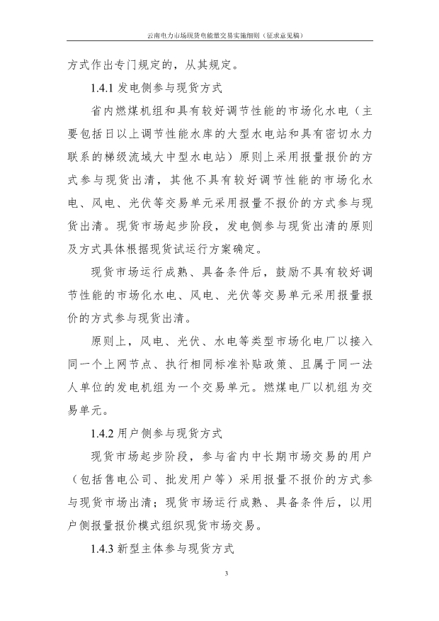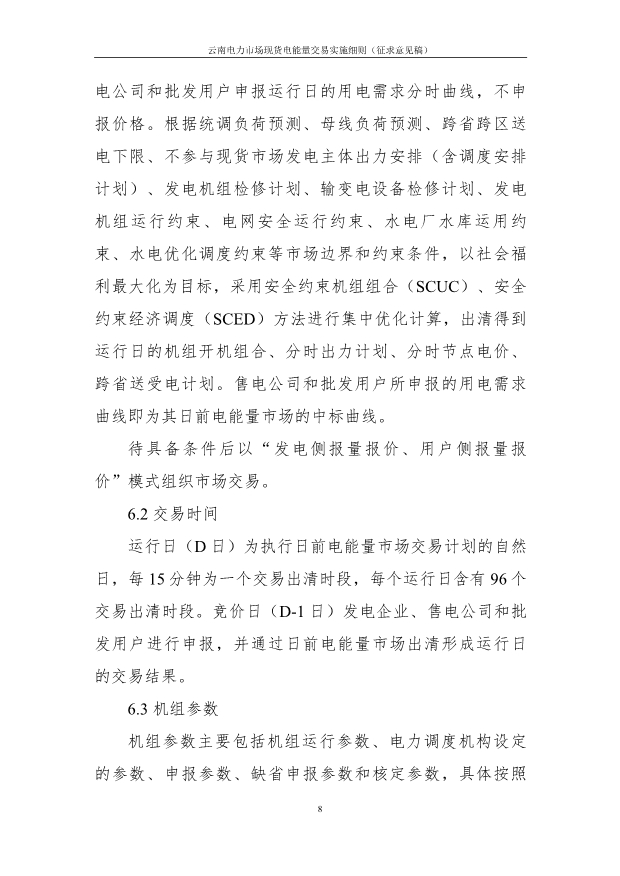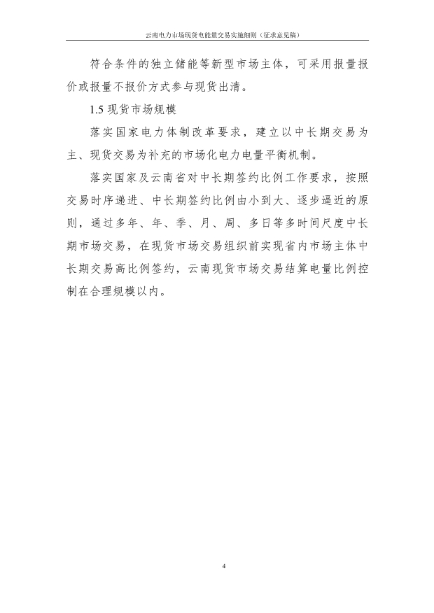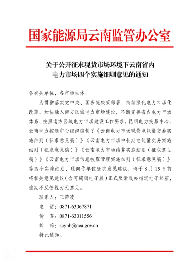 7月28日,國家能源局云南監(jiān)管辦公室印發(fā)關(guān)于公開征求現(xiàn)貨市場環(huán)境下云南省內(nèi)電力市場四個實施細則意見的通知。 云南電力中長期交易主體包括符合準入條件并在昆 明電力交易中心完成準入注冊的各類電力用戶、售電公司、 發(fā)電企業(yè)、負荷聚合商、儲能企業(yè)(包括新型儲能、抽水蓄能電站)等。 通知提出,原則上,參與省內(nèi)中長期市場交易的市場主體均應參與現(xiàn)貨市場交易,參與方式可分為報量報價參與現(xiàn)貨市場、報量不報價參與現(xiàn)貨市場。 參與省內(nèi)中長期市場交易的用戶(包括售電公司、批發(fā)用戶等) 采用報量不報價的方式參與現(xiàn)貨市場出清。符合條件的獨立儲能等新型市場主體,可采用報量報價或報量不報價方式參與現(xiàn)貨出清。調(diào)頻輔助服務(wù)市場與現(xiàn)貨電能量市場采用分步銜接的方式。 詳情如下: