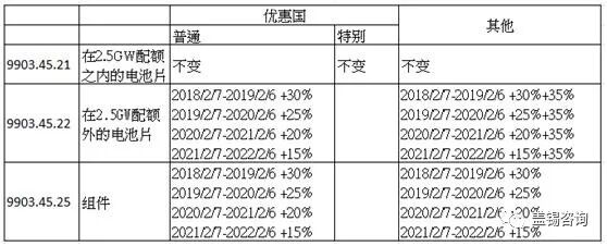 分別代表了:在2.5GW配額之內(nèi)的電池片、在2.5GW配額外的電池片、組件 2、成為排外國的條件是: 1)在開發(fā)中國家的GSP注名單當(dāng)中 2)運(yùn)往美國的量占其年度進(jìn)口額的3%之內(nèi) 排外國的資質(zhì)有可能會(huì)每年復(fù)審一次。 值得注意的是1月24日公布的文件顯示,已有產(chǎn)能的重點(diǎn)排外國為印度、巴西、土耳其、印度尼西亞、南非等。