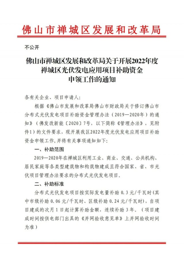 廣東禪城區(qū):分布式光伏補貼0.3元/千瓦時,連補3年!2023-08-21 18:09瀏覽數(shù):169次