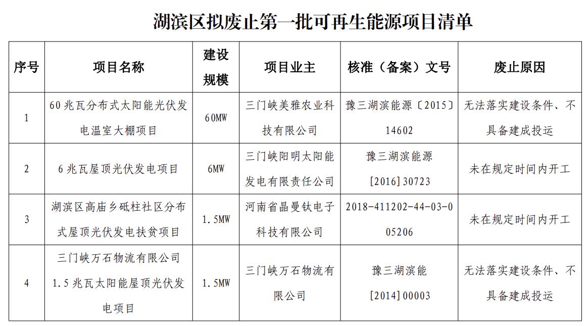 8月31日,河南省三門峽市湖濱區(qū)發(fā)改委公示了第一批擬廢止的可再生能源項目清單,共包含37個分布式光伏項目,合計項目規(guī)模927.3MW,其中,集中式光伏項目690MW、分布式光伏項目237.3MW。 詳情如下: 湖濱區(qū)擬廢止第一批可再生能源項目清單公示 為推動新能源項目健康可持續(xù)發(fā)展,加快新能源項目建設落地,依據(jù)國家能源局關于印發(fā)《光伏電站開發(fā)建設管理辦法》的通知(國能發(fā)新能規(guī)〔2022〕104號)、《河南省發(fā)展和改革委員會關于進一步推動風電光伏發(fā)電項目高質(zhì)量發(fā)展的指導意見》(豫發(fā)改新能源〔2021〕319號)、河南省發(fā)展和改革委員會關于印發(fā)《河南省新能源項目庫管理暫行辦法》的通知和《河南省人民政府辦公廳關于印發(fā)河南省企業(yè)投資項目核準和備案管理辦法的通知》(豫政辦〔2020〕23號)等文件精神,對備案后2年內(nèi)未開工建設或者未辦理任何其他手續(xù)的項目,不具備建設條件的、未納入省可再生能源年度開發(fā)方案、長期占用資源、遲遲未能建成的可再生能源項目進行了梳理?,F(xiàn)將第一批廢止項目予以公示。公示期為2023年8月31日至2023年9月8日。在此期間,如對項目存在異議,請向我委提出書面意見。單位意見需加蓋公章并注明聯(lián)系人和手機號碼,個人意見需提供真實姓名、身份證復印件和手機號碼等信息。 聯(lián)系電話:0398-2851010 郵 箱:hbqfgwny@163.com