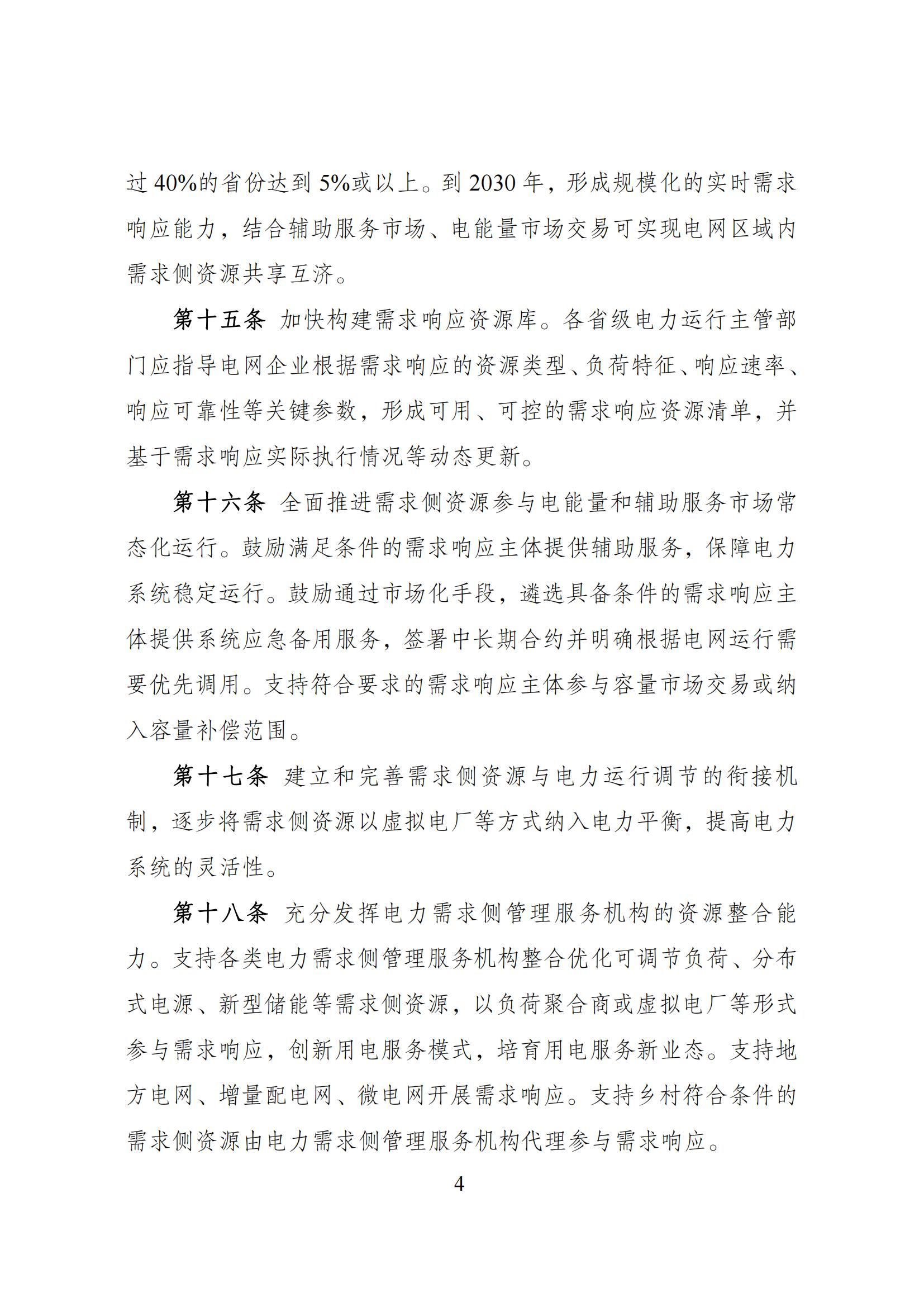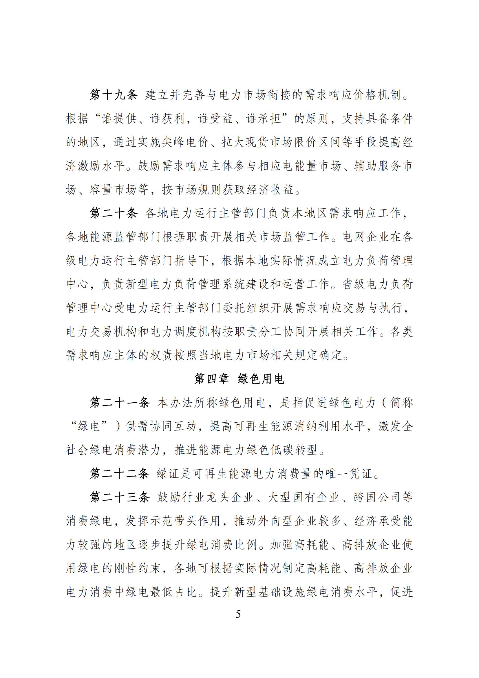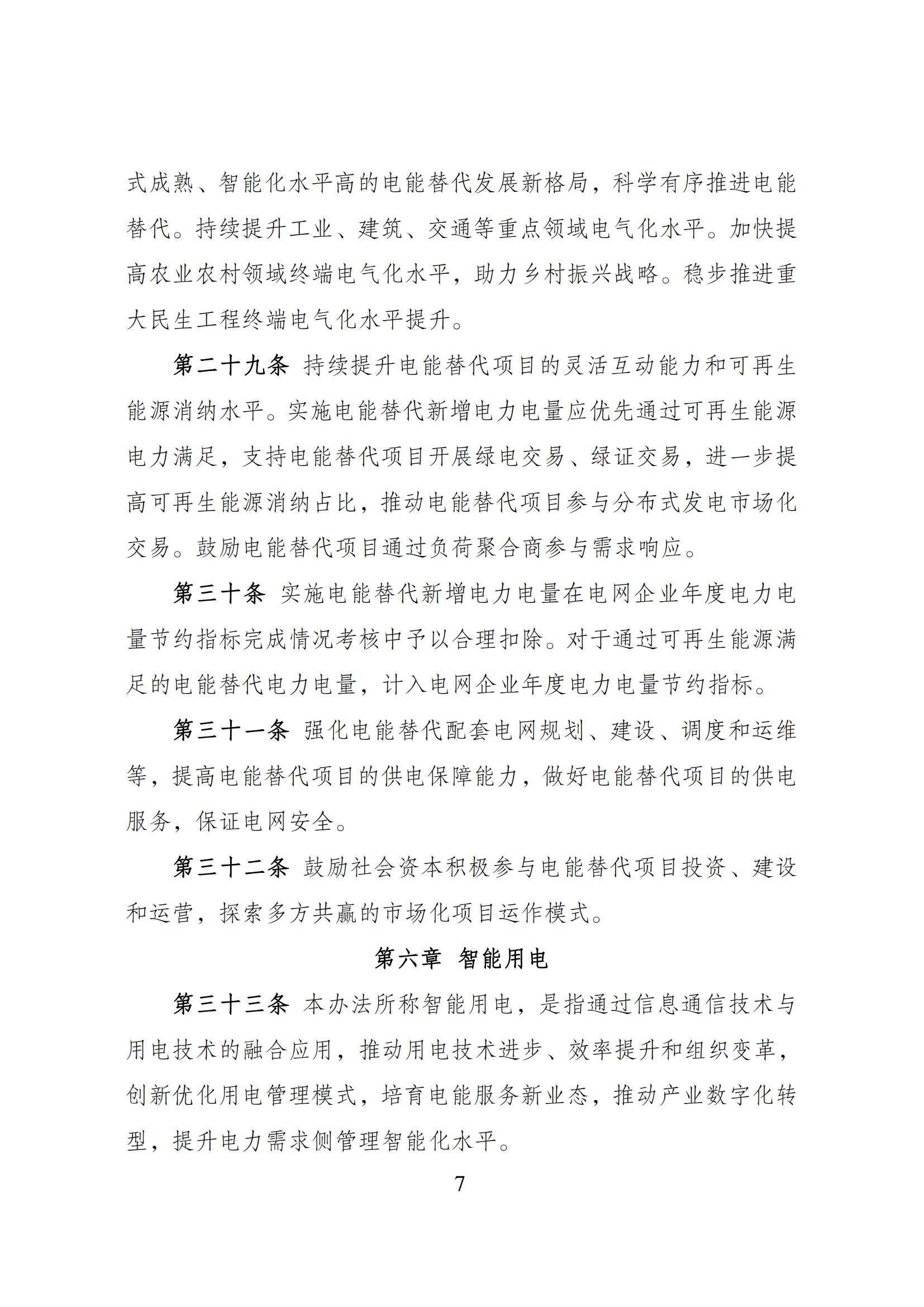9月27日,國家發(fā)展改革委等部門關于印發(fā)《電力需求側(cè)管理辦法(2023年版)》的通知。 通知指出,本辦法所稱電力需求側(cè)管理,是指加強全社會用電管理,綜合采取合理可行的技術、經(jīng)濟和管理措施,優(yōu)化配置電力資源,在用電環(huán)節(jié)實施節(jié)約用電、需求響應、綠色用電、電能替代、 智能用電、有序用電,推動電力系統(tǒng)安全降碳、提效降耗。 節(jié)約用電方面,實施電網(wǎng)企業(yè)電力需求側(cè)管理目標責任考核評價制 度,省級電力運行主管部門制定和下達本級電網(wǎng)企業(yè)電力電量節(jié)約 指標,采取評價與考核相結(jié)合的方式,實行年度評價、統(tǒng)籌考核;電網(wǎng)企業(yè)當年電力、電量節(jié)約指標不低于其售電營業(yè)區(qū)內(nèi)上年最大 用電負荷的 0.3%、上年售電量的 0.3%;電網(wǎng)企業(yè)可通過自行組織 實施或購買服務實現(xiàn)。進一步完善評價考核指標體系,提升非輸配 環(huán)節(jié)項目評價比重。 鼓勵發(fā)展綜合能源服務產(chǎn)業(yè)促進節(jié)電降碳。強化綜合能源服務商、負荷聚合商等新興經(jīng)營主體培育。鼓勵電力需求側(cè)管 理服務機構(gòu)開展合同能源管理、綜合節(jié)能、電力交易、可再生能源 綠色電力證書(簡稱“綠證”)交易以及碳交易等多元化能源服務, 滿足電力用戶的差異化能源需求,助力電力用戶能效提升、節(jié)電降 碳。 需求響應方面,積極拓寬需求響應主體范圍。各類經(jīng)營性電力用戶 均可參與需求響應,有序引導具備響應能力的非經(jīng)營性電力用戶參 與需求響應。鼓勵推廣新型儲能、分布式電源、電動汽車、空調(diào)負 荷等主體參與需求響應。 綠色用電方面,綠證是可再生能源電力消費量的唯一憑證。 鼓勵行業(yè)龍頭企業(yè)、大型國有企業(yè)、跨國公司等 消費綠電,發(fā)揮示范帶頭作用,推動外向型企業(yè)較多、經(jīng)濟承受能 力較強的地區(qū)逐步提升綠電消費比例。加強高耗能、高排放企業(yè)使 用綠電的剛性約束,各地可根據(jù)實際情況制定高耗能、高排放企業(yè) 電力消費中綠電最低占比。提升新型基礎設施綠電消費水平,促進 綠電就近消納。 積極推動工業(yè)廠房、公共建筑等屋 頂光伏建設和實施光伏建筑一體化應用,因地制宜推廣淺層地熱驅(qū) 動的冷熱電一體化模式。 推動配電網(wǎng)增容、線路改造和智能化升級,提升 配電網(wǎng)規(guī)模化接入分布式電源、柔性負荷的能力,推進電網(wǎng)運行方 式向源網(wǎng)荷儲互動、分層分區(qū)協(xié)同控制轉(zhuǎn)變。支持工業(yè)企業(yè)、產(chǎn)業(yè) 園區(qū)、具備條件的鄉(xiāng)村地區(qū)等開展綠色低碳微電網(wǎng)和源網(wǎng)荷儲一體 化建設。 電能替代方面,持續(xù)提升電能替代項目的靈活互動能力和可再生 能源消納水平。實施電能替代新增電力電量應優(yōu)先通過可再生能源 電力滿足,支持電能替代項目開展綠電交易、綠證交易,進一步提 高可再生能源消納占比,推動電能替代項目參與分布式發(fā)電市場化 交易。鼓勵電能替代項目通過負荷聚合商參與需求響應。 實施電能替代新增電力電量在電網(wǎng)企業(yè)年度電力電 量節(jié)約指標完成情況考核中予以合理扣除。對于通過可再生能源滿 足的電能替代電力電量,計入電網(wǎng)企業(yè) 年度電力電量節(jié)約指標。 9月27日,國家發(fā)展改革委有關負責同志就《電力需求側(cè)管理辦法(2023年版)》答記者問。 原文見下: 近日,國家發(fā)展改革委、工業(yè)和信息化部、財政部、住房和城鄉(xiāng)建設部、國務院國資委、國家能源局聯(lián)合發(fā)布了新修訂的《電力需求側(cè)管理辦法(2023年版)》(以下簡稱《辦法》),就此,記者專訪了國家發(fā)展改革委有關負責同志。 問:《辦法》修訂的背景和意義是什么? 答:電力需求側(cè)管理,是指加強全社會用電管理,綜合采取合理可行的技術、經(jīng)濟和管理措施,優(yōu)化配置電力資源,在用電環(huán)節(jié)實施節(jié)約用電、需求響應、綠色用電、電能替代、智能用電、有序用電,推動電力系統(tǒng)安全降碳、提效降耗。深化電力需求側(cè)管理,充分挖掘需求側(cè)資源,對推動源網(wǎng)荷儲協(xié)同互動,保障電力安全穩(wěn)定運行,助力新型電力系統(tǒng)和新型能源體系建設具有重要意義。 我國上世紀90年代開始引入電力需求側(cè)管理,在實踐中不斷完善,分別于2010年、2017年發(fā)布了兩版電力需求側(cè)管理辦法?,F(xiàn)行《電力需求側(cè)管理辦法》(修訂版)自2017年9月20日起實施,對推動節(jié)能減排和電力經(jīng)濟綠色發(fā)展,加快生態(tài)文明建設發(fā)揮了積極作用。近年來各地、各部門從推動市場化需求響應、促進節(jié)能降耗、擴大綠電消費、保障電力安全等方面不斷豐富電力需求側(cè)管理實踐,虛擬電廠運營商、負荷聚合商等新興主體不斷涌現(xiàn),為電力系統(tǒng)安全、經(jīng)濟、高效、綠色運行提供了有力支撐。 黨的二十大報告提出,要加快規(guī)劃建設新型能源體系,加強能源產(chǎn)供儲銷體系建設,確保能源安全。為更好適應我國經(jīng)濟社會和能源發(fā)展所面臨的新形勢、新任務,去年以來,國家發(fā)展改革委會同有關方面,在認真總結(jié)電力需求側(cè)管理工作