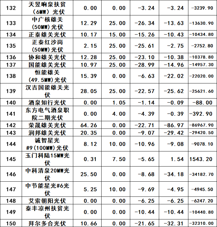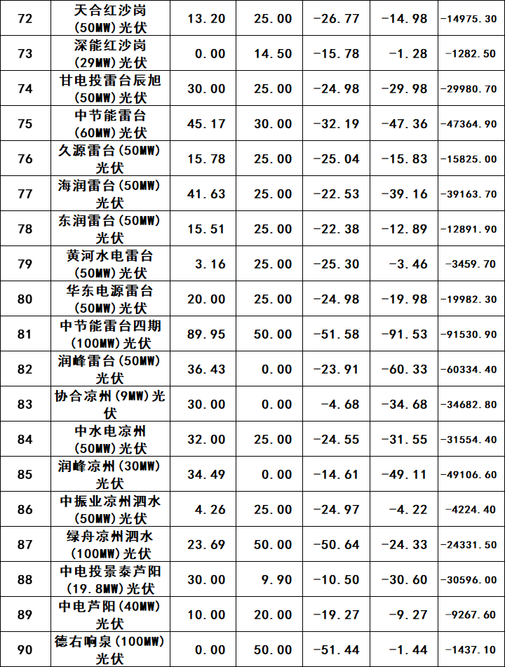 10月10日,甘肅能源監(jiān)管辦關(guān)于公布甘肅電網(wǎng)2023年7月份“兩個(gè)細(xì)則”結(jié)算執(zhí)行情況的通知。 原文如下: 國(guó)網(wǎng)甘肅省電力公司,甘肅電力交易中心有限公司: 根據(jù)《國(guó)家能源局西北監(jiān)管局關(guān)于印發(fā)<西北區(qū)域發(fā)電廠并網(wǎng)運(yùn)行管理實(shí)施細(xì)則>及<西北區(qū)域并網(wǎng)發(fā)電廠輔助服務(wù)管理實(shí)施細(xì)則>的通知》(西北監(jiān)能市場(chǎng)〔2018〕66號(hào))、《國(guó)家能源局西北監(jiān)管局關(guān)于印發(fā)<西北區(qū)域發(fā)電廠并網(wǎng)運(yùn)行管理實(shí)施細(xì)則><西北區(qū)域并網(wǎng)發(fā)電廠輔助服務(wù)管理實(shí)施細(xì)則>補(bǔ)充規(guī)定的通知》(西北監(jiān)能市場(chǎng)〔2022〕1號(hào))等有關(guān)規(guī)定,國(guó)網(wǎng)甘肅省電力公司向甘肅能源監(jiān)管辦報(bào)送了2023年7月份“兩個(gè)細(xì)則”執(zhí)行情況。經(jīng)公示無異議,現(xiàn)予公布,請(qǐng)據(jù)此結(jié)算。 特此通知。 附件1:2023年7月份甘肅電網(wǎng)“兩個(gè)細(xì)則”結(jié)算執(zhí)行情況(2023101015537) 甘肅能源監(jiān)管辦 2023年10月9日 2023年7月份甘肅電網(wǎng)“兩個(gè)細(xì)則”結(jié)算執(zhí)行情況(光伏)