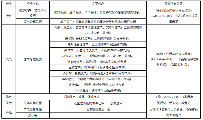 10月18日,江山棒杰新能源科技有限公司年產(chǎn)16GW N型高效電池片及年產(chǎn)16GW大尺寸光伏硅片切片建設(shè)項(xiàng)目環(huán)境影響評(píng)價(jià)公告發(fā)布。 一、建設(shè)項(xiàng)目情基本情況 (1)項(xiàng)目名稱: 年產(chǎn)16GW N型高效電池片及年產(chǎn)16GW大尺寸光伏硅片切片項(xiàng)目 (2)建設(shè)地點(diǎn):江山經(jīng)濟(jì)開發(fā)區(qū)蓮華山工業(yè)園 (3)行業(yè)類別:C3825光伏設(shè)備及元器件制造 (4)建設(shè)規(guī)模:項(xiàng)目擬于江山經(jīng)濟(jì)開發(fā)區(qū)蓮華山工業(yè)園實(shí)施年產(chǎn)16GWN型高效電池片及年產(chǎn)16GW大尺寸光伏硅片切片項(xiàng)目,項(xiàng)目分期建設(shè),一期擬投資598740.54萬元,利用開發(fā)區(qū)795畝土地,規(guī)劃建設(shè)生產(chǎn)車間、原料、成品倉庫及其他附屬生產(chǎn)設(shè)施,購置先進(jìn)的全自動(dòng)硅片上下料機(jī)、單晶槽式制絨設(shè)備、全自動(dòng)石英舟裝卻片機(jī)、管式擴(kuò)散氧化退火爐、激光摻硼設(shè)備、全自動(dòng)石英舟裝卸片機(jī)及配套環(huán)保處置設(shè)備,形成年產(chǎn)16GWN型TOPCon高效光伏電池片的生產(chǎn)能力。二期擬投資162980.39萬元,利用開發(fā)區(qū)200畝土地,規(guī)劃建設(shè)生產(chǎn)車間、原料、成品倉庫及其他附屬生產(chǎn)設(shè)施,購置先進(jìn)的粘棒自動(dòng)錢、切片機(jī)、切片自動(dòng)線體、脫膠機(jī)、插片清洗一體機(jī)及配套環(huán)保處置設(shè)備,形成年產(chǎn)16GW大尺寸光伏硅片切片的生產(chǎn)能力。項(xiàng)目已向江山市經(jīng)濟(jì)和信息化局備案,項(xiàng)目代碼:2308-330881-07-01-385643。本次評(píng)價(jià)針對(duì)項(xiàng)目一期建設(shè)內(nèi)容。 二、環(huán)境影響評(píng)價(jià)范圍內(nèi)主要敏感目標(biāo)分布情況 本項(xiàng)目主要保護(hù)對(duì)象情況見表1。 表1評(píng)價(jià)范圍內(nèi)主要敏感目標(biāo)分布情況 三、主要環(huán)境影響預(yù)測(cè)情況 (1)廢氣 項(xiàng)目生產(chǎn)線廢氣因子主要為顆粒物、二氧化硫、氮氧化物、氯化氫、氟化物、氯氣、氨、硫化氫、非甲烷總烴等。根據(jù)預(yù)測(cè),在正常工況下,該項(xiàng)目廢氣經(jīng)廢氣處理設(shè)施處理后對(duì)周圍大氣環(huán)境影響不大,能達(dá)到功能區(qū)類別要求。 (2)廢水 項(xiàng)目廢水主要包括生產(chǎn)工藝廢水及公用工程廢水,公用工程廢水主要為廢氣吸收廢水、地面沖洗廢水、純水制備濃水、循環(huán)冷卻系統(tǒng)排水、初期雨水以及生活污水等。 項(xiàng)目廢水經(jīng)廠區(qū)污水處理站處理達(dá)標(biāo)后納管送賀村污水處理廠處理,對(duì)周圍水環(huán)境影響不大。 (3)噪聲 該項(xiàng)目實(shí)施后產(chǎn)噪設(shè)備主要為空壓機(jī)、輸送泵、風(fēng)機(jī)等,其噪聲源強(qiáng)在70~85dB之間,噪聲經(jīng)廠房與圍墻隔音、屏蔽、衰減作用后,可以有效降低噪聲強(qiáng)度,對(duì)周圍環(huán)境無明顯影響。預(yù)計(jì)項(xiàng)目實(shí)施后公司廠界四周環(huán)境質(zhì)量現(xiàn)狀仍能達(dá)到《工業(yè)企業(yè)廠界環(huán)境噪聲排放標(biāo)準(zhǔn)》(GB12348-2008)中的3類區(qū)標(biāo)準(zhǔn),對(duì)周圍聲環(huán)境質(zhì)量影響不大。 (4)固廢 本項(xiàng)目固廢主要有晶硅碎片、廢電池片、硅粉塵、廢膜、廢樹脂、廢氧化鋁、廢活性炭纖維、含氟污泥生化剩余污泥、廢包裝材料、廢礦物油廢過濾芯、含酸堿抹布、廢手套、含油抹布、廢手套、廢酸堿管道、廢石英管、廢填料、凈化塔結(jié)晶物、廢試劑、廢液、生活垃圾等。項(xiàng)目產(chǎn)生的危廢均委托具有危廢處理資質(zhì)單位處置,生活垃圾委托環(huán)衛(wèi)部門定期清運(yùn)。只要企業(yè)認(rèn)真落實(shí)上述各固廢的處置措施,則該企業(yè)固廢對(duì)周圍環(huán)境影響不大。 四、擬采取的主要環(huán)保措施、環(huán)境風(fēng)險(xiǎn)防范措施以及預(yù)期效果 本項(xiàng)目擬采取的主要環(huán)保措施及預(yù)期效果見表2。 表2 污染治理措施匯總表 五、環(huán)境影響評(píng)價(jià)結(jié)論的要點(diǎn) 本項(xiàng)目位于浙江省衢州市江山經(jīng)濟(jì)開發(fā)區(qū)蓮華山工業(yè)園內(nèi),項(xiàng)目地塊屬于工業(yè)用地,項(xiàng)目建設(shè)符合國家及地方產(chǎn)業(yè)政策,符合浙江省衢州市江山市蓮華山產(chǎn)業(yè)集聚重點(diǎn)管控單元相關(guān)要求,符合江山市“三線一單”分區(qū)管控方案相關(guān)要求。落實(shí)各項(xiàng)污染防治措施后,污染物均能做到達(dá)標(biāo)排放;項(xiàng)目符合總量控制原則。各污染物經(jīng)治理達(dá)標(biāo)排放后對(duì)周圍環(huán)境的貢獻(xiàn)量不大,對(duì)環(huán)境保護(hù)目標(biāo)的影響較小,當(dāng)?shù)丨h(huán)境質(zhì)量仍能滿足功能區(qū)要求。 建設(shè)單位應(yīng)切實(shí)落實(shí)各項(xiàng)污染治理措施,嚴(yán)格執(zhí)行“三同時(shí)”制度,加強(qiáng)環(huán)保管理,確保污染物穩(wěn)定達(dá)標(biāo)排放,將項(xiàng)目對(duì)周邊環(huán)境的影響降至最低。 六、征求意見范圍、對(duì)象和期限 主要為評(píng)價(jià)范圍5km×5km(擬建地為中心,主導(dǎo)風(fēng)向?yàn)橹鬏S)區(qū)域內(nèi)的公眾。公眾對(duì)建設(shè)項(xiàng
