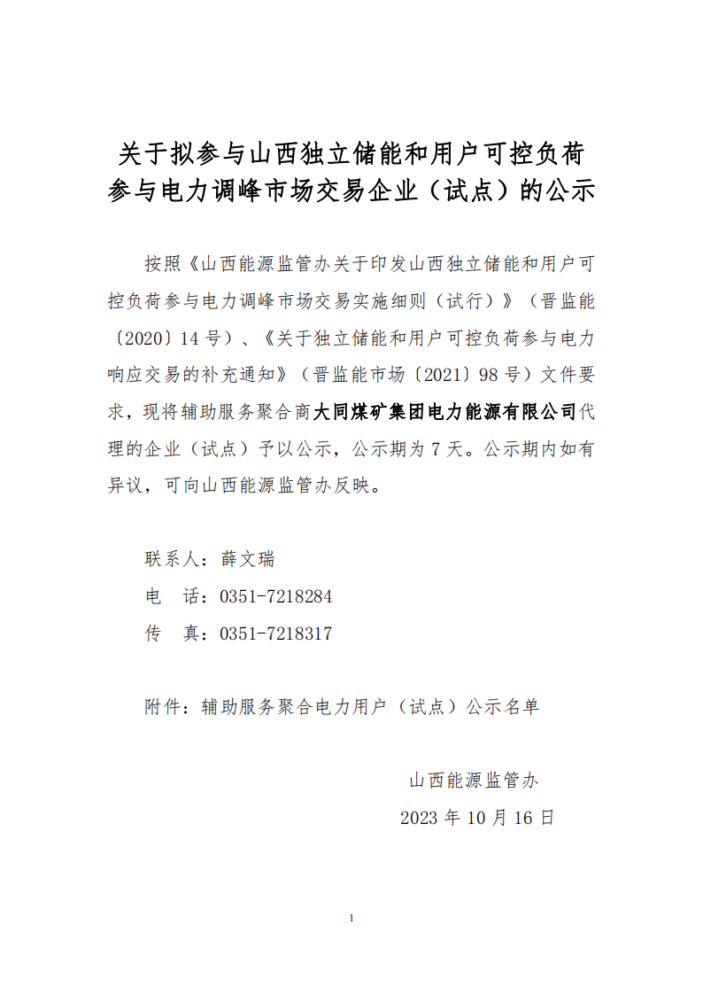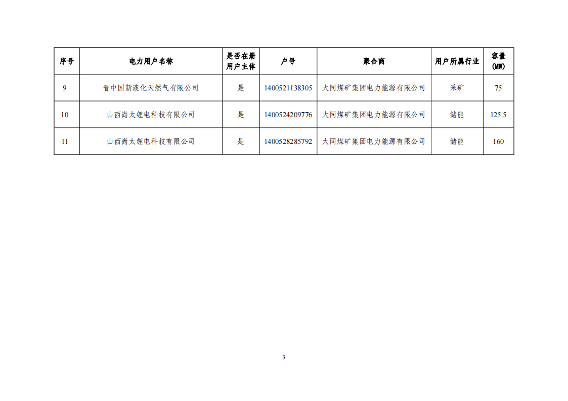 10月31日,山西能監(jiān)辦公示新一批擬參與山西獨(dú)立儲(chǔ)能和用戶(hù)可控負(fù)荷參與電力調(diào)峰市場(chǎng)交易企業(yè)(試點(diǎn))。新增11家輔助服務(wù)聚合電力用戶(hù),聚合商大同煤礦集團(tuán)電力能源有限公司容量共計(jì)1210.95MW。