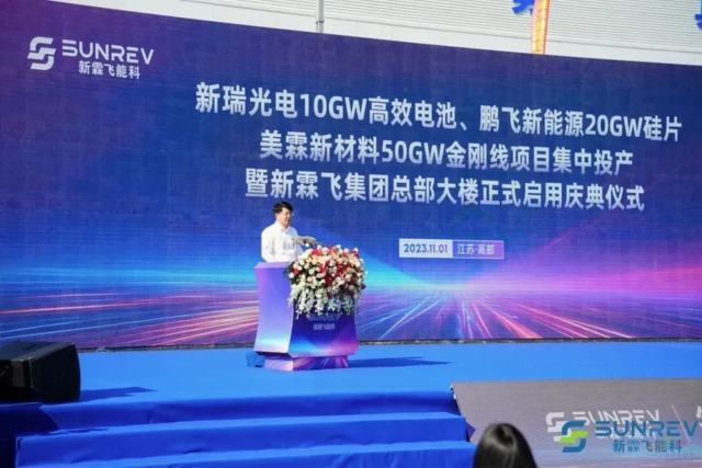 11月1日,新瑞光電10GW高效電池、鵬飛新能源20GW硅片、美霖新材料50GW金剛線項(xiàng)目集中投產(chǎn)暨新霖飛集團(tuán)總部大樓啟用儀式在江蘇高郵經(jīng)開區(qū)舉行。據(jù)了解,3個(gè)項(xiàng)目總投資約125億元,全部達(dá)產(chǎn)后預(yù)計(jì)實(shí)現(xiàn)年開票銷售185億元以上。 新瑞光電隸屬于新霖飛集團(tuán),成立于2022年10月,不久后便宣布在江蘇省高郵市建設(shè)年產(chǎn)12GW新型高效光伏電池項(xiàng)目,其中10GW為當(dāng)前國內(nèi)外最主流的TOPCon電池,2GW為極具潛力的HJT電池,總投資100億元。2023年1月31日,新瑞光電項(xiàng)目正式開工。 鵬飛新能源20GW硅片項(xiàng)目由由新霖飛集團(tuán)與雙良集團(tuán)合資投建,項(xiàng)目總投資額達(dá)到20億元,于7月14日下線。 美霖新材料50GW金剛線項(xiàng)目總投資約5億元,一期設(shè)備投資2億元以上,可形成年產(chǎn)50GW金剛線產(chǎn)能,實(shí)現(xiàn)年開票銷售5億元以上。 新霖飛集團(tuán)起源于2008年,至今已深耕光伏新能源領(lǐng)域十多年,在江蘇省揚(yáng)州市、高郵市、宿遷、江陰等地建成9個(gè)生產(chǎn)基地,投資新瑞光電、中環(huán)半導(dǎo)體、新霖飛(揚(yáng)州)光伏、中環(huán)艾能、晶旺新能源、宏潤光電等十多家子公司。 業(yè)務(wù)涵蓋單晶硅切片、大尺寸單晶電池、大尺寸高效組件的研發(fā)與生產(chǎn),以及產(chǎn)業(yè)下游的光伏電站建設(shè)運(yùn)營。集團(tuán)下屬公司已集結(jié)形成垂直一體化、全覆蓋的產(chǎn)業(yè)布局。至2023年底,公司切片產(chǎn)能將達(dá)到65GW、高效電池片產(chǎn)能突破26GW、組件達(dá)到6GW產(chǎn)能。