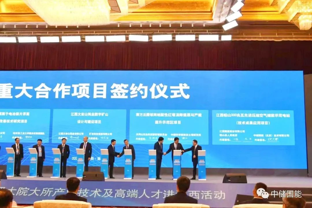 11月2日,在江西省委書記、省人大常委會主任尹弘,省委副書記、省長葉建春,中國科學(xué)院副院長汪克強(qiáng)等領(lǐng)導(dǎo)的見證下,中儲國能(北京)技術(shù)有限公司與江西贛能股份有限公司、江西鉛山縣人民政府,在“2023江西智庫峰會”重大合作項目簽約儀式環(huán)節(jié)簽訂了“江西鉛山300MW先進(jìn)壓縮空氣儲能示范電站”戰(zhàn)略合作協(xié)議。 江西鉛山300MW先進(jìn)壓縮空氣儲能示范電站項目建設(shè)規(guī)模為300MW/1200MWh,作為江西省首個300MW先進(jìn)壓縮空氣儲能示范項目,將有利于江西新能源資源開發(fā)、電網(wǎng)高效運(yùn)行,助力江西省打造國家清潔能源產(chǎn)業(yè)高地。 未來,中儲國能將以國際領(lǐng)先的先進(jìn)壓縮空氣儲能技術(shù)及工程深度參與江西省能源結(jié)構(gòu)調(diào)整,助力江西能源高質(zhì)量發(fā)展。