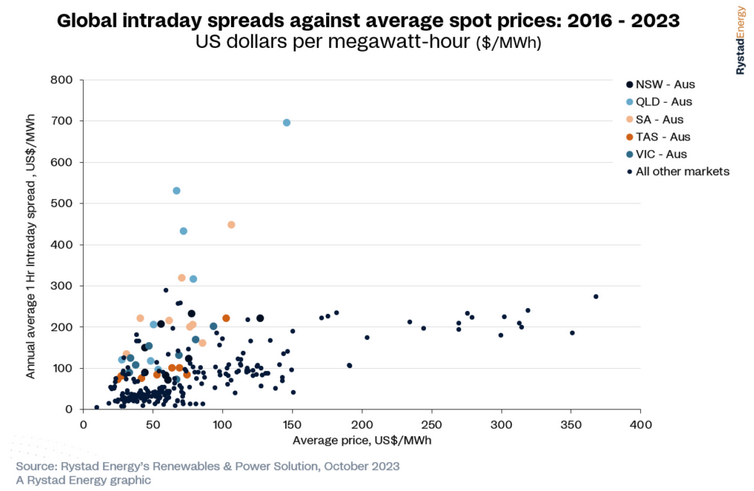 澳大利亞國家電力市場(NEM)被稱之為世界上電力價(jià)格最不穩(wěn)定的電力市場,迫切需要部署儲能系統(tǒng)來緩解這種電價(jià)波動。 根據(jù)調(diào)研機(jī)構(gòu)Rystad Energy公司最近進(jìn)行的一項(xiàng)研究,根據(jù)公開數(shù)據(jù),在全球39個電力市場中,澳大利亞國家電力市場(NEM)的日內(nèi)電價(jià)波動幅度最大。緊隨其后的是日本和菲律賓的電力市場,以及美國的加利福尼亞州和德克薩斯州。 圖1全球2016~2023年日內(nèi)價(jià)差相對于平均電力價(jià)格(美元/MWh) Rystad Energy公司表示,澳大利亞能源市場的5個州的電力價(jià)格波動程度遠(yuǎn)遠(yuǎn)高于其他40個市場。 澳大利亞國家電力市場(NEM)將澳大利亞維多利亞州、昆士蘭州、新南威爾士州、南澳大利亞州和塔斯馬尼亞州的電力市場進(jìn)行了互聯(lián)。淘汰燃煤發(fā)電、自然災(zāi)害對輸電基礎(chǔ)設(shè)施的影響以及可再生能源(主要來自太陽能發(fā)電設(shè)施)在電網(wǎng)中的日益滲透是造成這種波動的因素。 在Rystad Energy公司的研究中,電力價(jià)格的波動性是指根據(jù)一年來收集的數(shù)據(jù),在任何給定小時(shí)內(nèi)記錄的最高和最低電力價(jià)格之間的差異。 其答案似乎與澳大利亞聯(lián)邦政府在能源政策方面提出的兩個主要優(yōu)先事項(xiàng)一致:一是構(gòu)建和升級輸電網(wǎng)絡(luò),二是部署更多的儲能系統(tǒng)。 Rystad Energy公司得出結(jié)論,到2050年,平衡澳大利亞國家電力市場(NEM)將需要運(yùn)營46GW/640GWh儲能系統(tǒng),該公司建議將公用事業(yè)規(guī)模的電池儲能系統(tǒng)和抽水蓄能發(fā)電設(shè)施(PHES)相結(jié)合。 如果有什么不同的話,Rystad Energy公司的預(yù)測可能是澳大利亞能源市場運(yùn)營商(AEMO)提供的保守?cái)?shù)據(jù):到本世紀(jì)中葉,澳大利亞國家電力市場(NEM)需要運(yùn)營44GW~96GW/550GWh~950GWh的儲能系統(tǒng)。 同樣,科學(xué)機(jī)構(gòu)澳大利亞聯(lián)邦科學(xué)與工業(yè)研究組織(CSIRO)表示,為了實(shí)現(xiàn)2050年凈零排放目標(biāo),澳大利亞國家電力市場(NEM)部署儲能系統(tǒng)的規(guī)模量需要在2025~2030年間增加10到14倍左右。 Rystad Energy公司分析師David Dixon稱,目前約有2.5GW公用事業(yè)規(guī)模的電池儲能系統(tǒng)和抽水蓄能發(fā)電設(shè)施參與澳大利亞國家電力市場(NEM)。 此外,澳大利亞能源市場運(yùn)營商(AEMO)在今年早些時(shí)候表示,迫切需要部署長時(shí)儲能系統(tǒng)(LDES)來平衡澳大利亞國家電力市場(NEM),例如,在2022年8月至2023年2月,澳大利亞能源市場運(yùn)營商(AEMO)批準(zhǔn)了461MW 電池儲能項(xiàng)目的部署申請,其儲能容量只有604MWh,這意味著很少有儲能項(xiàng)目的持續(xù)時(shí)間超過2小時(shí),而且?guī)缀鯖]有一個儲能項(xiàng)目的持續(xù)時(shí)間超過8小時(shí)。 此外,負(fù)責(zé)監(jiān)管新能源市場和西澳大利亞批發(fā)電力市場的能源市場運(yùn)營商(AEMO)發(fā)現(xiàn),到2050年,僅西澳大利亞州就需要12GW~17GW/74GW~96GWh的儲能系統(tǒng)。 Rystad Energy公司資深分析師David Dixon表示:“對于缺乏適當(dāng)對沖策略的零售商和受到成本波動主要影響的消費(fèi)者來說,這種波動可能令人不安。為了解決這個問題,澳大利亞應(yīng)該優(yōu)先考慮加強(qiáng)輸電基礎(chǔ)設(shè)施建設(shè),并投資于儲能系統(tǒng),以減輕電價(jià)波動影響。這將有助于為澳大利亞民眾創(chuàng)造一個更加穩(wěn)定和負(fù)擔(dān)得起的電力市場?!?/p> 澳大利亞政府的招標(biāo)可以釋放所需投資 雖然供電可靠性有時(shí)被認(rèn)為是維持對化石燃料電力依賴的一個原因,但這在很大程度上是由于燃煤發(fā)電廠的計(jì)劃外停機(jī),導(dǎo)致了Rystad Energy公司提到的電價(jià)波動。 咨詢機(jī)構(gòu)Nexa Advisory公司的清潔能源轉(zhuǎn)型專家表示,澳大利亞日益老化的燃煤發(fā)電廠正變得越來越不可靠。 與此同時(shí),Nexa Advisory公司首席執(zhí)行官Stephanie Bashir表示,由于其地理和氣候,澳大利亞擁有由可再生能源提供動力的無與倫比的部署機(jī)會。 太陽能發(fā)電量的增長同時(shí)導(dǎo)致電價(jià)波動的原因是由于:太陽能發(fā)電設(shè)施在白天大量提供的電力壓低了澳大利亞國家電力市場(NEM)的電價(jià),但在晚上,天然氣發(fā)電廠的電力被用來填補(bǔ)太陽能發(fā)電留下的空白,推高了電力價(jià)格。 澳大利亞能源部長Chris Bowen參觀一個電池儲能項(xiàng)目 澳大利亞也在逐步淘汰燃煤發(fā)電廠,根據(jù)政府部門發(fā)布的統(tǒng)計(jì)數(shù)據(jù),到2022年,澳大利亞的燃煤發(fā)電量占總發(fā)電量的份額從21世紀(jì)初的84%降至不到目前的一半(47%)。與此同時(shí),到2022年,可再生能源發(fā)電份額占32%。太陽能發(fā)電設(shè)施的裝機(jī)容量增長25%。從2021年到2022年,該國安裝的公用事業(yè)規(guī)模太陽能發(fā)電設(shè)施裝機(jī)容量增長了29%。到2022年底,五年內(nèi)增長了78%。 Nexa Advisory公司首席執(zhí)行官Stephanie Bashir說,“為了確保澳大利亞民眾擁有需要和值得擁有的安全、可靠和負(fù)擔(dān)得起的電力,我們需要確保這些可再生技術(shù)得到適當(dāng)?shù)摹柟獭??!?/p> 澳大利亞的儲能行業(yè)將會快速增長,2022年部署的電池系統(tǒng)的儲能容量幾乎是前一年的兩