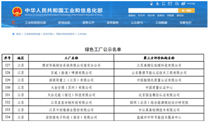 近日,國家工業(yè)和信息化部公布了2023年度國家級綠色制造揭榜單位,天合光能(宿遷)科技有限公司成功入選綠色工廠單位。