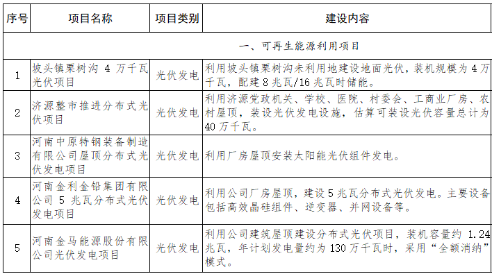 11月13日,濟源產(chǎn)城融合示范區(qū)管理委員會關(guān)于印發(fā)濟源產(chǎn)城融合示范區(qū)“十四五”現(xiàn)代能源體系和碳達峰碳中和規(guī)劃的通知,通知指出,“十四五”能源建設(shè)重大項目發(fā)布,其中光伏項目規(guī)模457.94MW。 光伏重大項目清單如下: 原文如下: 濟源產(chǎn)城融合示范區(qū)管理委員會關(guān)于印發(fā)濟源產(chǎn)城融合示范區(qū)“十四五”現(xiàn)代能源體系和碳達峰碳中和規(guī)劃的通知 各開發(fā)區(qū)管理辦公室,各鎮(zhèn)人民政府,各街道辦事處,區(qū)管委會各部門,各有關(guān)企業(yè): 《濟源產(chǎn)城融合示范區(qū)“十四五”現(xiàn)代能源體系和碳達峰碳中和規(guī)劃》已經(jīng)示范區(qū)管委會研究同意,現(xiàn)予以印發(fā),請認真貫徹執(zhí)行。 2023年11月7日 濟源產(chǎn)城融合示范區(qū)管理委員會“十四五”現(xiàn)代能源體系和碳達峰碳中和規(guī)劃 前 言 實現(xiàn)碳達峰、碳中和是以習近平同志為核心的黨中央作出的重大戰(zhàn)略決策,對推動經(jīng)濟高質(zhì)量發(fā)展、建設(shè)人與自然和諧共生的現(xiàn)代化具有重大戰(zhàn)略意義,是我們必須面對、必須解決好的重大戰(zhàn)略問題。 能源綠色低碳發(fā)展在碳達峰、碳中和工作中具有基礎(chǔ)性和關(guān)鍵性地位。加快構(gòu)建清潔低碳、安全高效的現(xiàn)代能源體系,是推動濟源碳達峰、碳中和工作的內(nèi)在要求和關(guān)鍵舉措,對提高應對氣候變化能力、支撐經(jīng)濟社會發(fā)展綠色低碳轉(zhuǎn)型具有重要意義。 “十四五”時期是推進碳達峰、碳中和工作的關(guān)鍵期、窗口期,是開啟全面建設(shè)社會主義現(xiàn)代化新征程、建設(shè)創(chuàng)新型高品質(zhì)現(xiàn)代化濟源的突破期和出彩期,也是貫徹落實黃河流域生態(tài)保護和高質(zhì)量發(fā)展的攻堅期。為適應經(jīng)濟社會發(fā)展面臨的新形勢,加快建立清潔低碳、安全高效的現(xiàn)代能源體系,盡早實現(xiàn)碳達峰、碳中和目標,根據(jù)《河南省“十四五”現(xiàn)代能源體系和碳達峰碳中和規(guī)劃》和《濟源市國民經(jīng)濟和社會發(fā)展第十四個五年規(guī)劃和二〇三五年遠景目標綱要》,特制定本規(guī)劃,闡明“十四五”時期濟源構(gòu)建現(xiàn)代能源體系、推動碳達峰碳中和工作、保障能源安全的總體思路、主要目標和任務舉措,是今后五年乃至更長時期濟源能源高質(zhì)量發(fā)展的總體藍圖和行動綱領(lǐng),也是編制能源領(lǐng)域各專項規(guī)劃和年度計劃的重要依據(jù)。 第一章 發(fā)展現(xiàn)狀與形勢 一、發(fā)展基礎(chǔ) “十三五”時期,濟源高舉習近平新時代中國特色社會主義思想偉大旗幟,在市委、市政府的堅強領(lǐng)導下,深入貫徹生態(tài)文明思想和“四個革命、一個合作”能源安全新戰(zhàn)略,積極推進能源結(jié)構(gòu)優(yōu)化升級,著力構(gòu)建較為完善的能源保障體系,能源安全供應、能源結(jié)構(gòu)調(diào)整、能源裝備技術(shù)水平提升、能源體制機制改革成效顯著,有效支撐和保障了經(jīng)濟社會發(fā)展需要,為未來能源發(fā)展打下了堅實基礎(chǔ)。 能源保障能力不斷增強。至2020年末,濟源發(fā)電總裝機達到611.33萬千瓦,比2015年提高6.32%。截至2020年底,濟源供電區(qū)建成500千伏變電站1座,變電容量2400兆伏安,500千伏線路4條;220千伏變電站6座,變電容量2580兆伏安,220千伏線路19回,基本實現(xiàn)220千伏變電站全覆蓋、110千伏雙電源供電,供電應急保障能力進一步提升。2020年一次能源生產(chǎn)總量達189.52萬噸標準煤,比2015年增長20.19%。已建成電動汽車充電樁600余臺,初步形成智能高效、布局合理的電動汽車充電服務網(wǎng)絡(luò)。供熱覆蓋率從2016年的65%提高到2020年的87%,城市建成區(qū)燃氣普及率達98.3%,累計鋪設(shè)燃氣管網(wǎng)1000多公里,熱力、燃氣供應保障能力有效增強。濟源能源供給向綜合化、多元化加速轉(zhuǎn)變,能源儲備調(diào)節(jié)能力增強。 能源結(jié)構(gòu)調(diào)整穩(wěn)步推進?!笆濉睍r期,濟源大力推進能源結(jié)構(gòu)調(diào)整,煤炭消費進一步削減,共關(guān)閉退出礦井15座,退出煤炭產(chǎn)能261萬噸。濟源煤炭消費量從2015年的1353.77萬噸下降到2020年的1005.34萬噸,煤炭消費量降低25.74%;2020年非化石能源發(fā)電量為48.77億千瓦時,比2015年增長37.23%。“十三五”末熱電聯(lián)產(chǎn)集中供熱覆蓋面積達到1000萬平方米,濟源完成清潔取暖“雙替代”改造9.9萬戶,濟源全域?qū)崿F(xiàn)清潔取暖全覆蓋。新增可再生能源發(fā)電裝機36.33萬千瓦,年均增速達到7.92%,可再生能源發(fā)電裝機占比達到20.94%。 能源助力脫貧攻堅圓滿收官。充分發(fā)揮光伏扶貧脫貧帶動作用,建成光伏扶貧電站22座,光伏扶貧電站規(guī)模2523.61千瓦,共關(guān)聯(lián)貧困戶760戶,戶均配比約3.3千瓦,光伏扶貧運行期年均總收益213.37萬元,成為貧困村集體經(jīng)濟的重要產(chǎn)業(yè)支撐。新一輪農(nóng)村電網(wǎng)改造升級工程扎實推進,農(nóng)村電網(wǎng)保障能力有效提升,2020年郊區(qū)供電可靠率99.95%,年均停電時間不超過6小時。電壓合格率達到99.96%,線損率降至3.45%。為全面建成小康社會提供安全、可靠、清潔、優(yōu)質(zhì)的電力保障。 能源技術(shù)裝