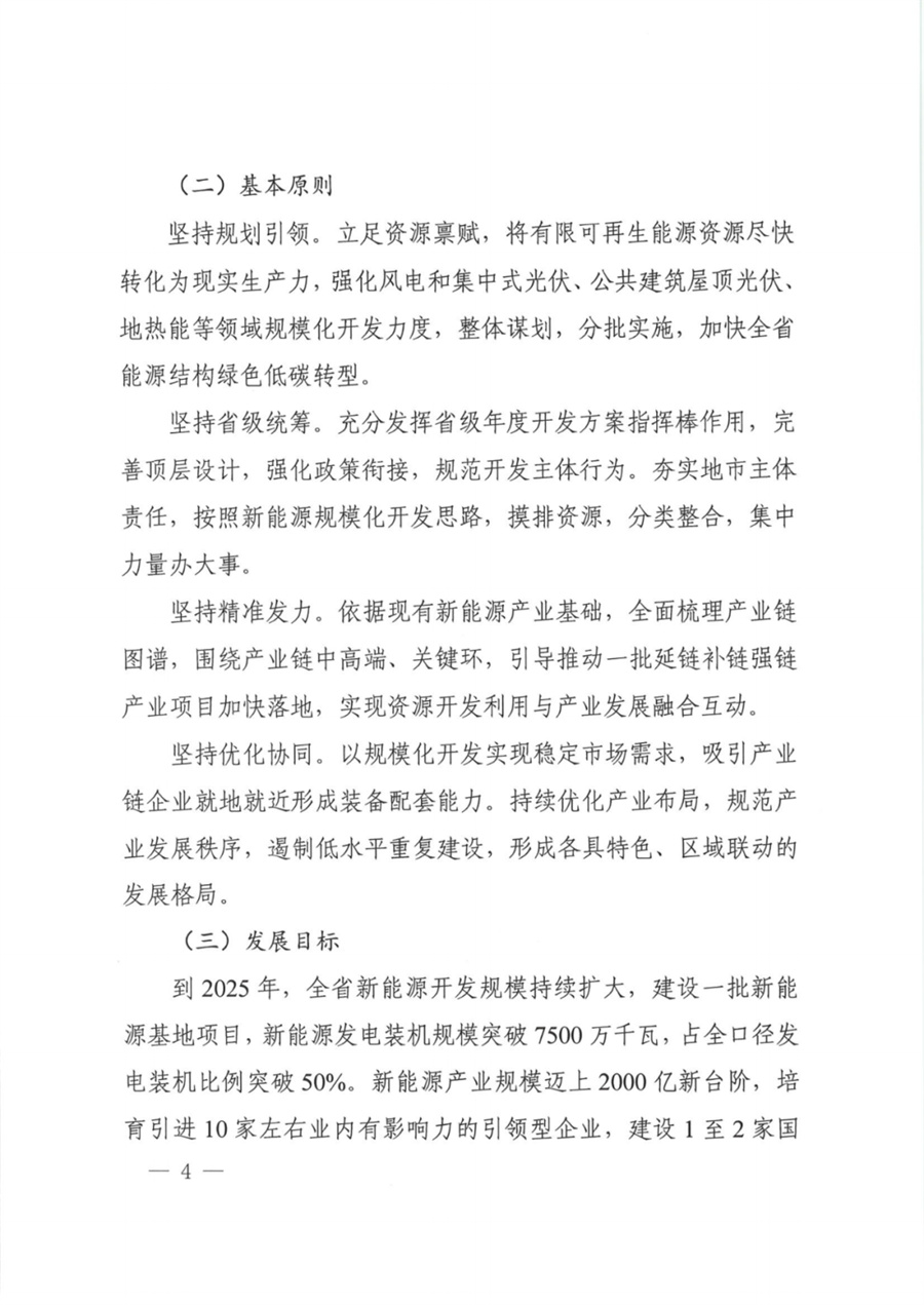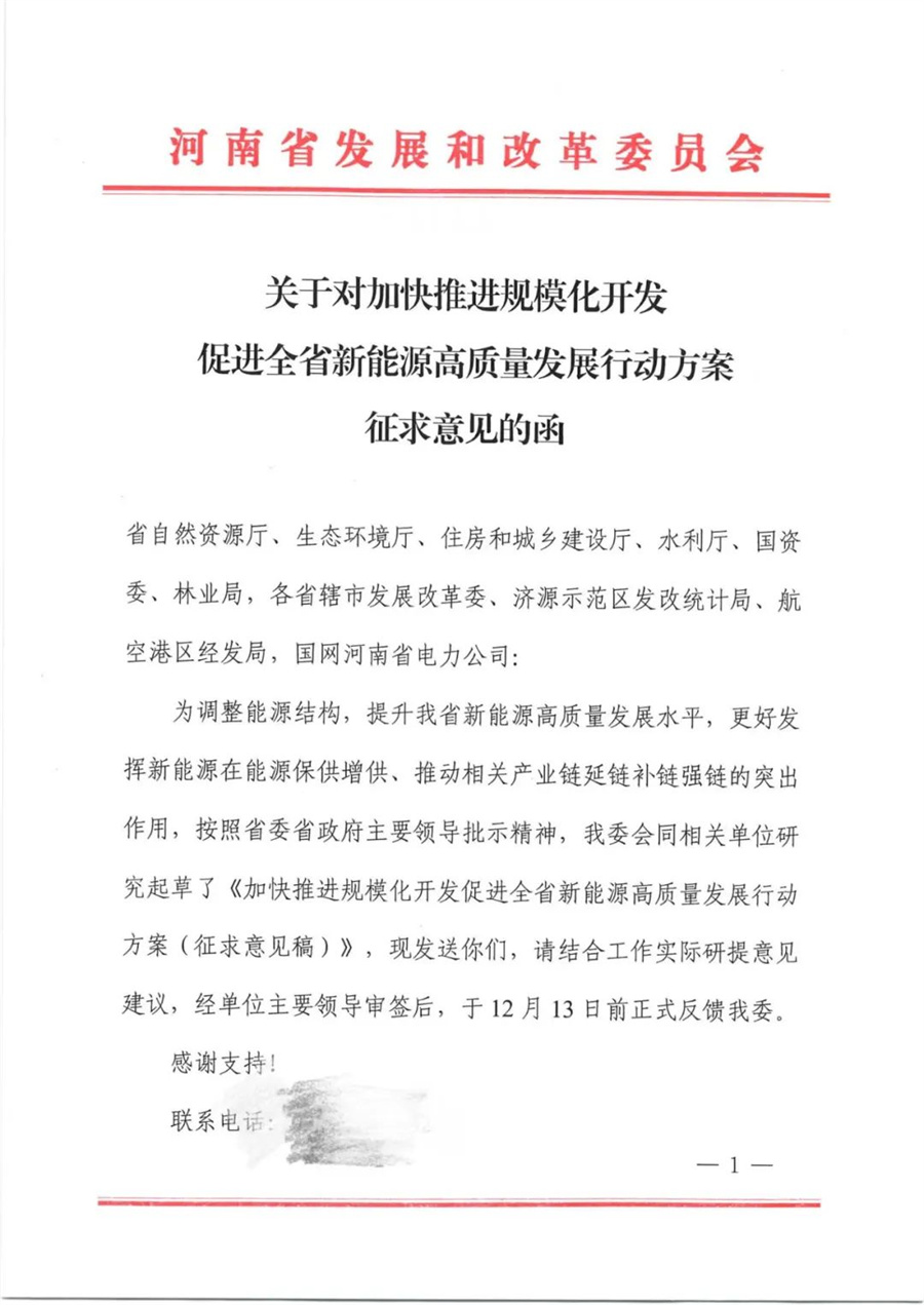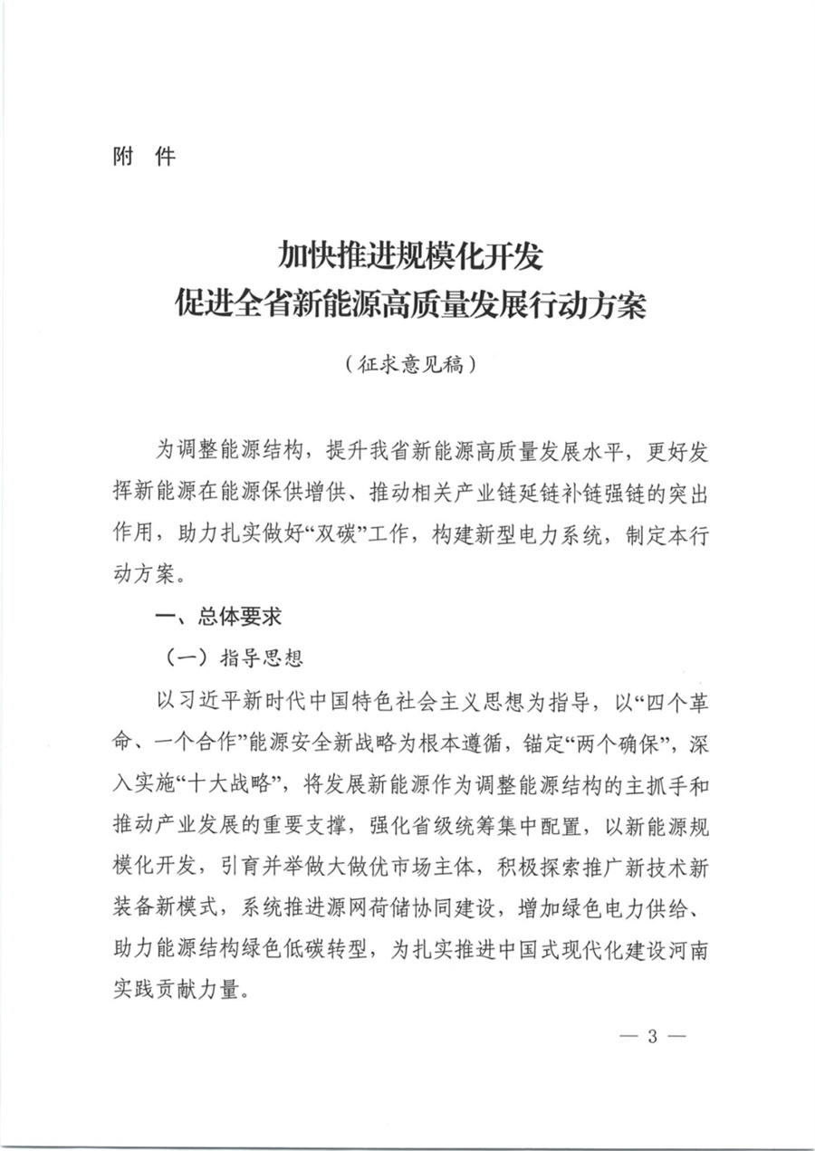 12月7日,河南省發(fā)改委印發(fā)《關(guān)于對加快推進(jìn)規(guī)模化開發(fā)促進(jìn)全省新能源高質(zhì)量發(fā)展行動方案征求意見的函》,文件指出,要強(qiáng)化風(fēng)電和集中式光伏、公共建筑屋頂光伏、地?zé)崮艿阮I(lǐng)域規(guī)?;_發(fā)力度,整體謀劃,分批實施,加快全省能源結(jié)構(gòu)綠色低碳轉(zhuǎn)型。 根據(jù)發(fā)展目標(biāo),到2025年,全省新能源開發(fā)規(guī)模持續(xù)擴(kuò)大,建設(shè)一批新能源基地項目,新能源發(fā)電裝機(jī)規(guī)模突破7500萬千瓦,占全口徑發(fā)電裝機(jī)比例突破50%。新能源產(chǎn)業(yè)規(guī)模邁上2000億新臺階,培育引進(jìn)10家左右業(yè)內(nèi)有影響力的引領(lǐng)型企業(yè),建設(shè)1至2家國家級驗證平臺及創(chuàng)新平臺。 具體來看,要推進(jìn)風(fēng)電和集中式光伏規(guī)?;_發(fā),在開封、洛陽、平頂山、濮陽、周口、南陽、信陽、駐馬店等資源稟賦較好的省轄市,加大統(tǒng)籌力度,集中調(diào)配資源,重點推進(jìn)。原則上規(guī)?;_發(fā)項目總規(guī)模(含風(fēng)電、集中式光伏)不低于50萬千瓦,場址資源相對集中,分布于同一省轄市內(nèi),原則上用220千伏及以上電壓等級集中匯流接入電網(wǎng),一次規(guī)劃、分年度納入省級開發(fā)方案。 開展“光伏+”公共建筑屋頂提速行動,以縣(市、區(qū))為單位,整合黨政機(jī)關(guān)、校園、醫(yī)院、公共基礎(chǔ)設(shè)施等產(chǎn)權(quán)清晰、面積充裕、就地消納條件較好的屋頂資源,加快公共建筑屋頂光伏建設(shè),結(jié)合屋頂資源產(chǎn)權(quán)情況,合理確定牽頭開發(fā)企業(yè),編制整體開發(fā)方案,明確開發(fā)規(guī)模和時序。以自發(fā)自用為主模式,推動“光儲”、“光儲充一體化”等多元化應(yīng)用場景建設(shè),電量就地就近消納,充分發(fā)揮投資效益。 文件還提出,加大重點項目綠電保障,對省委省政府確定的重大項目,以及固定資產(chǎn)投資超百億元、對全省經(jīng)濟(jì)社會發(fā)展影響力大的新能源汽車整車、電子信息、先進(jìn)裝備產(chǎn)業(yè)集群等領(lǐng)域重大項目,優(yōu)先支持其結(jié)合自身需求參與新能源規(guī)模化開發(fā)。 加快風(fēng)電核心零部件,鈣鈦礦/晶硅疊層、異質(zhì)結(jié)等新一代光伏電池,新型儲能,氫能等產(chǎn)業(yè)發(fā)展,對相關(guān)產(chǎn)業(yè)延鏈補鏈強(qiáng)鏈有重大支撐作用的項目,支持其參與新能源規(guī)?;_發(fā)。 原文如下: