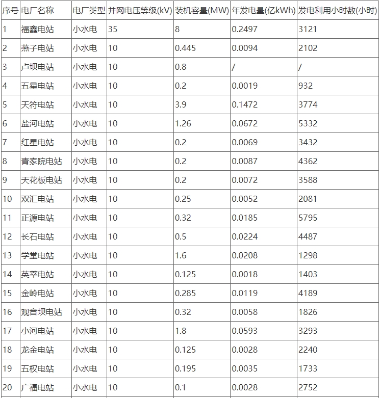 表1-2 截至2020年旺蒼縣35kV及以下電源建設(shè)情況