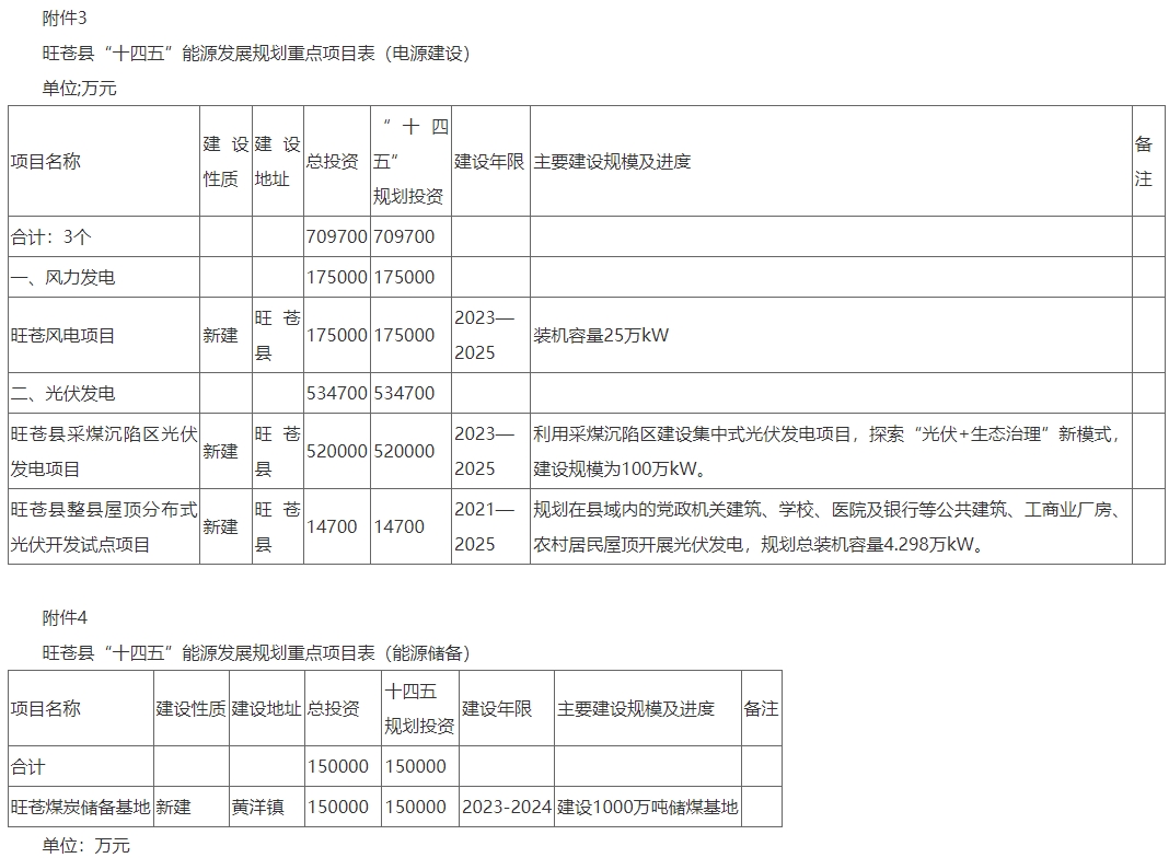 規(guī)劃還提到,對電網(wǎng)進行增容改造,促使分布式光伏、分散式風電、儲能電站加速并網(wǎng)。 旺蒼縣“十四五”能源發(fā)展規(guī)劃 2023年10月 前言 “十四五”時期是我國全面建成小康社會、實現(xiàn)第一個百年奮斗目標之后,乘勢而上開啟全面建設(shè)社會主義現(xiàn)代化國家新征程、向第二個百年奮斗目標進軍的第一個五年,也是旺蒼建設(shè)新型工業(yè)強縣的關(guān)鍵時期。如何全面推進能源產(chǎn)業(yè)快速發(fā)展,在保障能源供給、提高能源效率、優(yōu)化能源結(jié)構(gòu)、改善能源民生、深化能源改革等方面深度構(gòu)建新時期能源開發(fā)和利用體系,以完善的能源產(chǎn)業(yè)體系推動旺蒼縣工業(yè)經(jīng)濟高質(zhì)量發(fā)展,是制定實施本規(guī)劃的目的。 本規(guī)劃根據(jù)《四川省國民經(jīng)濟和社會發(fā)展第十四個五年規(guī)劃和二〇三五年遠景目標綱要》《四川省“十四五”能源發(fā)展規(guī)劃》《廣元市國民經(jīng)濟和社會發(fā)展第十四個五年規(guī)劃和二〇三五年遠景目標綱要》《廣元市“十四五”能源發(fā)展總體規(guī)劃》《旺蒼縣國民經(jīng)濟和社會發(fā)展第十四個五年規(guī)劃和二〇三五年遠景目標綱要》編制,對明確“十四五”期間旺蒼縣能源高質(zhì)量發(fā)展的目標任務(wù)、實施路徑具有十分重要的意義。 第一章 發(fā)展基礎(chǔ) “十三五”期間,旺蒼縣能源供需總量基本保持平衡,能源結(jié)構(gòu)調(diào)整取得顯著進展,能源效率進一步提高,單位GDP能耗逐年下降,能源服務(wù)普遍能力提高,城鄉(xiāng)居民用能條件改善,能源改革不斷深化,能源市場和能源建設(shè)規(guī)范有序,能源各行業(yè)協(xié)調(diào)發(fā)展,為構(gòu)建可持續(xù)的現(xiàn)代新型能源產(chǎn)業(yè)體系奠定了堅實基礎(chǔ)。 一、“十三五”以來能源發(fā)展成效 (一)煤炭產(chǎn)業(yè)整合發(fā)展 煤炭產(chǎn)業(yè)作為旺蒼縣的傳統(tǒng)產(chǎn)業(yè),“十三五”期間,旺蒼縣共有煤礦25家(其中,川煤集團4家,縣屬煤礦21家)。按照煤炭產(chǎn)能政策,2020年關(guān)閉退出9萬噸煤礦10家;升級改造30萬噸煤礦4處(5家),其中,15萬噸煤礦2家、9萬噸煤礦3家(2家9萬噸煤礦聯(lián)合升級改造),新增優(yōu)質(zhì)產(chǎn)能84萬噸;保留煤礦5家,保留產(chǎn)能81萬噸(其中21萬噸煤礦1家、15萬噸煤礦4家)。全縣煤礦整體產(chǎn)量達291萬噸、產(chǎn)值近9億元,解決就業(yè)人員近2萬人(包括配套運輸、洗選、焦化等關(guān)聯(lián)產(chǎn)業(yè)從業(yè)人員)。盡管煤炭產(chǎn)業(yè)在區(qū)域經(jīng)濟結(jié)構(gòu)中所占比重有所降低,但在縣域經(jīng)濟比重中,煤炭產(chǎn)業(yè)仍是全縣經(jīng)濟的重要支撐(2020年煤炭產(chǎn)業(yè)占財稅收入的34.6%)。 (二)電網(wǎng)建設(shè)成效顯著 電網(wǎng)結(jié)構(gòu)不斷優(yōu)化。依托東河、寬灘河、李家河等水電資源優(yōu)勢,建成天符、小河等電站20余個。對電網(wǎng)進行增容改造,促使分布式光伏、分散式風電、儲能電站加速并網(wǎng),完成35千伏黃洋變電站新建工程、110kv松林坡變電站1#主變擴容工程,新增2臺35千伏主變壓器,改造1臺110千伏主變壓器。 農(nóng)網(wǎng)改造持續(xù)推進?!笆濉逼陂g,23個鄉(xiāng)鎮(zhèn)農(nóng)村電網(wǎng)改造全面完成,順利完成了“井井通電”工程、小城鎮(zhèn)(中心村)電網(wǎng)改造升級工程及貧困村電網(wǎng)改造升級目標任務(wù)。其中,“井井通電”工程共完成新建及改造機井61口,受益農(nóng)田面積0.5285萬畝,受益農(nóng)田數(shù)8802塊,有效解決了農(nóng)村農(nóng)田灌溉問題,減少了農(nóng)民生產(chǎn)支出;小城鎮(zhèn)(中心村)電網(wǎng)改造升級工程解決了26個中心村用電問題,為地方經(jīng)濟建設(shè)提供了可靠的電力保障。完成了43個貧困村的電力網(wǎng)絡(luò)改造和電力線路改造,11個易地扶貧搬遷集中安置點均新建了電力設(shè)施,保證了旺蒼縣脫貧攻堅任務(wù)的順利完成。全縣農(nóng)網(wǎng)改造升級工程供電可靠率由99.62%提升至99.83%,電壓合格率由99.8%提升至99.86%,戶均配變?nèi)萘坑?.69千伏A/戶提升至1.83千伏A/戶,農(nóng)村電力供應(yīng)得到有效保障。 (三)電源建設(shè)開拓新路 “十三五”期間,旺蒼縣電網(wǎng)資源發(fā)展呈現(xiàn)多樣性,主要以水電為主、火電部分保留,太陽能發(fā)電有所發(fā)展。全縣水能資源理論蘊藏量42萬千瓦,可開發(fā)量約10萬千瓦。 “十三五”期間,受環(huán)保督察影響,全縣共拆除水電站1座(2臺,1950千瓦),終止建設(shè)1座(3臺,3000千瓦),小水電清理拆除1座(3臺,550千瓦),占可開發(fā)量的0.55%。除天符電站為壩式外,其余均為引水式開發(fā)方式。由于國家重點生態(tài)功能區(qū)的限制,“十三五”期間未再新建小水電建設(shè)項目,截至目前,全縣現(xiàn)有1座代池電廠152#,裝機容量12兆瓦,已運行項目均并入國家電網(wǎng)。 截至2020年,全縣已建成水電站25座,總計45臺,總裝機容量23065千瓦,總投資約17397萬元(詳見表1—1);全縣有35千伏及以下并網(wǎng)電廠26座、總裝機容量24.215兆瓦,年發(fā)電量7018萬千瓦時(詳見表1—2)。 表1—1 截至2020年旺蒼縣水電站建設(shè)情況