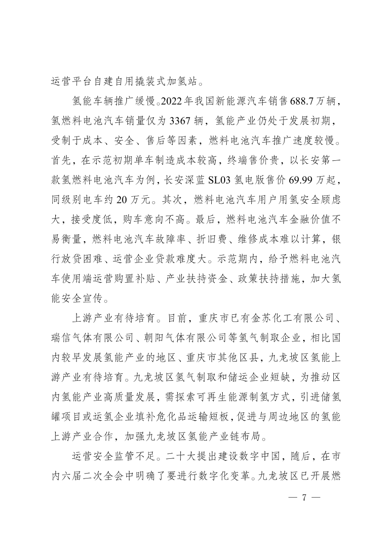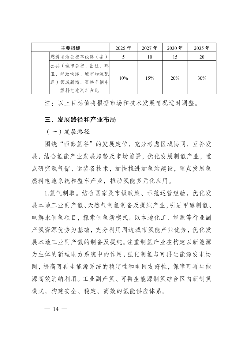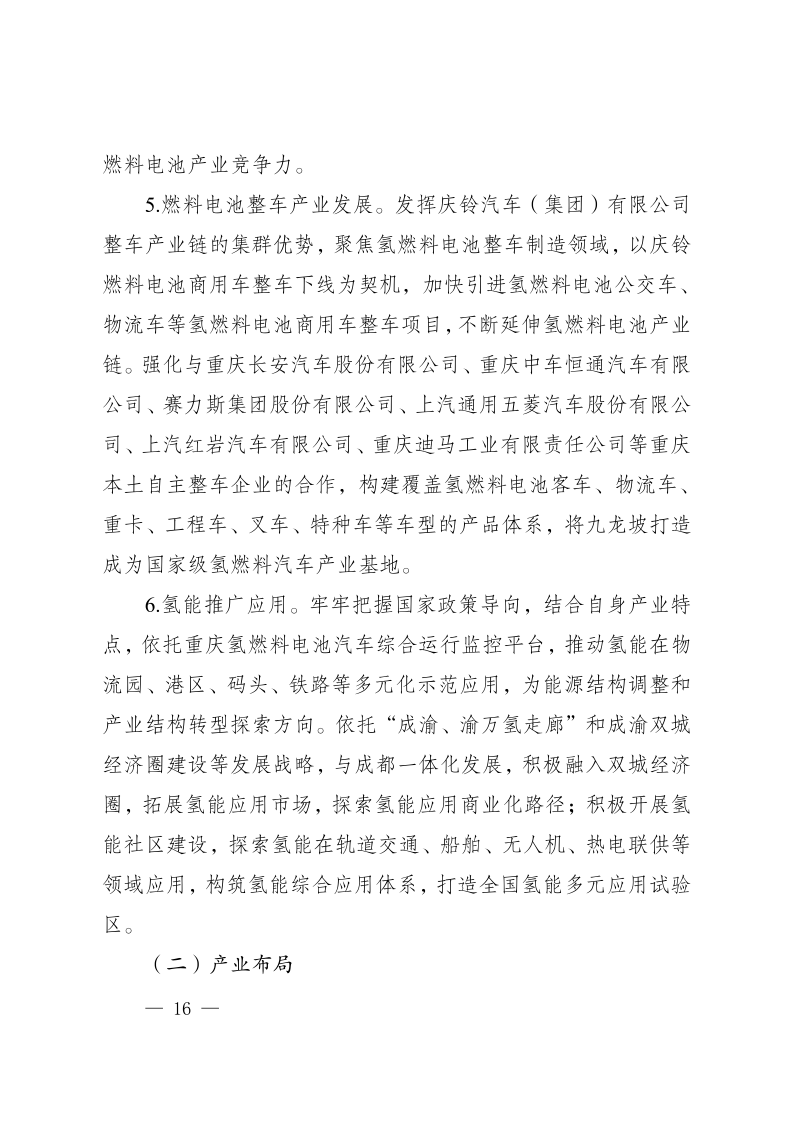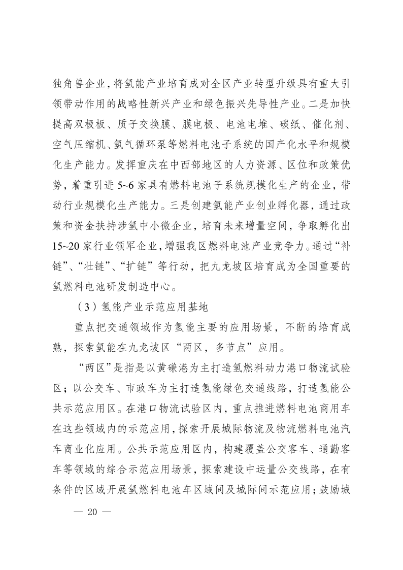 近日,重慶市九龍坡區(qū)人民政府發(fā)布《重慶市九龍坡區(qū)氫能產(chǎn)業(yè)中長(zhǎng)期發(fā)展規(guī)劃(2023—2035)》,文件指出,九龍坡區(qū)氫能產(chǎn)業(yè)中長(zhǎng)期發(fā)展分為三個(gè)階段:近期(2023—2027年)完成氫能產(chǎn)業(yè)優(yōu)勢(shì)培育、中期(2027—2030年)達(dá)到氫能產(chǎn)業(yè)加速發(fā)展、遠(yuǎn)期(2031—2035年)實(shí)現(xiàn)氫能產(chǎn)業(yè)規(guī)模引領(lǐng)。其中到2035年,在示范應(yīng)用方面,建設(shè)加氫站數(shù)量達(dá)到30座,燃料電池發(fā)動(dòng)機(jī)產(chǎn)能100000臺(tái),燃料電池汽車(chē)產(chǎn)能50000輛,燃料電池汽車(chē)保有量20000輛,燃料電池公交車(chē)線(xiàn)路20條,實(shí)現(xiàn)氫能產(chǎn)業(yè)產(chǎn)值達(dá)1000億元規(guī)模。 原文如下: