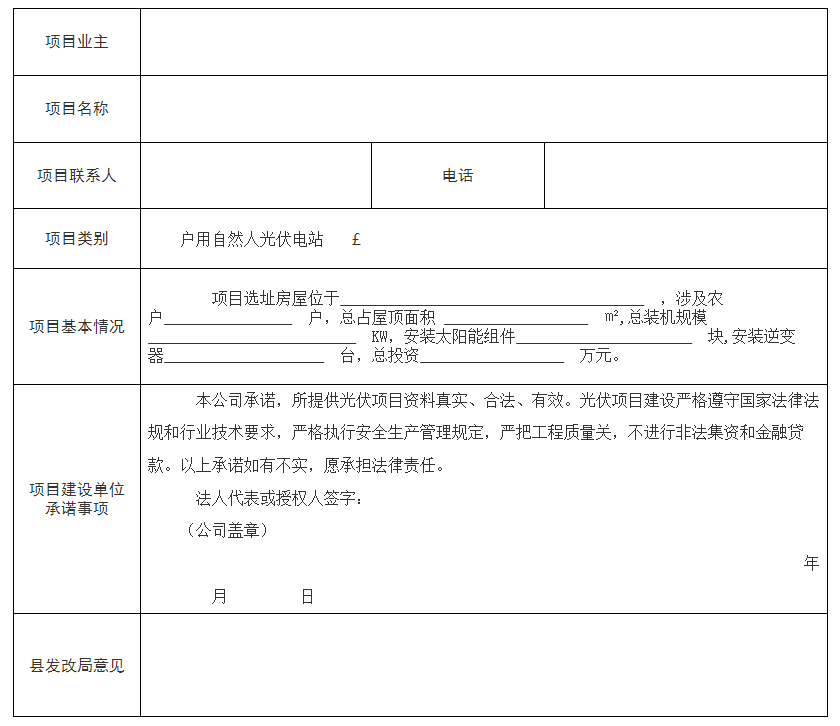 附件2 宜章縣分布式光伏發(fā)電項目備案登記表(二) (本表適用于戶用自然人光伏發(fā)電項目)