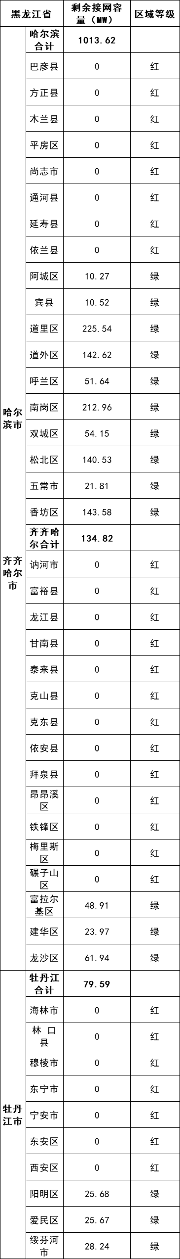 12月25日,黑龍江省發(fā)展改革委發(fā)布關(guān)于分布式光伏接入電網(wǎng)承載力情況的公告。根據(jù)公告,黑龍江發(fā)改委對(duì)全省分布式光伏接入電網(wǎng)承載能力開展評(píng)估工作,將12個(gè)地級(jí)市和一個(gè)地區(qū)截至2023年11月底全省分布式光伏接入電網(wǎng)承載力評(píng)估結(jié)果予以公告。 此次公布的125個(gè)縣(市、區(qū))中,紅色等級(jí)區(qū)域81個(gè),占比達(dá)到65%;黃色等級(jí)區(qū)域5個(gè),綠色等級(jí)區(qū)域39個(gè),占比為31%。這其中,佳木斯市、七臺(tái)河市兩市共14個(gè)縣(市、區(qū))全部為紅色等級(jí)區(qū)域。公告顯示,綠色等級(jí)區(qū)域。按照分布式電源可接網(wǎng)容量,有序推動(dòng)分布式電源備案建設(shè)。 黃色等級(jí)區(qū)域。分布式電源接網(wǎng)消納有限,新增分布式光伏備案前應(yīng)與當(dāng)?shù)仉娋W(wǎng)企業(yè)溝通,配電網(wǎng)反送潮流超過設(shè)備限額80%地區(qū),暫停新增分布式電源項(xiàng)目接入;配電網(wǎng)反送潮流不超過設(shè)備限額80%地區(qū),確需接入的項(xiàng)目,應(yīng)開展專項(xiàng)分析。 紅色等級(jí)區(qū)域。分布式電源接網(wǎng)消納困難,在電網(wǎng)承載能力未得到有效改善前,暫停分布式電源項(xiàng)目備案,暫停新增分布式電源項(xiàng)目接入。 原文如下: 黑龍江省發(fā)展改革委關(guān)于分布式光伏接入電網(wǎng)承載力情況的公告 為推動(dòng)分布式光伏高質(zhì)量發(fā)展,合理安排分布式光伏備案規(guī)模和建設(shè)時(shí)序,引導(dǎo)分布式光伏開發(fā)建設(shè)工作,我委組織國(guó)網(wǎng)黑龍江省電力公司開展了全省分布式光伏接入電網(wǎng)承載能力評(píng)估工作,現(xiàn)將截至2023年11月底全省分布式光伏接入電網(wǎng)承載力評(píng)估結(jié)果予以公告。我委將會(huì)同國(guó)網(wǎng)黑龍江省電力公司定期發(fā)布承載力評(píng)估結(jié)果,引導(dǎo)分布式光伏健康有序發(fā)展。 黑龍江省發(fā)展和改革委員會(huì) 2023年12月25日 附件:11月底分布式承載力公告 注: 1.綠色等級(jí)區(qū)域 。按照分布式電源可接網(wǎng)容量 ,有序推動(dòng)分布式電源備案建設(shè)。 2.黃色等級(jí)區(qū)域。分布式電源接網(wǎng)消納有限 ,新增分布式光伏備案前應(yīng)與當(dāng)?shù)仉娋W(wǎng)企業(yè)溝通 ,配電網(wǎng)反送潮流超過設(shè)備限額80%地區(qū) ,暫停新增分布式電源項(xiàng)目接入;配電網(wǎng)反送潮流不超過設(shè)備限額80%地區(qū) ,確需接入的項(xiàng)目 ,應(yīng)開展專項(xiàng)分析。 3.紅色等級(jí)區(qū)域 。分布式電源接網(wǎng)消納困難 ,在電網(wǎng)承載能力未得到有效改善前 ,暫停分布式電源項(xiàng)目備案 ,暫停新增分布式電源項(xiàng)目接入。