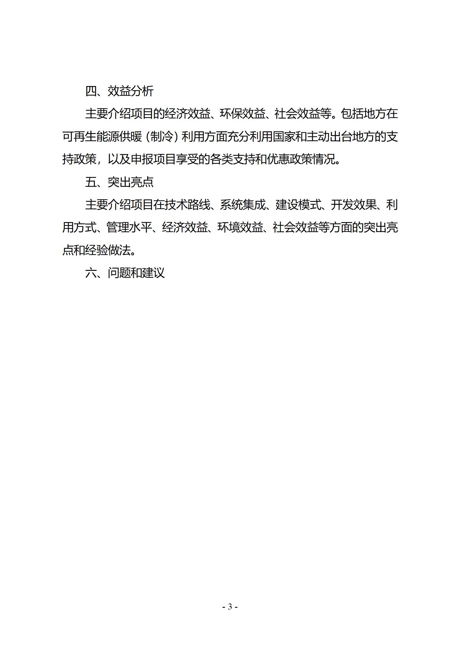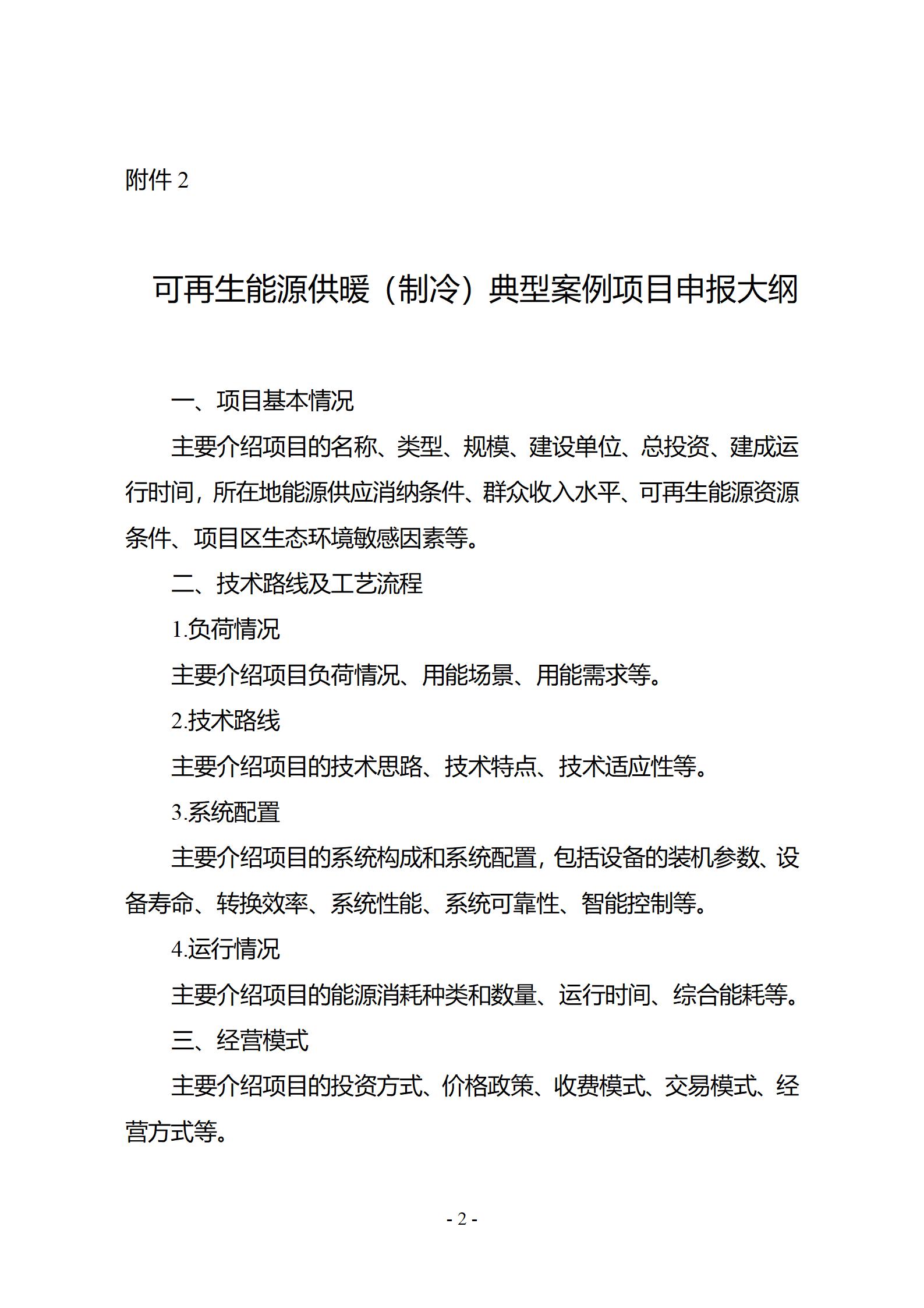 12月26日,國家能源局綜合司 生態(tài)環(huán)境部辦公廳 住房城鄉(xiāng)建設(shè)部辦公廳關(guān)于開展全國可再生能源供暖(制冷)典型案例匯編(2023)工作的通知 國能綜通新能〔2023〕139號。 根據(jù)通知,為明晰行業(yè)發(fā)展思路,更好指導(dǎo)各地做好可再生能源供暖(制冷)相關(guān)工作,通過典型案例為北方地區(qū)冬季清潔取暖,南方地區(qū)溫暖過冬、清涼度夏提供可復(fù)制推廣的成熟方案,進(jìn)一步推動可再生能源供熱在綜合利用、現(xiàn)代農(nóng)業(yè)、工業(yè)減碳方面的應(yīng)用,帶動行業(yè)高質(zhì)量規(guī)?;l(fā)展,擬開展可再生能源供暖(制冷)典型案例匯編工作。 申報(bào)項(xiàng)目類型主要包括采用了太陽能、地?zé)崮堋⑸镔|(zhì)能、風(fēng)能、海洋能等可再生能源用于供暖(制冷)、供熱工業(yè)利用、供熱農(nóng)業(yè)利用、供熱綜合利用等領(lǐng)域的項(xiàng)目。申報(bào)項(xiàng)目應(yīng)正常運(yùn)行至少2個周期,且目前正常在運(yùn)、可復(fù)制、可推廣。 全文見下: 國家能源局綜合司 生態(tài)環(huán)境部辦公廳 住房城鄉(xiāng)建設(shè)部辦公廳關(guān)于開展全國可再生能源供暖(制冷)典型案例匯編(2023)工作的通知 國能綜通新能〔2023〕139號 利用可再生能源供暖(制冷)是我國調(diào)整能源結(jié)構(gòu)、實(shí)現(xiàn)節(jié)能減排、合理控制碳排放的迫切需求,推動可再生能源在供熱中的規(guī)模化應(yīng)用是實(shí)施全面節(jié)約戰(zhàn)略的重要手段,對于完成非化石能源利用目標(biāo)、建設(shè)清潔低碳社會、實(shí)現(xiàn)能源可持續(xù)發(fā)展具有重要意義。 為明晰行業(yè)發(fā)展思路,更好指導(dǎo)各地做好可再生能源供暖(制冷)相關(guān)工作,通過典型案例為北方地區(qū)冬季清潔取暖,南方地區(qū)溫暖過冬、清涼度夏提供可復(fù)制推廣的成熟方案,進(jìn)一步推動可再生能源供熱在綜合利用、現(xiàn)代農(nóng)業(yè)、工業(yè)減碳方面的應(yīng)用,帶動行業(yè)高質(zhì)量規(guī)?;l(fā)展,擬開展可再生能源供暖(制冷)典型案例匯編工作?,F(xiàn)將有關(guān)事項(xiàng)通知如下: 一、申報(bào)項(xiàng)目類型主要包括采用了太陽能、地?zé)崮?、生物質(zhì)能、風(fēng)能、海洋能等可再生能源用于供暖(制冷)、供熱工業(yè)利用、供熱農(nóng)業(yè)利用、供熱綜合利用等領(lǐng)域的項(xiàng)目。申報(bào)項(xiàng)目應(yīng)正常運(yùn)行至少2個周期,且目前正常在運(yùn)、可復(fù)制、可推廣。 二、各?。▍^(qū)、市)能源主管部門會同生態(tài)環(huán)境、住房城鄉(xiāng)建設(shè)相關(guān)部門,自愿組織不超過5個在可再生能源資源條件、技術(shù)路線、系統(tǒng)集成、建設(shè)模式、開發(fā)效果、利用方式、管理水平、節(jié)能減碳、污染減排等方面具有突出效果的項(xiàng)目進(jìn)行申報(bào)。各?。▍^(qū)、市)同一企業(yè)(按照最高母公司)申報(bào)項(xiàng)目不超過2個,各?。▍^(qū)、市)申報(bào)同一類型項(xiàng)目不超過3個。 三、各省(區(qū)、市)能源主管部門會同生態(tài)環(huán)境、住房城鄉(xiāng)建設(shè)部門組織地方和企業(yè)按照附件要求,如實(shí)填報(bào)項(xiàng)目有關(guān)情況,并做好初步審核。國家能源局會同生態(tài)環(huán)境部、住房城鄉(xiāng)建設(shè)部對申報(bào)項(xiàng)目的真實(shí)性進(jìn)行審查和現(xiàn)場核查,如出現(xiàn)弄虛造假等情況,將取消相應(yīng)?。▍^(qū)、市)和企業(yè)的申報(bào)資格。 四、各?。▍^(qū)、市)能源主管部門會同生態(tài)環(huán)境、住房城鄉(xiāng)建設(shè)部門于2024年1月31日前,將申報(bào)材料(一式三份)寄送至國家能源局新能源司,并同步將電子版發(fā)送至郵箱(xinny@nea.gov.cn),申報(bào)材料名稱為“××?。▍^(qū)、市)可再生能源供暖(制冷)典型案例申報(bào)材料”。 五、國家能源局牽頭委托咨詢機(jī)構(gòu)或組織專家對申報(bào)材料的項(xiàng)目進(jìn)行評估,經(jīng)評估具有典型意義和推廣價(jià)值的項(xiàng)目,納入《全國可再生能源供暖(制冷)典型案例匯編(2023)》并向社會公布。擇機(jī)組織現(xiàn)場會進(jìn)行交流和推廣,推動可再生能源供暖(制冷)高質(zhì)量規(guī)模化發(fā)展。 郵寄地址:北京市西城區(qū)三里河路46號國家能源局新能源司,郵編:100045。 聯(lián)系電話:010-81929528 附件: 1.××?。▍^(qū)、市)可再生能源供暖(制冷)典型案例申報(bào)項(xiàng)目匯總表 2.可再生能源供暖(制冷)典型案例項(xiàng)目申報(bào)大綱 3.可再生能源供暖(制冷)典型案例申報(bào)材料承諾書 國家能源局綜合司 生態(tài)環(huán)境部辦公廳 住房和城鄉(xiāng)建設(shè)部辦公廳 2023年12月18日