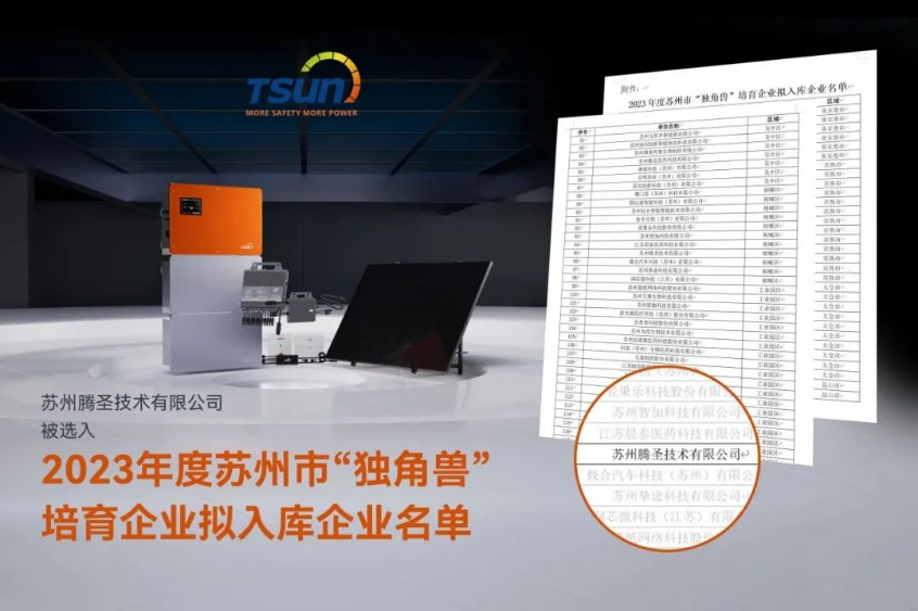 12月27日,蘇州市科學技術(shù)局公示了2023年度蘇州市“獨角獸”培育企業(yè)擬入庫企業(yè)名單,騰圣憑借科技創(chuàng)新實力、高質(zhì)量成長及發(fā)展?jié)摿Τ晒θ脒x。 什么是“獨角獸企業(yè)” 獨角獸企業(yè),起源于風險投資行業(yè),主要指創(chuàng)立時間在10年左右,估值超過10億美元、獲得私募股權(quán)投資的未上市企業(yè)。同時企業(yè)所在行業(yè)屬于戰(zhàn)略性新興產(chǎn)業(yè)、先導產(chǎn)業(yè)或新經(jīng)濟新模式;企業(yè)經(jīng)營管理穩(wěn)健,顛覆式創(chuàng)新能力強,成果顯著,未來爆發(fā)式成長的可能性大。 “獨角獸”已經(jīng)成為創(chuàng)新發(fā)展的代名詞和衡量一個區(qū)域創(chuàng)新生態(tài)的重要風向標。而獨角獸培育企業(yè)是具有發(fā)展?jié)摿统砷L性的明日之星,也是各地搶抓數(shù)字經(jīng)濟機遇、大力推動戰(zhàn)略性新興產(chǎn)業(yè)集群建設的中堅力量。 蘇州騰圣技術(shù)有限公司,秉承More Safety, More Power的理念,依托于在微型逆變器和光伏儲能領域雄厚的技術(shù)基礎,以大功率微型逆變器、陽臺光伏系統(tǒng)、儲能系統(tǒng)等產(chǎn)品為突破口,推進科技創(chuàng)新成果轉(zhuǎn)化落地,形成差異化競爭優(yōu)勢,為創(chuàng)造低碳環(huán)保的生活方式提供綠色可持續(xù)的光伏解決方案。 作為全球大功率微型逆變器的開拓者、光伏場景家電化的推行者、安全高效能源的引領者,騰圣深諳行業(yè)用戶需求,充分考慮戶用光伏系統(tǒng)用戶體驗優(yōu)化,通過“即插即用”及“模塊化”的創(chuàng)新模式,讓人人都成為清潔能源的生產(chǎn)者。 此次入選獨角獸企業(yè)名單,標志著騰圣在光伏科技領域獲得政府、資本及社會各界認可,證明了騰圣擁有持續(xù)迭代的創(chuàng)新能力及企業(yè)成長速度,也再次印證了騰圣“豐富光伏場景、堅守光伏安全、引領高效能源”的使命擔當。 與此同時,騰圣也入選了2023年第二批相城區(qū)科技領軍人才計劃“創(chuàng)業(yè)領軍人才”項目,再次彰顯了騰圣卓越的綜合實力。