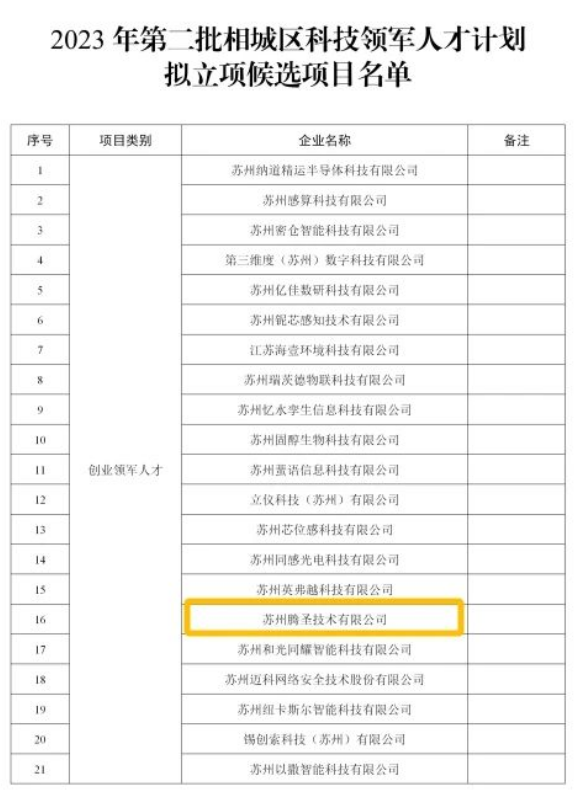 騰圣入選2023年度蘇州市“獨角獸”培育企業(yè)名單2023-12-28 19:05來源:gessey瀏覽數(shù):270次