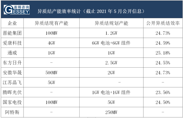 以下統(tǒng)計的HJT部分產(chǎn)能匯總信息: