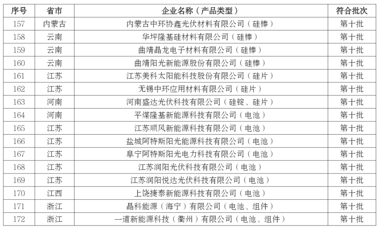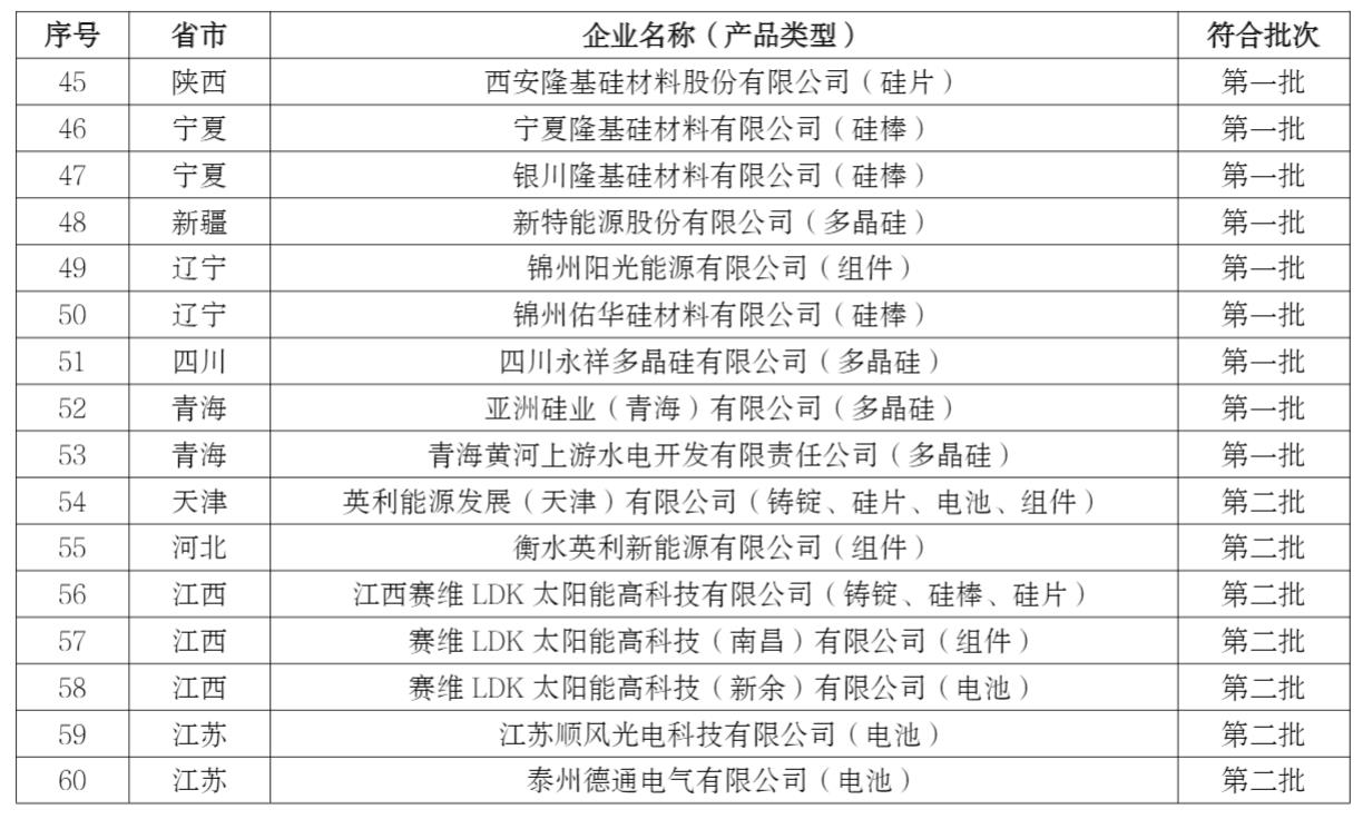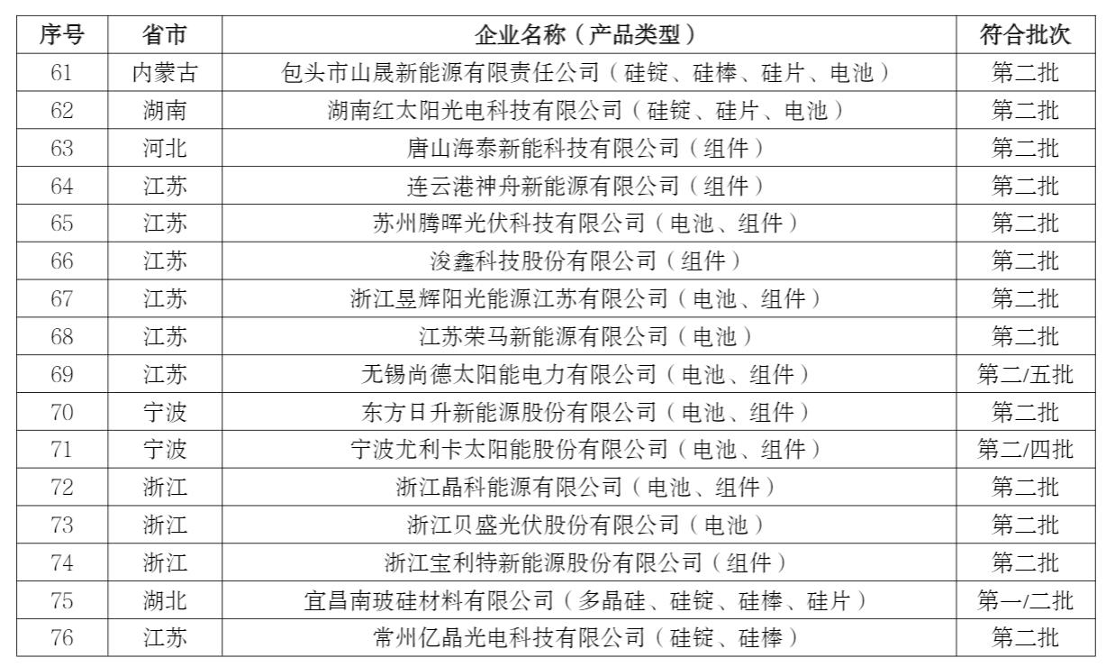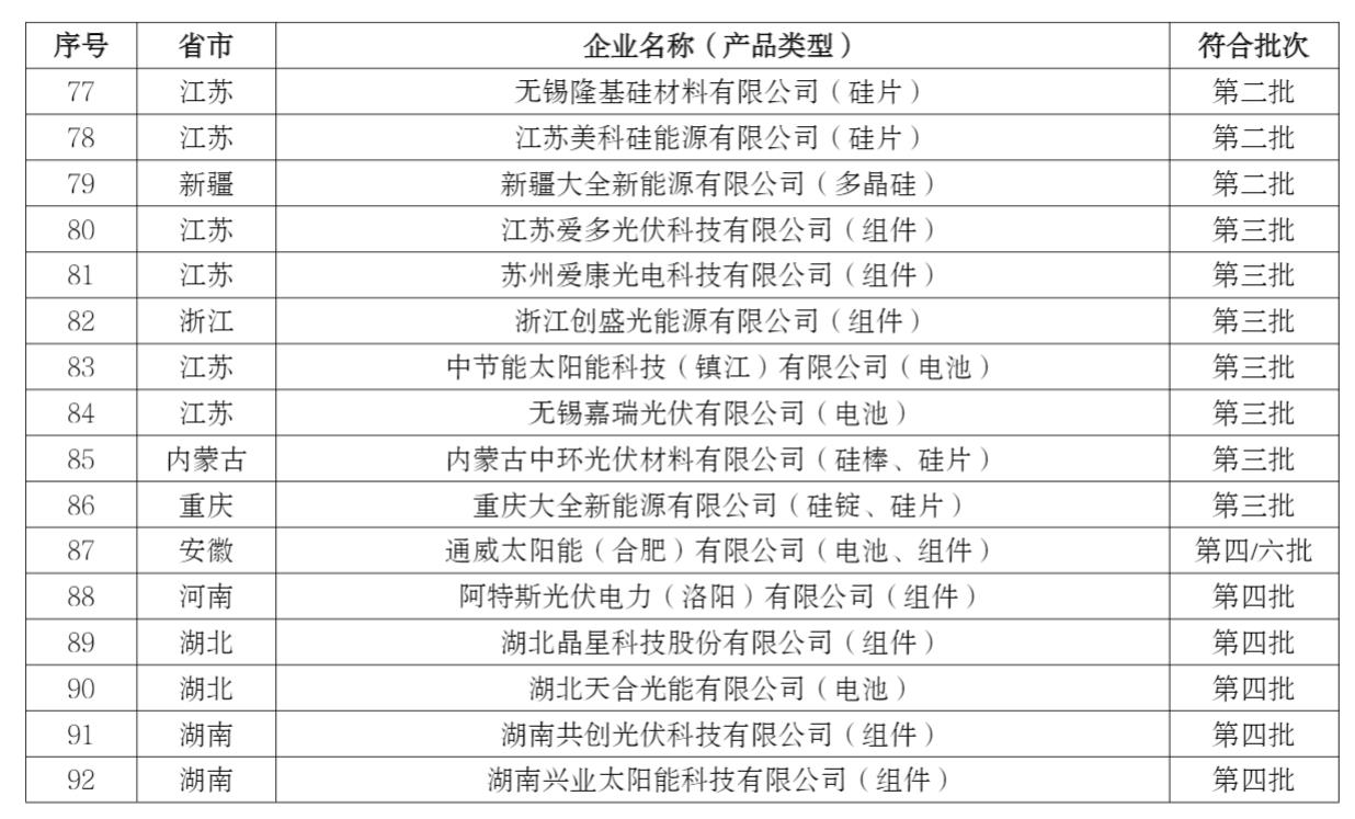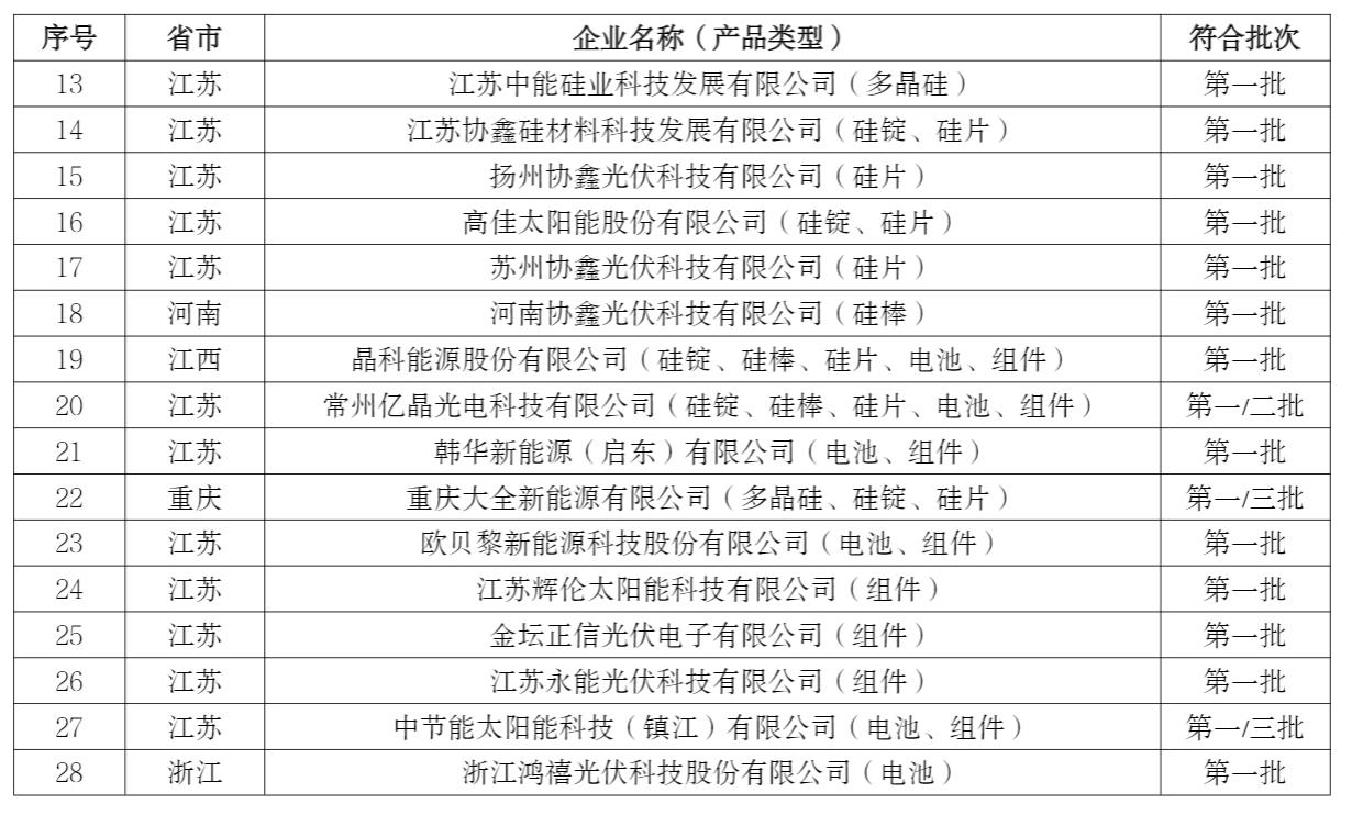12月29日,工信部公布了符合《光伏制造行業(yè)規(guī)范條件》企業(yè)名單(第十二批)及撤銷(xiāo)光伏制造行業(yè)規(guī)范公告企業(yè)名單(第七批)。 詳情如下: 中華人民共和國(guó)工業(yè)和信息化部公告 2023年第41號(hào) 按照《國(guó)務(wù)院關(guān)于促進(jìn)光伏產(chǎn)業(yè)健康發(fā)展的若干意見(jiàn)》(國(guó)發(fā)〔2013〕24號(hào))要求,根據(jù)《光伏制造行業(yè)規(guī)范條件(2021年本)》及《光伏制造行業(yè)規(guī)范公告管理暫行辦法(2021年本)》規(guī)定,經(jīng)企業(yè)申報(bào)、省級(jí)工業(yè)和信息化管理部門(mén)推薦、專家復(fù)核、現(xiàn)場(chǎng)核實(shí)、網(wǎng)上公示等程序,確定符合《光伏制造行業(yè)規(guī)范條件》企業(yè)名單(第十二批)、撤銷(xiāo)光伏制造行業(yè)規(guī)范公告企業(yè)名單(第七批),現(xiàn)予以公告。光伏制造行業(yè)規(guī)范企業(yè)變更公告信息和現(xiàn)行有效符合《光伏制造行業(yè)規(guī)范條件》企業(yè)名單(前十一批),一并予以公告。 附件:1.符合《光伏制造行業(yè)規(guī)范條件》企業(yè)名單(第十二批) 2.撤銷(xiāo)光伏制造行業(yè)規(guī)范公告企業(yè)名單(第七批) 3.光伏制造行業(yè)規(guī)范企業(yè)變更公告信息 4.現(xiàn)行有效符合《光伏制造行業(yè)規(guī)范條件》企業(yè)名單(前十一批) 工業(yè)和信息化部 2023年12月22日