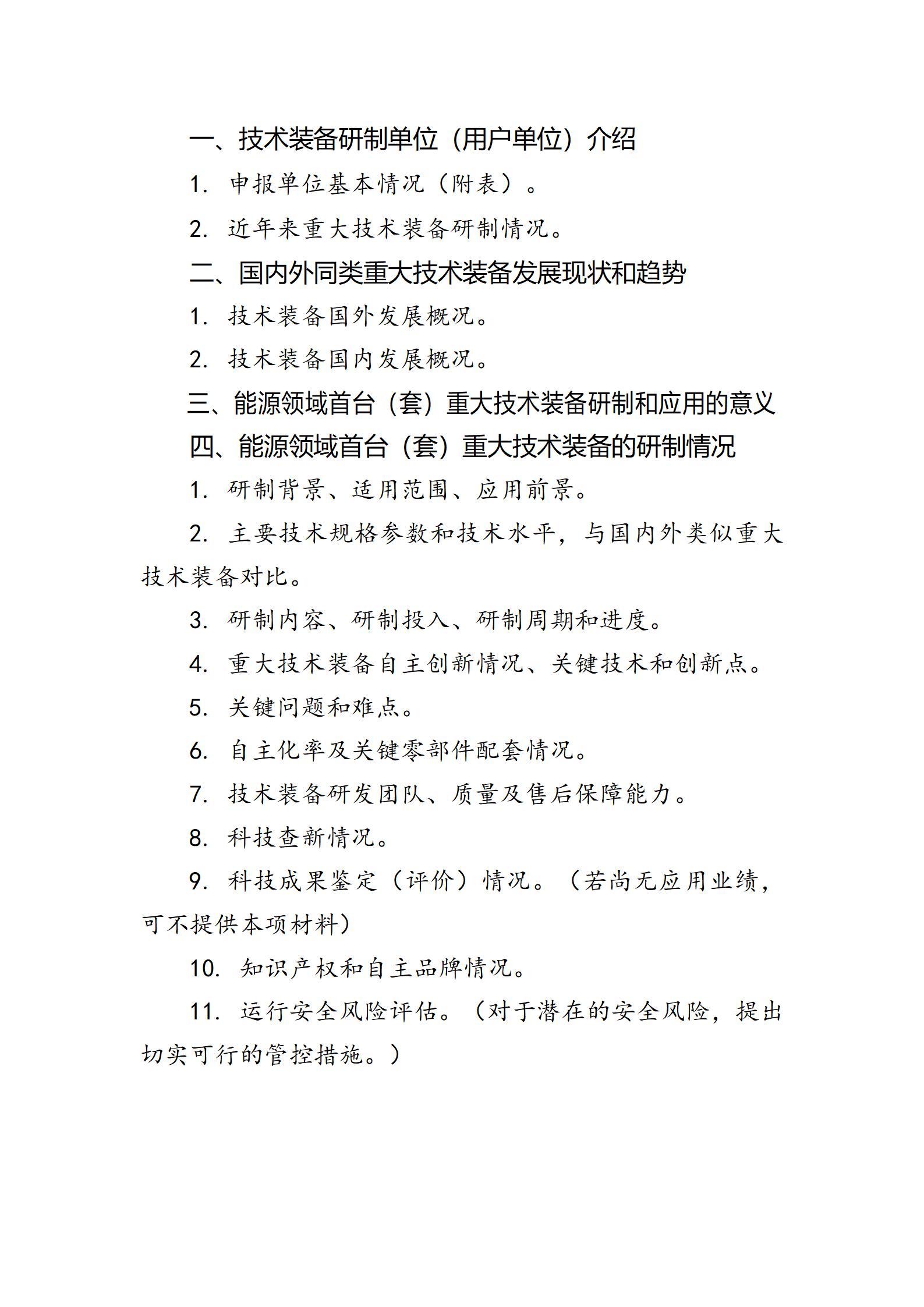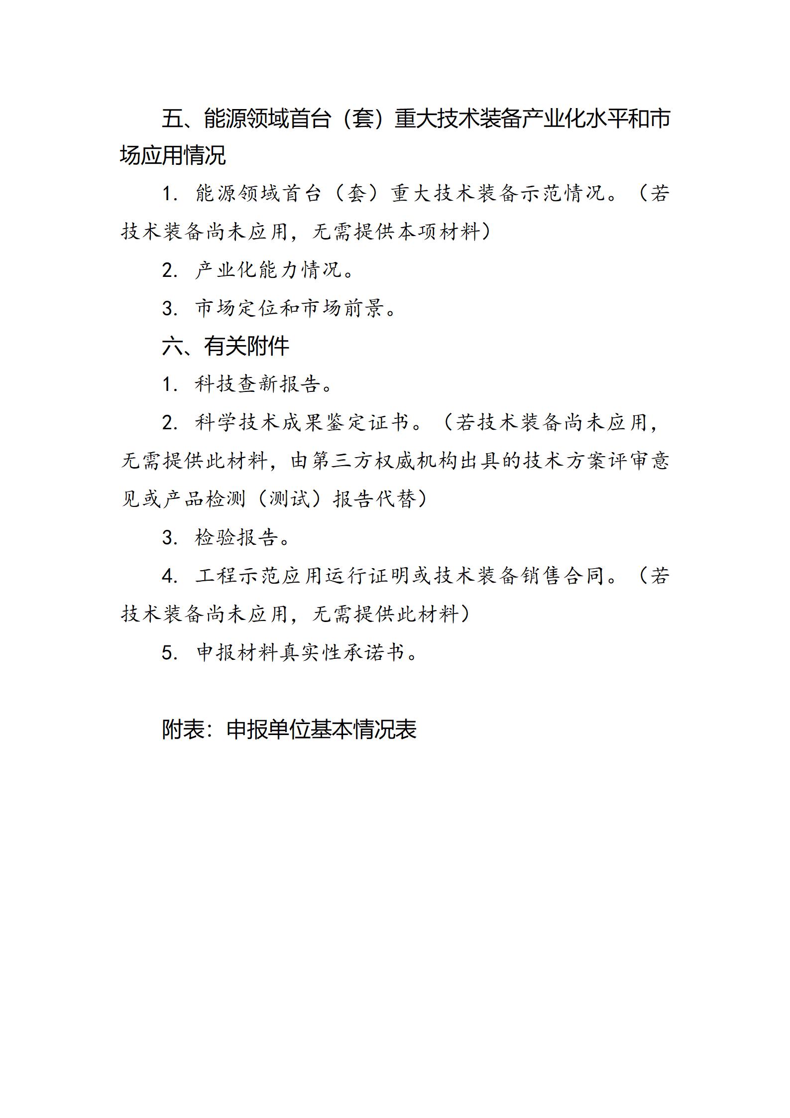 近日,北京市發(fā)展和改革委員會發(fā)布關(guān)于開展第四批能源領(lǐng)域首臺(套)重大技術(shù)裝備申報工作的通知。 全文見下: 關(guān)于開展第四批能源領(lǐng)域首臺(套)重大技術(shù)裝備申報工作的通知 各有關(guān)單位: 按照國家能源局綜合司《關(guān)于組織開展第四批能源領(lǐng)域首臺(套)重大技術(shù)裝備申報工作的通知》和《能源領(lǐng)域首臺(套)重大技術(shù)裝備評定和評價辦法》(國能發(fā)科技〔2022〕81號,以下簡稱《評價辦法》)有關(guān)要求,現(xiàn)組織開展第四批能源領(lǐng)域首臺(套)重大技術(shù)裝備申報工作。具體事項通知如下: 一、申報條件 (一)申報項目應(yīng)屬于國內(nèi)率先實現(xiàn)重大技術(shù)突破、擁有自主知識產(chǎn)權(quán)、尚未批量取得市場業(yè)績的能源領(lǐng)域關(guān)鍵技術(shù)裝備,包括前三臺(套)或前三批(次)成套設(shè)備、整機設(shè)備及核心部件、控制系統(tǒng)、基礎(chǔ)材料、軟件系統(tǒng)等。 (二)申報項目以保障國家能源安全、支撐碳達峰碳中和目標、助力構(gòu)建新型能源體系為導向,重點聚焦先進可再生能源、新型電力系統(tǒng)、安全高效核能、化石能源綠色高效開發(fā)利用、新型儲能、抽水蓄能、氫能及其綜合利用、能源系統(tǒng)數(shù)字化智能化、節(jié)能和能效提升等方向。 (三)對填補國內(nèi)空白、打造世界首臺(套)領(lǐng)先優(yōu)勢、引領(lǐng)新興產(chǎn)業(yè)發(fā)展的成套、整機設(shè)備及關(guān)鍵零部件予以鼓勵和傾斜。 (四)申報項目技術(shù)裝備應(yīng)已完成研制,并具備示范應(yīng)用條件;依托工程應(yīng)已落實項目建設(shè)前置條件,具備一年內(nèi)簽訂正式供貨合同、兩年內(nèi)正式開工條件,且工程建設(shè)周期可控。 (五)鼓勵重型燃氣輪機、變速抽水蓄能、特高壓關(guān)鍵組部件等重大技術(shù)裝備,申報不同批(次)首臺(套)示范,通過工程應(yīng)用促進技術(shù)裝備優(yōu)化完善和迭代升級,逐步提升自主可控水平。 二、申報程序 (一)能源領(lǐng)域首臺(套)重大技術(shù)裝備原則上由用戶單位牽頭聯(lián)合研制單位申報,尚未確定依托工程的技術(shù)裝備,由研制單位根據(jù)技術(shù)裝備突破情況申報,并按要求填寫《能源領(lǐng)域首臺(套)重大技術(shù)裝備申請報告》(詳見附件1)和《能源領(lǐng)域首臺(套)重大技術(shù)裝備申請材料承諾書》(詳見附件2)。 (二)請各申報單位于2024年1月18日前將《能源領(lǐng)域首臺(套)重大技術(shù)裝備申請報告》和《能源領(lǐng)域首臺(套)重大技術(shù)裝備申請材料承諾書》(一式三份)和電子版(光盤刻錄)報送至我委。 (三)我委將對各單位申報項目組織初審,按要求將通過初審的項目在我委網(wǎng)站公示5個工作日,并將通過公示的項目統(tǒng)一報送國家能源局。 三、其他事項 (一)申報材料應(yīng)包括紙質(zhì)版和電子版。其中電子版包括WORD文檔和PDF掃描文檔,光盤刻錄。單個項目應(yīng)不超過30M。 (二)申報單位應(yīng)確保申報材料的完整性、真實性、準確性,并可追溯核實,不得涉及國家秘密和商業(yè)秘密。 (三)請各區(qū)發(fā)展改革委及相關(guān)單位高度重視,按照公正、公平、公開、透明的原則組織做好項目申報工作。 (四)請各申報單位抓緊時間按要求準備材料,按期申報。不符合要求或逾期的項目將視作無效(以郵戳時間或快遞發(fā)出時間為準)。 (五)郵寄地址:北京市通州區(qū)運河東大街55號院北京市發(fā)展和改革委員會能源發(fā)展處。郵編:101160。 特此通知。 北京市發(fā)展和改革委員會 2023年12月29日 附件:1.能源領(lǐng)域首臺(套)重大技術(shù)裝備申請報告 2.能源領(lǐng)域首臺(套)重大技術(shù)裝備申請材料承諾書