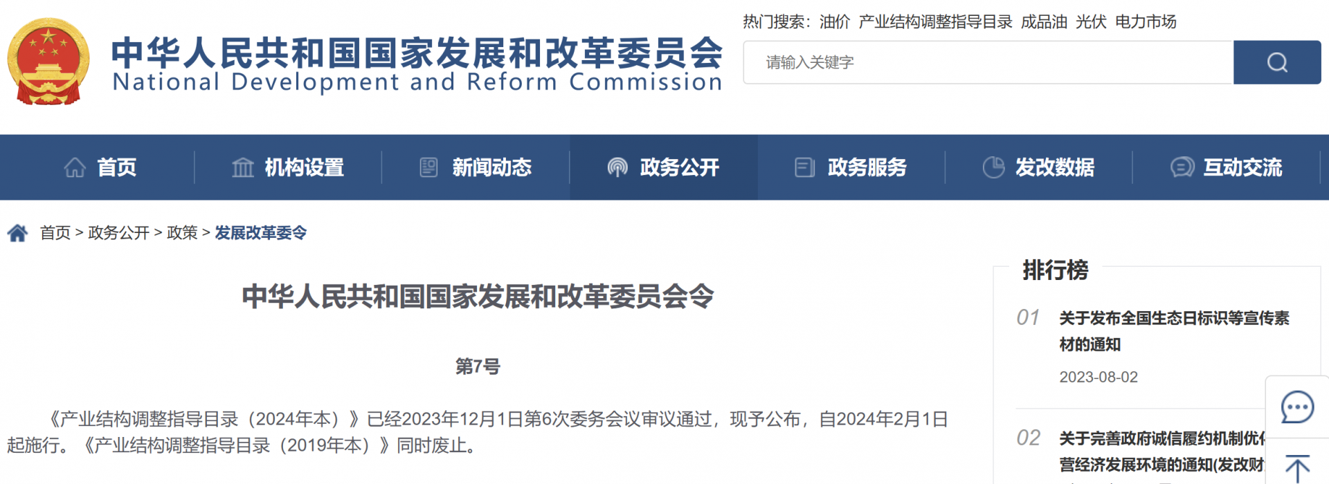 12月29日,國(guó)家發(fā)改委印發(fā)了《產(chǎn)業(yè)結(jié)構(gòu)調(diào)整指導(dǎo)目錄(2024年本)》。 文件指出,《產(chǎn)業(yè)結(jié)構(gòu)調(diào)整指導(dǎo)目錄(2024年本)》由鼓勵(lì)、限制和淘汰三類目錄組成。鼓勵(lì)類主要是對(duì)經(jīng)濟(jì)社會(huì)發(fā)展有重要促進(jìn)作用的技術(shù)、裝備及產(chǎn)品;限制類主要是工藝技術(shù)落后,不符合行業(yè)準(zhǔn)入條件和有關(guān)規(guī)定,不利于安全生產(chǎn),不利于實(shí)現(xiàn)碳達(dá)峰碳中和目標(biāo),需要督促改造和禁止新建的生產(chǎn)能力、工藝技術(shù)、裝備及產(chǎn)品;淘汰類主要是不符合有關(guān)法律法規(guī)規(guī)定,嚴(yán)重浪費(fèi)資源、污染環(huán)境,安全生產(chǎn)隱患嚴(yán)重,阻礙實(shí)現(xiàn)碳達(dá)峰碳中和目標(biāo),需要淘汰的落后工藝技術(shù)、裝備及產(chǎn)品。鼓勵(lì)類、限制類和淘汰類之外的,且符合國(guó)家有關(guān)法律、法規(guī)和政策規(guī)定的屬于允許類。其中氫能產(chǎn)業(yè)相關(guān)內(nèi)容均為鼓勵(lì)類。詳情如下所示: 四、電力 1、新型電力系統(tǒng)技術(shù)及裝備:±800 千伏及以上直流輸變電,1000 千伏及以上交流輸變電,分布式新能源并網(wǎng)、分布式智能電網(wǎng)(含微電網(wǎng))技術(shù)推廣應(yīng)用,電化學(xué)儲(chǔ)能、壓縮空氣儲(chǔ)能、重力儲(chǔ)能、飛輪儲(chǔ)能、氫(氨)儲(chǔ)能、熱儲(chǔ)能等各類新型儲(chǔ)能技術(shù)及應(yīng)用,長(zhǎng)時(shí)儲(chǔ)能技術(shù),水力發(fā)電中低溫水恢復(fù)措施工程、過(guò)魚措施工程技術(shù)開發(fā)與應(yīng)用,乏風(fēng)瓦斯發(fā)電技術(shù)及開發(fā)利用,垃圾焚燒發(fā)電成套設(shè)備,生物質(zhì)熱電聯(lián)產(chǎn) 五、新能源 4、氫能技術(shù)與應(yīng)用:可再生能源制氫、運(yùn)氫及高密度儲(chǔ)氫技術(shù)開發(fā)應(yīng)用及設(shè)備制造,加氫站及車用清潔替代燃料加注站,移動(dòng)新能源技術(shù)開發(fā)及應(yīng)用,新一代氫燃料電池技術(shù)研發(fā)與應(yīng)用,可再生能源制氫,液態(tài)、固態(tài)和氣態(tài)儲(chǔ)氫,管道拖車運(yùn)氫,管道輸氫,加氫站,氫電耦合等氫能技術(shù)推廣應(yīng)用 5、發(fā)電互補(bǔ)技術(shù)與應(yīng)用:氫能、風(fēng)電與光伏發(fā)電互補(bǔ)系統(tǒng)技術(shù)開發(fā)與應(yīng)用,傳統(tǒng)能源與新能源發(fā)電互補(bǔ)技術(shù)開發(fā)及應(yīng)用,電解水制氫和二氧化碳催化合成綠色甲醇 八、鋼鐵 帶式焙燒等高效球團(tuán)礦生產(chǎn)及高爐高比例球團(tuán)冶煉,氣基直接還原低碳煉鐵(不含煤制氣),高爐富氫噴吹冶煉、冶金渣余熱回收及綜合利用,近終形鑄軋一體化,加熱爐高效燃燒(包括全氧燃燒技術(shù)、富氧燃燒技術(shù)、低氮燃燒技術(shù)),熱軋氧化鐵皮無(wú)酸表面處理 十一、石化化工 12、綠色高效技術(shù):二氧化碳高效利用新技術(shù)開發(fā)與應(yīng)用(包括二氧化碳-甲烷重整、二氧化碳加氫制化學(xué)品、二氧化碳制聚碳酸酯類和生物可降解塑料等高分子材料等),可再生能源制氫、副產(chǎn)氫替代煤制氫等清潔利用技術(shù),四氯化碳、四氯化硅、甲基三氯硅烷、三甲基氯硅烷、三氟甲烷等副產(chǎn)物的綜合利用,微通道反應(yīng)技術(shù)和裝備的開發(fā)與應(yīng)用 十二、建材 1、建筑材料等礦產(chǎn)資源的共伴生礦產(chǎn)綜合開發(fā)利用、水泥原燃材料替代及協(xié)同處置技術(shù);綠色氫能煅燒水泥熟料關(guān)鍵技術(shù)的研發(fā)與應(yīng)用;利用清潔能源煅燒水泥熟料技術(shù)應(yīng)用和生產(chǎn)線改造; 2、大型玻璃熔窯大功率玻璃-電復(fù)合熔化技術(shù),玻璃熔窯用全氧/富氧燃燒技術(shù);玻璃熔窯利用綠色氫能成套技術(shù)及裝備 4、陶瓷集中制粉、陶瓷園區(qū)清潔煤制氣生產(chǎn)技術(shù)開發(fā)與集中應(yīng)用;基于氫能利用的節(jié)能陶瓷干燥窯及燒成窯爐裝備 7、石墨烯材料、氫燃料電池石墨雙極板、高性能天然石墨負(fù)極材料、核級(jí)石墨生產(chǎn)及應(yīng)用開發(fā) 十四、機(jī)械 12、關(guān)鍵密封件:氫能源儲(chǔ)運(yùn)低溫密封,余熱回收蒸汽壓縮機(jī)軸端密封,高性能無(wú)石棉密封材料(耐熱溫度 500℃,抗拉強(qiáng)度≥20 兆帕),高性能碳石墨密封材料(耐熱溫度 350℃,抗壓強(qiáng)度≥270 兆帕) 17、關(guān)鍵泵、閥部件:70MPa 復(fù)合材料儲(chǔ)氫氣瓶組合閥門(公稱工作壓力 70MPa、功能組件集成數(shù)≥6、泄漏率≤30NmL/h)、高效低噪燃料電池氫氣再循環(huán)泵(流量≥300L/min、系統(tǒng)效率≥60%、噪聲≤70dBA),加氫站用高壓高頻嚴(yán)密切斷氫氣球閥(工作壓力 45MPa/90MPa、啟閉頻次≥10cycle/h),18MW 及以上集成式壓縮機(jī)組、直徑 1200 毫米及以上的天然氣輸氣管線配套壓縮機(jī)、燃?xì)廨啓C(jī)、閥門等關(guān)鍵設(shè)備,單線 260 萬(wàn)噸/年及以上天然氣液化配套的壓縮機(jī)及驅(qū)動(dòng)機(jī)械、低溫設(shè)備等,大型輸油管線配套的 3000 立方米/小時(shí)及以上輸油泵等關(guān)鍵設(shè)備 十六、汽車 1、汽車關(guān)鍵零部件:高效柴油機(jī)、氫燃料發(fā)動(dòng)機(jī)、汽油機(jī)顆粒捕捉器,臭氧催化轉(zhuǎn)化換熱器 3、新能源汽車關(guān)鍵零部件:電動(dòng)汽車驅(
