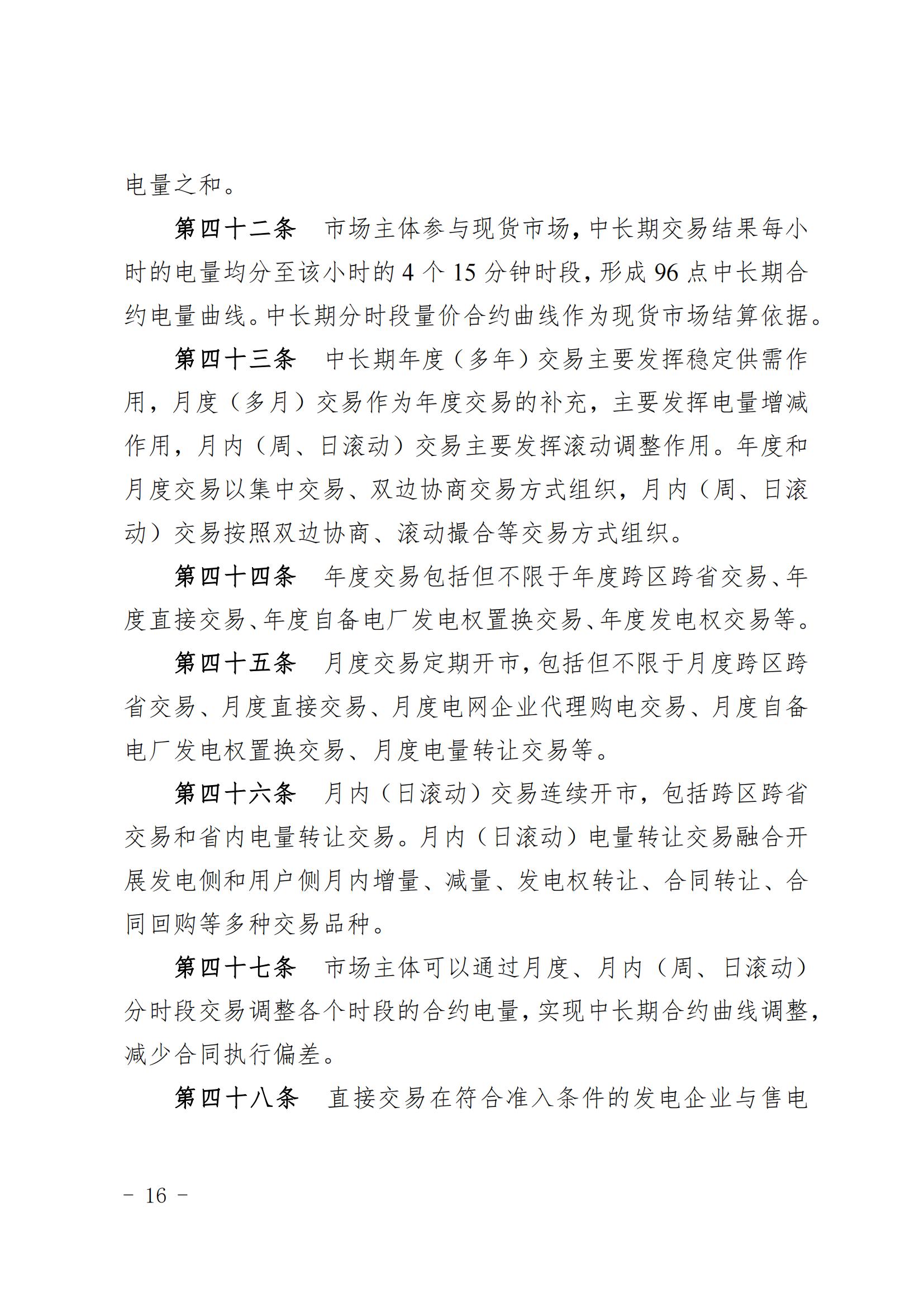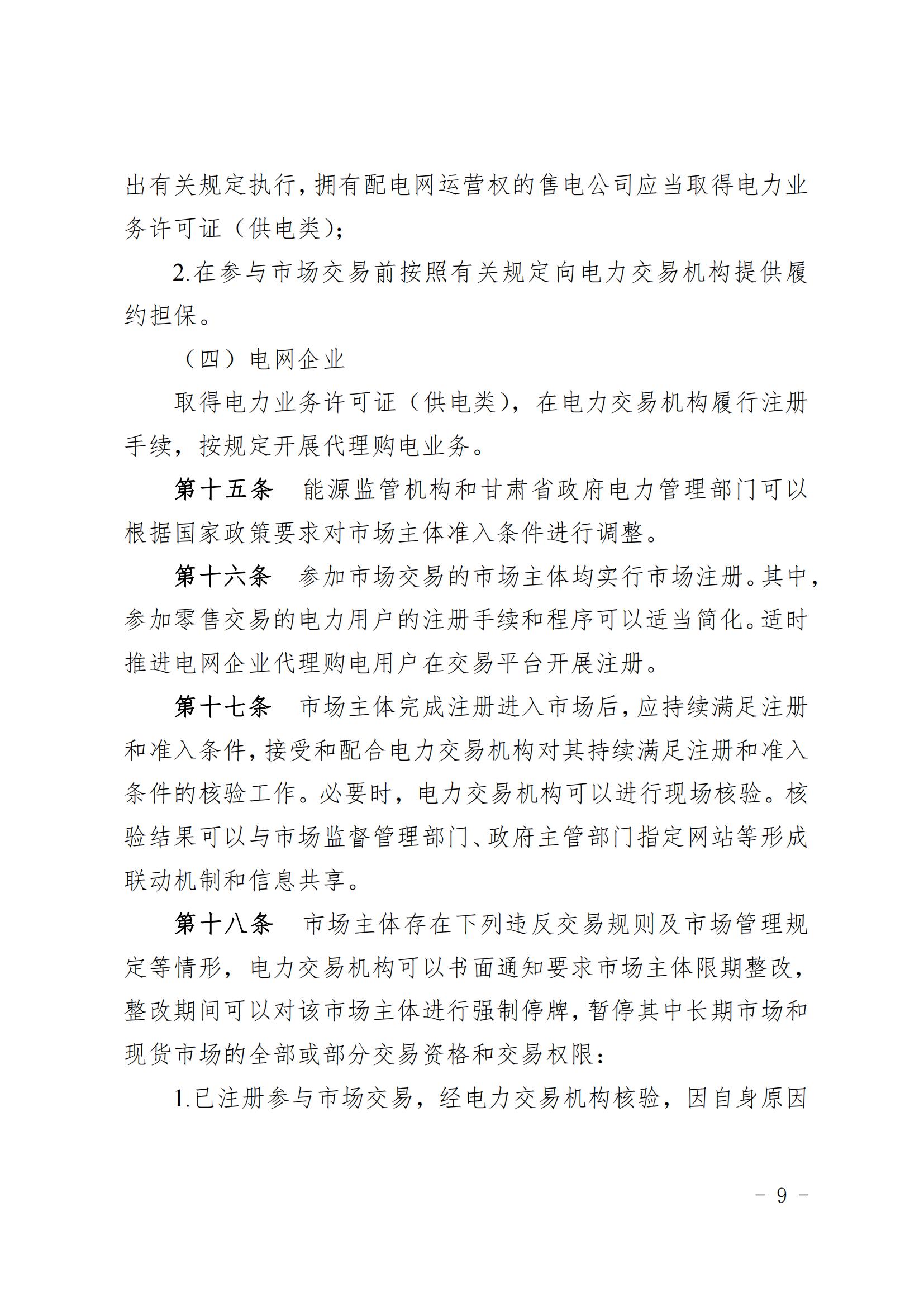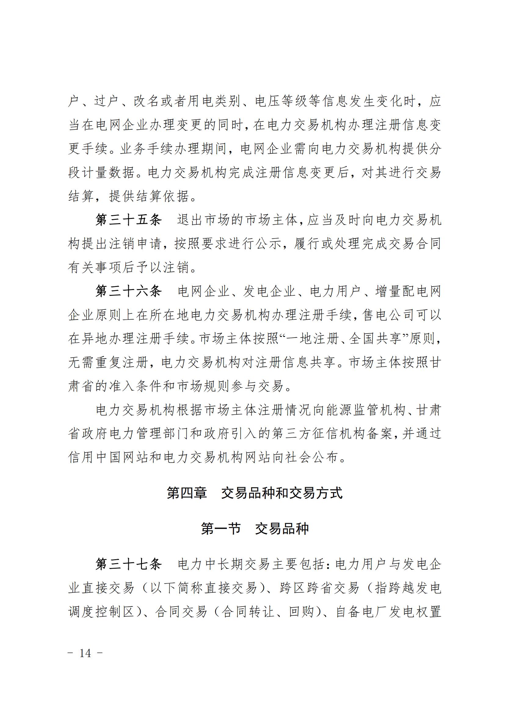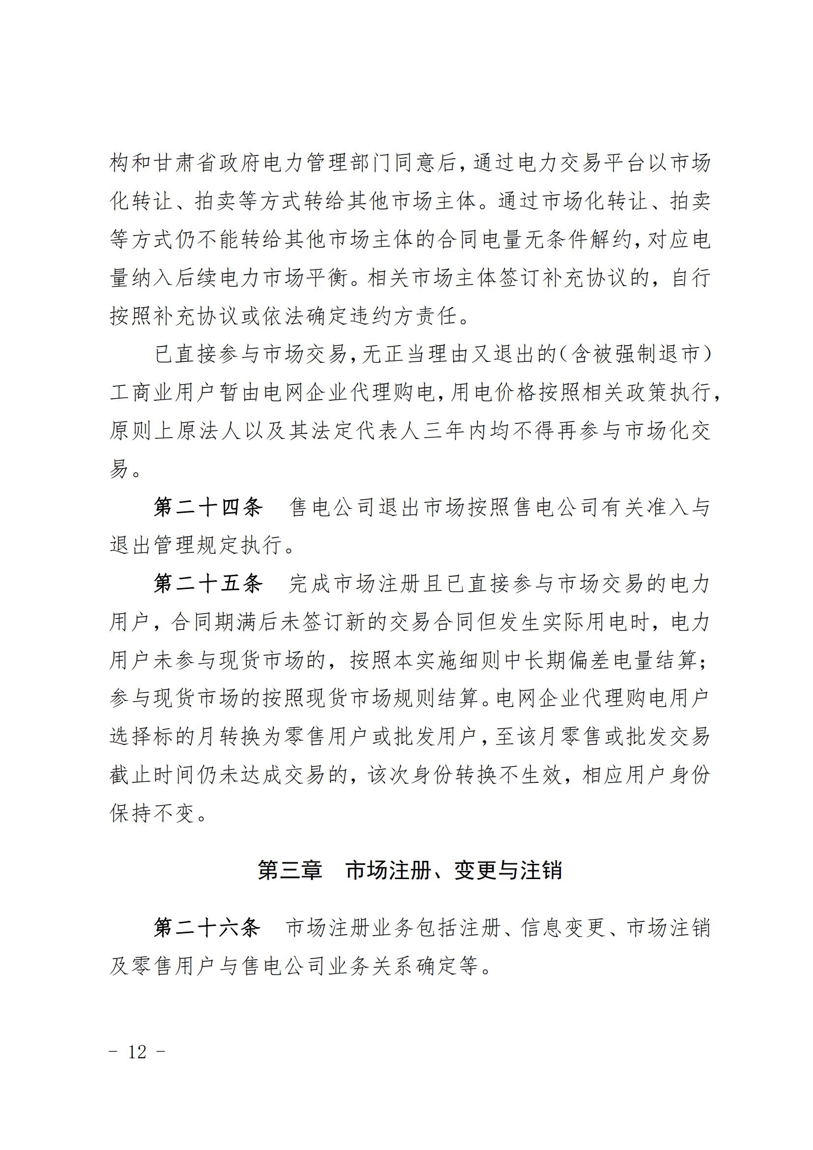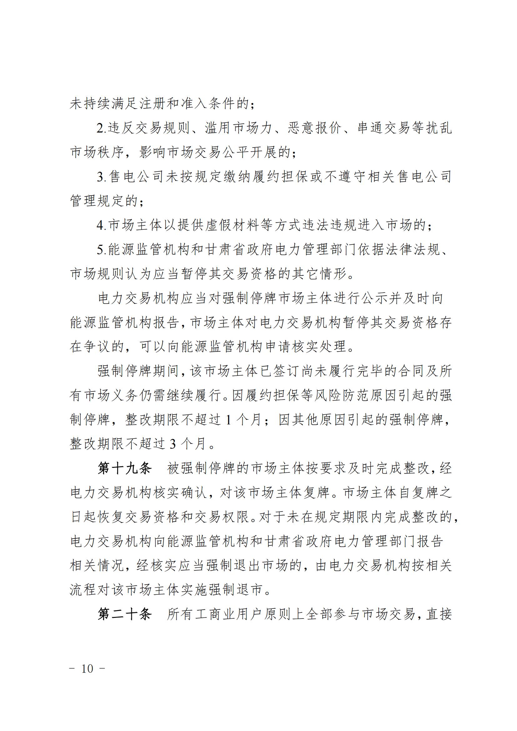 日前,甘肅省電力中長(zhǎng)期交易實(shí)施細(xì)則 (試行)印發(fā)。 細(xì)則指出,綠色電力交易優(yōu)先組織未納入國(guó)家可再生能 源電價(jià)附加補(bǔ)助政策范圍內(nèi)的風(fēng)電和光伏(以下簡(jiǎn)稱“無補(bǔ)貼新 能源”)企業(yè)參與交易,已納入國(guó)家可再生能源電價(jià)附加補(bǔ)助政 策范圍內(nèi)的風(fēng)電和光伏(以下簡(jiǎn)稱“帶補(bǔ)貼新能源”)作為補(bǔ)充,根據(jù)國(guó)家有關(guān)要求可以逐步擴(kuò)大至符合條件的其他類型發(fā)電企 業(yè)。電力用戶主要為具有綠色電力消費(fèi)及認(rèn)證需求、愿意承擔(dān)綠 色電力環(huán)境價(jià)值的用電企業(yè),主要包括直接參與交易的工商業(yè)用 戶和電網(wǎng)企業(yè)代理購(gòu)電用戶。 多臺(tái)發(fā)電機(jī)組共用上網(wǎng)計(jì)量點(diǎn)且無法拆 分,各發(fā)電機(jī)組需分別結(jié)算時(shí),按照每臺(tái)機(jī)組的實(shí)際發(fā)電量等比 例拆分共用計(jì)量點(diǎn)的上網(wǎng)電量。對(duì)于風(fēng)電、光伏企業(yè)處于相同運(yùn) 行狀態(tài)的不同項(xiàng)目批次共用同一計(jì)量點(diǎn)的機(jī)組,可以按照額定容 量比例計(jì)算上網(wǎng)電量。 風(fēng)電、光伏發(fā)電企業(yè)年度保障收購(gòu)電量按 照政府批復(fù)的價(jià)格或者價(jià)格機(jī)制進(jìn)行結(jié)算。超出年度保障收購(gòu)電 量的部分通過市場(chǎng)交易方式消納并按照市場(chǎng)交易價(jià)格結(jié)算。 風(fēng)電、光伏發(fā)電量參與市場(chǎng)交易,結(jié)算涉 及中央財(cái)政補(bǔ)貼時(shí),按照國(guó)家相關(guān)補(bǔ)貼管理規(guī)定執(zhí)行。 全文見下: 國(guó)家能源局甘肅監(jiān)管辦公室甘肅省發(fā)展和改革委員會(huì)甘肅省工業(yè)和信息化廳 關(guān)于印發(fā)《甘肅省電力中長(zhǎng)期交易實(shí)施細(xì)則(試行)》的通知 甘監(jiān)能市場(chǎng)〔2023〕161號(hào) 國(guó)網(wǎng)甘肅省電力公司,甘肅電力交易中心有限公司,甘肅省電力市場(chǎng)管理委員會(huì),各有關(guān)發(fā)電企業(yè),售電公司,電力用戶,儲(chǔ)能企業(yè): 為深入貫徹落實(shí)《中共中央國(guó)務(wù)院關(guān)于進(jìn)一步深化電力體制改革的若干意見》(中發(fā)〔2015〕9號(hào))及其配套文件精神,按照《國(guó)家發(fā)展改革委 國(guó)家能源局關(guān)于印發(fā)<電力中長(zhǎng)期交易基本規(guī)則>的通知》(發(fā)改能源規(guī)〔2020〕889號(hào))、《國(guó)家發(fā)展改革委關(guān)于第三監(jiān)管周期省級(jí)電網(wǎng)輸配電價(jià)及有關(guān)事項(xiàng)的通知》(發(fā)改價(jià)格〔2023〕526號(hào))、《國(guó)家發(fā)展改革委 國(guó)家能源局關(guān)于印發(fā)<電力現(xiàn)貨市場(chǎng)基本規(guī)則(試行)>的通知》(發(fā)改能源規(guī)〔2023〕1217號(hào))等文件要求,國(guó)家能源局甘肅監(jiān)管辦公室、甘肅省發(fā)展和改革委員會(huì)、甘肅省工業(yè)和信息化廳組織修訂了《甘肅省電力中長(zhǎng)期交易實(shí)施細(xì)則(試行)》(以下簡(jiǎn)稱“細(xì)則”),現(xiàn)印發(fā)你們,請(qǐng)遵照?qǐng)?zhí)行。 執(zhí)行過程中如遇重大問題,請(qǐng)及時(shí)報(bào)告國(guó)家能源局甘肅監(jiān)管辦公室、甘肅省發(fā)展和改革委員會(huì)、甘肅省工業(yè)和信息化廳。 國(guó)家能源局甘肅監(jiān)管辦公室 甘肅省發(fā)展和改革委員會(huì) 甘肅省工業(yè)和信息化廳 2023年12月27日
