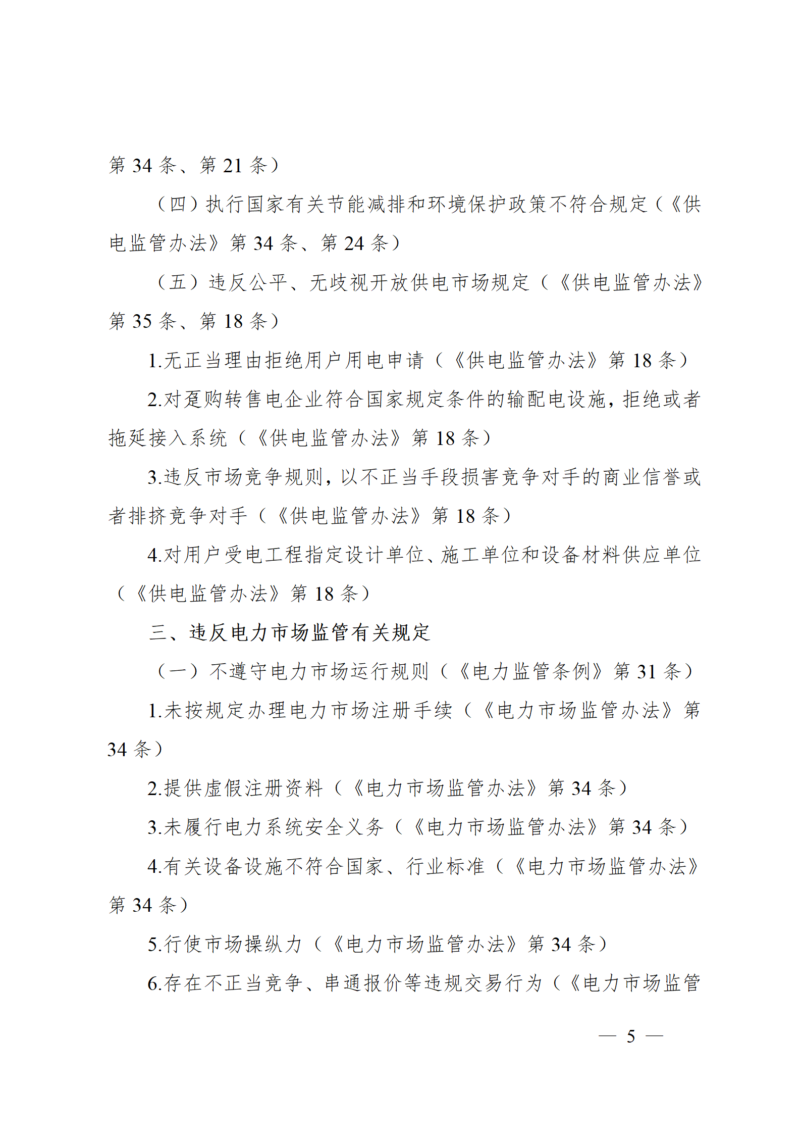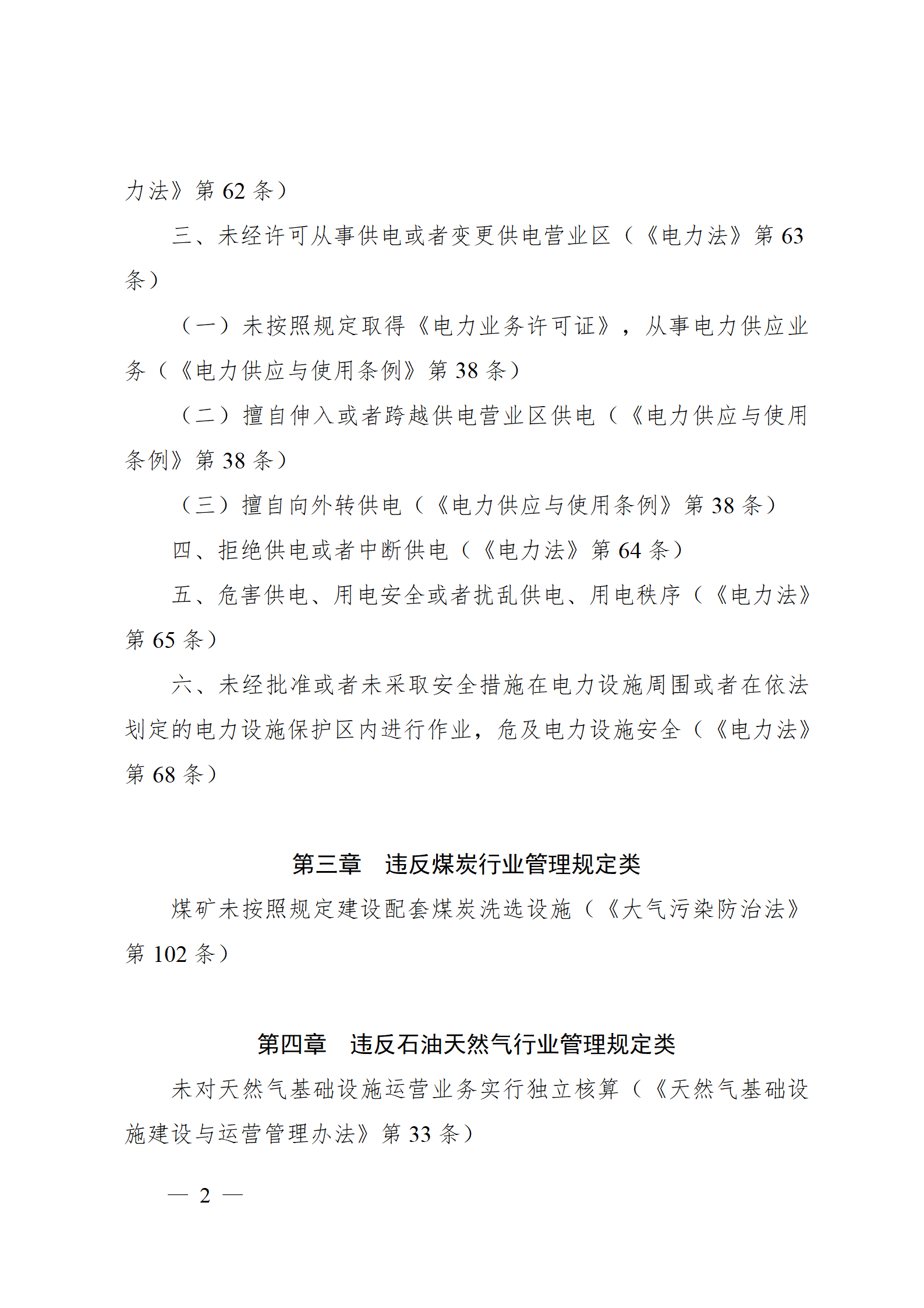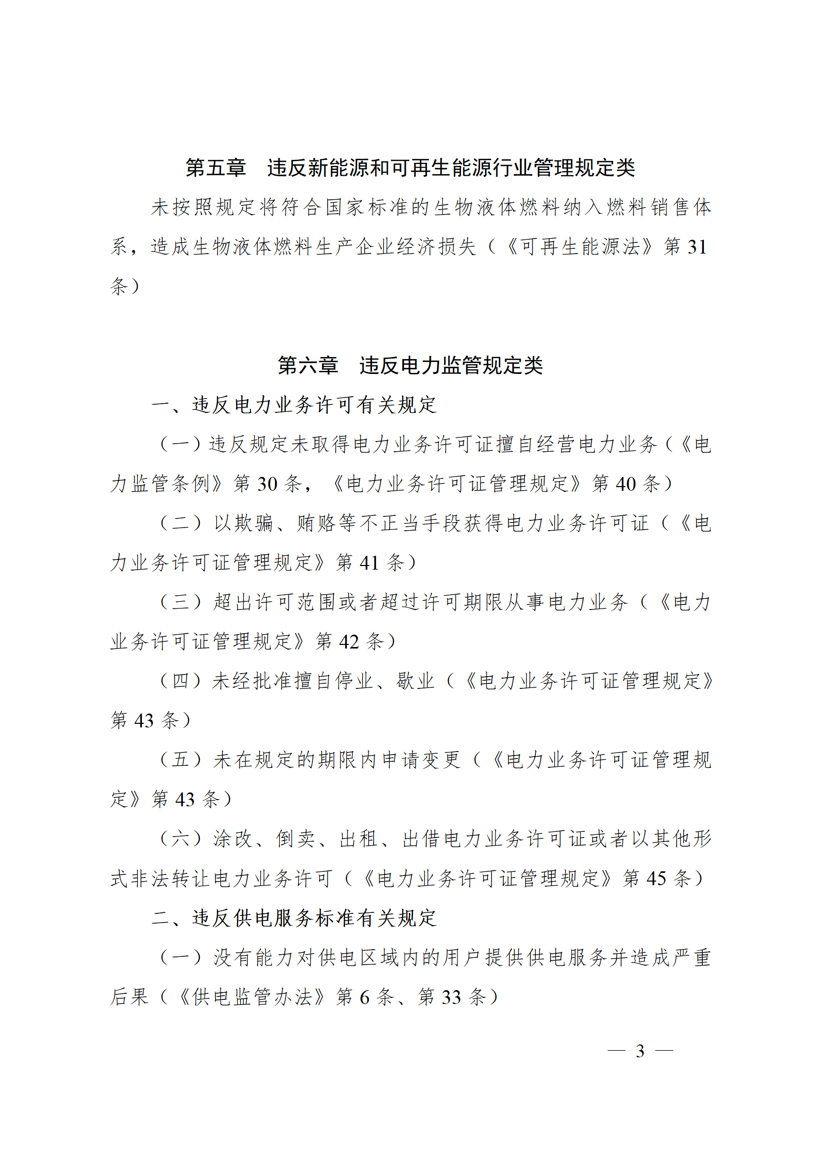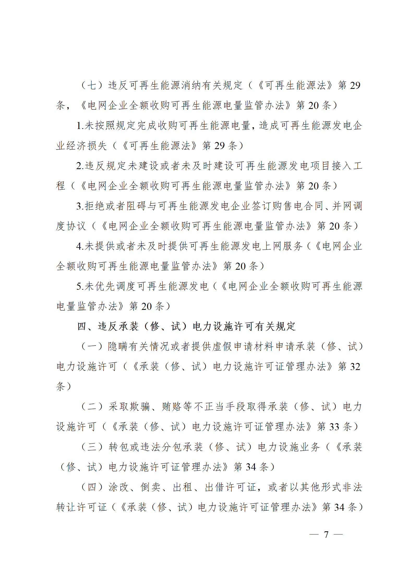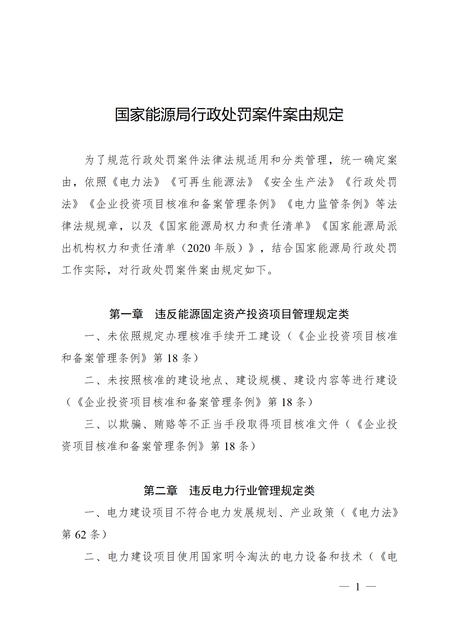 近日,國家能源局下發(fā)《國家能源局行政處罰案件案由規(guī)定》,將能源領域的違法行為分為7種案件案由,分別為:違反能源固定資產(chǎn)投資項目管理、違反電力行業(yè)管理、違反煤炭行業(yè)管理、違反石油天然氣行業(yè)管理、違反新能源和可再生能源行業(yè)管理、違反電力監(jiān)管、違反電力安全監(jiān)督管理有關規(guī)定等。 其中第六章、第三條、第七款明確規(guī)定,“未按照規(guī)定完成收購可再生能源電量”等5種違法行為。具體如下: 1.未按照規(guī)定完成收購可再生能源電量,造成可再生能源發(fā)電企業(yè)經(jīng)濟損失(《可再生能源法》第29條) 2.違反規(guī)定未建設或者未及時建設可再生能源發(fā)電項目接入工程(《電網(wǎng)企業(yè)全額收購可再生能源電量監(jiān)管辦法》第20條) 3.拒絕或者阻礙與可再生能源發(fā)電企業(yè)簽訂購售電合同、并網(wǎng)調(diào)度協(xié)議(《電網(wǎng)企業(yè)全額收購可再生能源電量監(jiān)管辦法》第20條) 4.未提供或者未及時提供可再生能源發(fā)電上網(wǎng)服務(《電網(wǎng)企業(yè)全額收購可再生能源電量監(jiān)管辦法》第20條) 5.未優(yōu)先調(diào)度可再生能源發(fā)電(《電網(wǎng)企業(yè)全額收購可再生能源電量監(jiān)管辦法》第20條) 詳情如下: 國家能源局關于印發(fā)《國家能源局行政處罰案件案由規(guī)定》的通知 (國能發(fā)監(jiān)管規(guī)〔2023〕86號) 各司,各派出機構,有關直屬事業(yè)單位: 《國家能源局行政處罰案件案由規(guī)定》(以下簡稱《案由規(guī)定》)已經(jīng)2023年12月13日國家能源局局長辦公會議審議通過,現(xiàn)印發(fā)給你們,請遵照執(zhí)行,并就有關事項通知如下。 一、高度重視行政處罰案件案由。行政處罰案件案由是對案件性質(zhì)認定的高度概括,是國家能源局對行政處罰案件管理的重要手段。相關部門(單位)、各派出機構要以案件案由為切入點,加強行政處罰案件的過程化管理,不斷強化行政執(zhí)法規(guī)范化建設,切實提高行政執(zhí)法效能。 二、系統(tǒng)掌握行政處罰案件案由。行政處罰案件案由共分七類三級,下一級案由是上一級案由的分類細化,選用方法是從最低級起適用,低級中沒有適合的,再選用高一級?!栋赣梢?guī)定》第一、二、三、五章由國家能源局機關單獨適用,第六章“四、違反承裝(修、試)電力設施許可有關規(guī)定”、第七章“三、違反水電站大壩安全管理有關規(guī)定”第七條至第十八條由派出機構單獨適用。相關部門(單位)、各派出機構要系統(tǒng)掌握案件案由及其法律依據(jù),著力提升行政執(zhí)法工作水平。 三、規(guī)范使用行政處罰案件案由。相關部門(單位)、各派出機構要嚴格按照《案由規(guī)定》列明的行政處罰案件案由開展行政處罰工作。案由原則上要前后一致,實際案由與立案案由不同的應及時變更,結案歸檔應以實際案由為準。個案涉及多個案由的,使用時應根據(jù)行為人具體實施的行為,選擇一種或者一種以上行為進行表述;同一案件中存在兩個以上無包含關系的違法行為的,可以并列使用多個案由。此外,《案由規(guī)定》是對現(xiàn)有行政處罰案件案由的梳理匯總,不作為行政處罰工作的職責依據(jù)。 《案由規(guī)定》自印發(fā)之日起執(zhí)行,《國家電力監(jiān)管委員會關于印發(fā)〈電力稽查案件案由表(試行)〉的通知》(辦稽查〔2010〕80號)即行廢止。在執(zhí)行中遇有重要問題請及時報告。 附件:國家能源局行政處罰案件案由規(guī)定 《國家能源局行政處罰案件案由規(guī)定》政策解讀 國家能源局 2023年12月20日 《國家能源局行政處罰案件案由規(guī)定》政策解讀 為進一步規(guī)范行政處罰案件法律法規(guī)適用和分類管理,國家能源局組織對原國家電監(jiān)會《電力稽查案件案由表(試行)》(辦稽查〔2010〕80號,以下簡稱《案由表》)進行修訂,形成了《國家能源局行政處罰案件案由規(guī)定》(國能發(fā)監(jiān)管規(guī)〔2023〕86號,以下簡稱《案由規(guī)定》),并于近日印發(fā)。 2010年,原國家電監(jiān)會根據(jù)《電力監(jiān)管條例》等法律法規(guī)規(guī)章制定《案由表》,對規(guī)范案件分類管理,統(tǒng)一確定案由發(fā)揮了重要作用?!栋赣杀怼酚“l(fā)13年以來,由于機構改革、職責調(diào)整,同時部分涉及行政處罰的法律法規(guī)規(guī)章依據(jù)發(fā)生變化,相關案件案由需要進行相應修訂。因此,國家能源局在保留《案由表》整體框架和大部分內(nèi)容的基礎上,制定《案由規(guī)定》并采用行政規(guī)范性文件形式予以印發(fā)。 《案由規(guī)定》嚴格以相關法律法規(guī)規(guī)章和國家能源局及其派出機構權責清單為依據(jù),并參照《國家能源局權力和責任清單》體例結構,按照行業(yè)管理、電力監(jiān)管、電力安全監(jiān)督管理順序進行逐項表述。重點修訂完善了三個方面內(nèi)容。 (一)擴展了案件案由領域。依照國家能源局和派出機構權責清單明確的行政處罰職責,案件案由類別從原來的電力監(jiān)管領域擴展到固定資產(chǎn)投資、煤炭、石油天然氣、可再生能源等領域?!栋赣梢?guī)定》共分為違反能源固定資產(chǎn)投資項目管理、違反電力行業(yè)管理、違反煤炭行業(yè)管理、違反石油天然氣