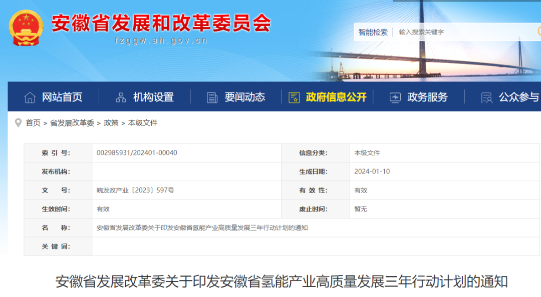 直接補錢!安徽氫能大市場:氫燃料電池車2000輛、氫能船舶運營10艘、加氫站30座!2024-01-17 16:29瀏覽數(shù):187次