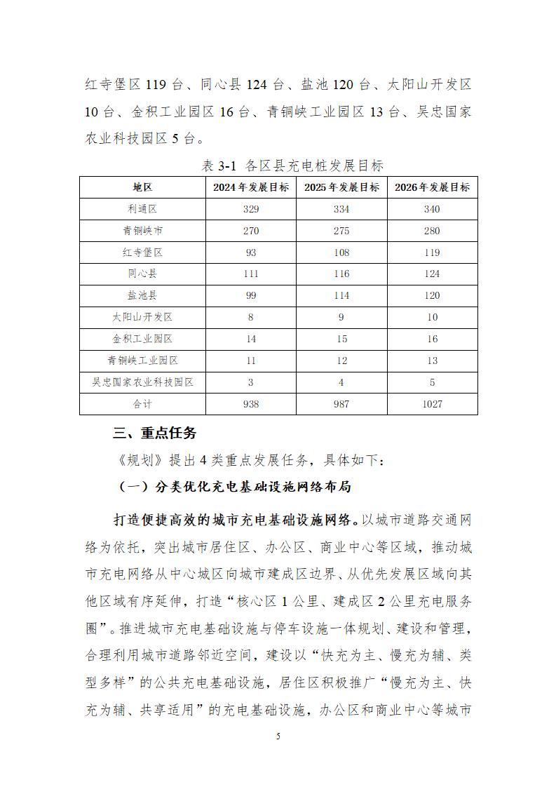 1月12日,寧夏吳忠市住房和城鄉(xiāng)建設(shè)局發(fā)布關(guān)于公開征求《吳忠市充電基礎(chǔ)設(shè)施發(fā)展規(guī)劃(2024-2026年)》(征求意見稿)意見建議的函。 文件明確總體目標(biāo):至2024年,規(guī)劃建設(shè)充電樁累計(jì)達(dá)到938臺(tái),加快建設(shè)布局合理、管理規(guī)范、智能高效的充電基礎(chǔ)設(shè)施體系,至少滿足3500輛電動(dòng)汽車充電需求;至2025年,規(guī)劃建設(shè)充電樁累計(jì)達(dá)到987臺(tái),基本建成布局合理、管理規(guī)范、智能高效的充電基礎(chǔ)設(shè)施體系,至少滿足4800輛電動(dòng)汽車充電需求;至2026年,規(guī)劃建設(shè)充電樁累計(jì)達(dá)到1027臺(tái),全面建成布局合理、管理規(guī)范、智能高效的充電基礎(chǔ)設(shè)施體系,至少滿足6000輛電動(dòng)汽車充電需求。 分區(qū)目標(biāo):通過整體目標(biāo),結(jié)合各區(qū)縣經(jīng)濟(jì)社會(huì)發(fā)展情況,細(xì)化出各區(qū)縣充電設(shè)施建設(shè)規(guī)模目標(biāo)。至2026年,下轄各區(qū)縣及工業(yè)園區(qū)建成充電樁目標(biāo)為:利通區(qū)340臺(tái)、青銅峽市280臺(tái)、紅寺堡區(qū)119臺(tái)、同心縣124臺(tái)、鹽池120臺(tái)、太陽山開發(fā)區(qū)10臺(tái)、金積工業(yè)園區(qū)16臺(tái)、青銅峽工業(yè)園區(qū)13臺(tái)、吳忠國家農(nóng)業(yè)科技園區(qū)5臺(tái)。 原文如下: 吳忠市住房和城鄉(xiāng)建設(shè)局關(guān)于公開征求《吳忠市充電基礎(chǔ)設(shè)施發(fā)展規(guī)劃(2024-2026年)》(征求意見稿)意見建議的函 為統(tǒng)籌指導(dǎo)我市新能源汽車充電基礎(chǔ)設(shè)施的建設(shè)與發(fā)展,加快構(gòu)建布局科學(xué)、智能開放、快慢互補(bǔ)、經(jīng)濟(jì)便捷的充電基礎(chǔ)設(shè)施網(wǎng)絡(luò)體系,不斷滿足居民綠色出行的充電需求,根據(jù)《自治區(qū)發(fā)展改革委關(guān)于印發(fā)<寧夏充電基礎(chǔ)設(shè)施“十四五”規(guī)劃>的通知》(寧發(fā)改能源(發(fā)展)〔2022〕208號(hào))和《吳忠市人民政府辦公室關(guān)于印發(fā)〈關(guān)于加快推進(jìn)全市新能源汽車充電基礎(chǔ)設(shè)施建設(shè)的實(shí)施意見〉的通知》(吳政辦規(guī)發(fā)〔2023〕4號(hào))等文件精神,我局結(jié)合工作實(shí)際,制定了《吳忠市充電基礎(chǔ)設(shè)施發(fā)展規(guī)劃(2024-2026年)》(征求意見稿),現(xiàn)公開征求社會(huì)各界意見,請(qǐng)將意見和建議以傳真、電子郵件、信函等方式反饋至吳忠市住房和城鄉(xiāng)建設(shè)局。 征求意見時(shí)間:2024年1月12日—2024年2月18日 聯(lián)系人:吳澤亮 通訊地址:吳忠市利通區(qū)利寧北街5號(hào) 附件:1.《吳忠市充電基礎(chǔ)設(shè)施發(fā)展規(guī)劃(2024-2026年)》(征求意見稿) 2.《吳忠市充電基礎(chǔ)設(shè)施發(fā)展規(guī)劃(2024-2026年)》(征求意見稿)起草說明 吳忠市住房和城鄉(xiāng)建設(shè)局 2024年1月12日