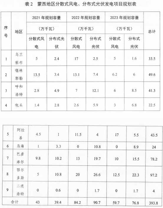 近日,內(nèi)蒙古自治區(qū)能源局印發(fā)《內(nèi)蒙古自治區(qū)分散式風(fēng)電、分布式光伏發(fā)電項目三年行動計劃(2021~2023年)》的通知,2021年~2023年規(guī)劃2.395GW分布式光伏,蒙西電網(wǎng)區(qū)域206.9萬千瓦,蒙東電網(wǎng)區(qū)域32.6萬千瓦。 根據(jù)文件,本計劃僅針對于裝機(jī)容量6兆瓦以下的工商業(yè)分布式光伏發(fā)電項目,開發(fā)模式為全部自發(fā)自用、余電上網(wǎng)兩類。單個分布式光伏規(guī)模不應(yīng)超過6兆瓦,原則上要求自用電量比例不低于75%。分布式光伏發(fā)電項目應(yīng)以35千伏及以下電壓等級接入電網(wǎng)配電側(cè),不得升壓外送。此外,納入年度建設(shè)規(guī)模的項目不得向其他投資人轉(zhuǎn)讓。 事實(shí)上,盡管內(nèi)蒙古光伏累計裝機(jī)規(guī)模位居全國前列,但其分布式光伏則較為滯后,截止到2020年底,其光伏總裝機(jī)為12.37GW,但分布式光伏僅為980MW,占比為7.9%。 通過本次規(guī)劃來看,蒙西地區(qū)2021~2023年分布式光伏年度規(guī)模分別為394MW、907MW、768MW;蒙東地區(qū)年度規(guī)模則分別為156MW、99MW、71MW。 分布式光伏發(fā)電的重點(diǎn)發(fā)展方向為鄉(xiāng)村振興和民生改善工程、新能源供熱示范小鎮(zhèn)、多場景高效融合、分布式光伏加交通、分布式能源加其他場景。在并網(wǎng)方面,文件要求當(dāng)年建設(shè)計劃內(nèi)的分布式光伏發(fā)電項目必須在當(dāng)年備案開工建設(shè),次年六月底建成并網(wǎng)。