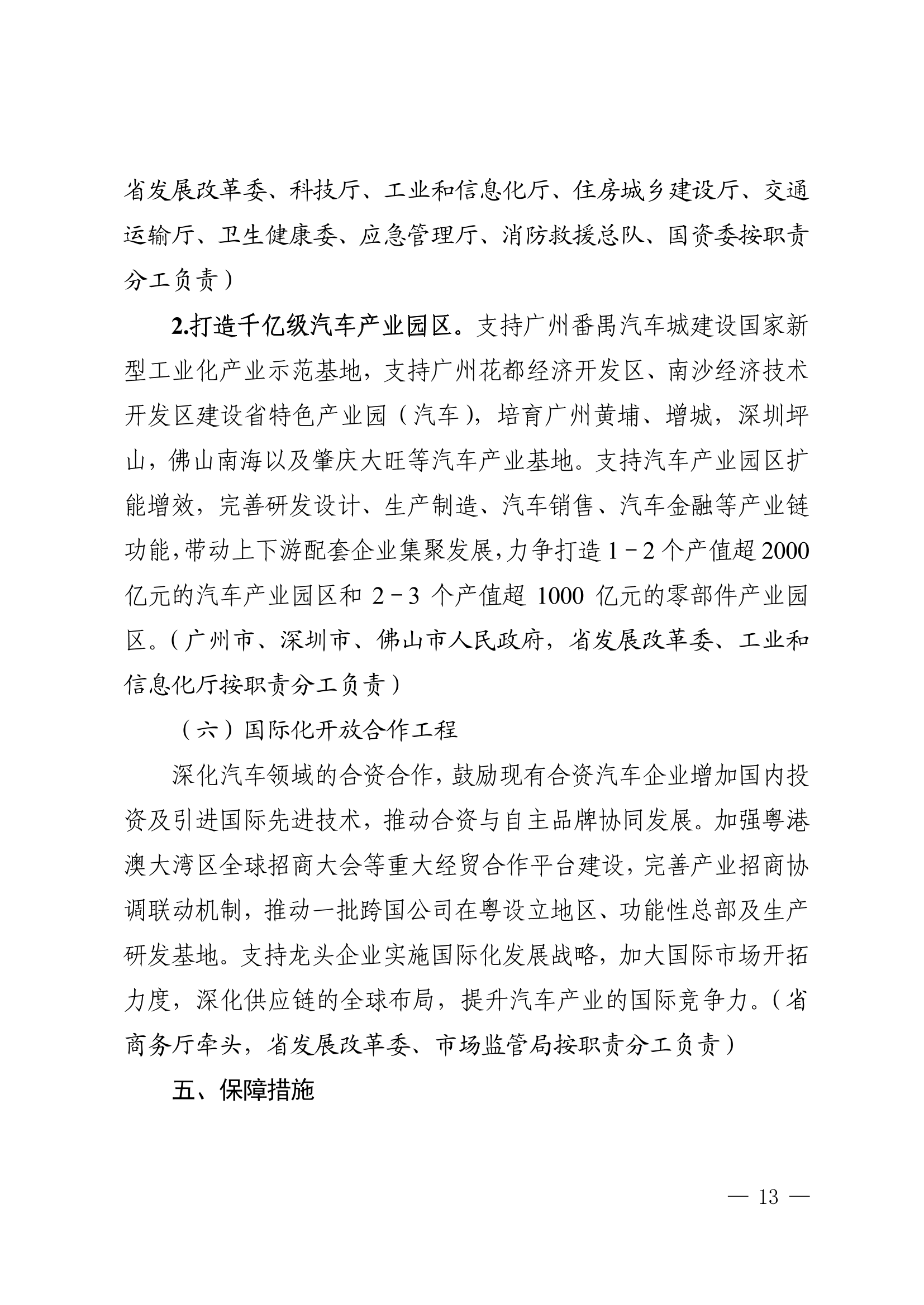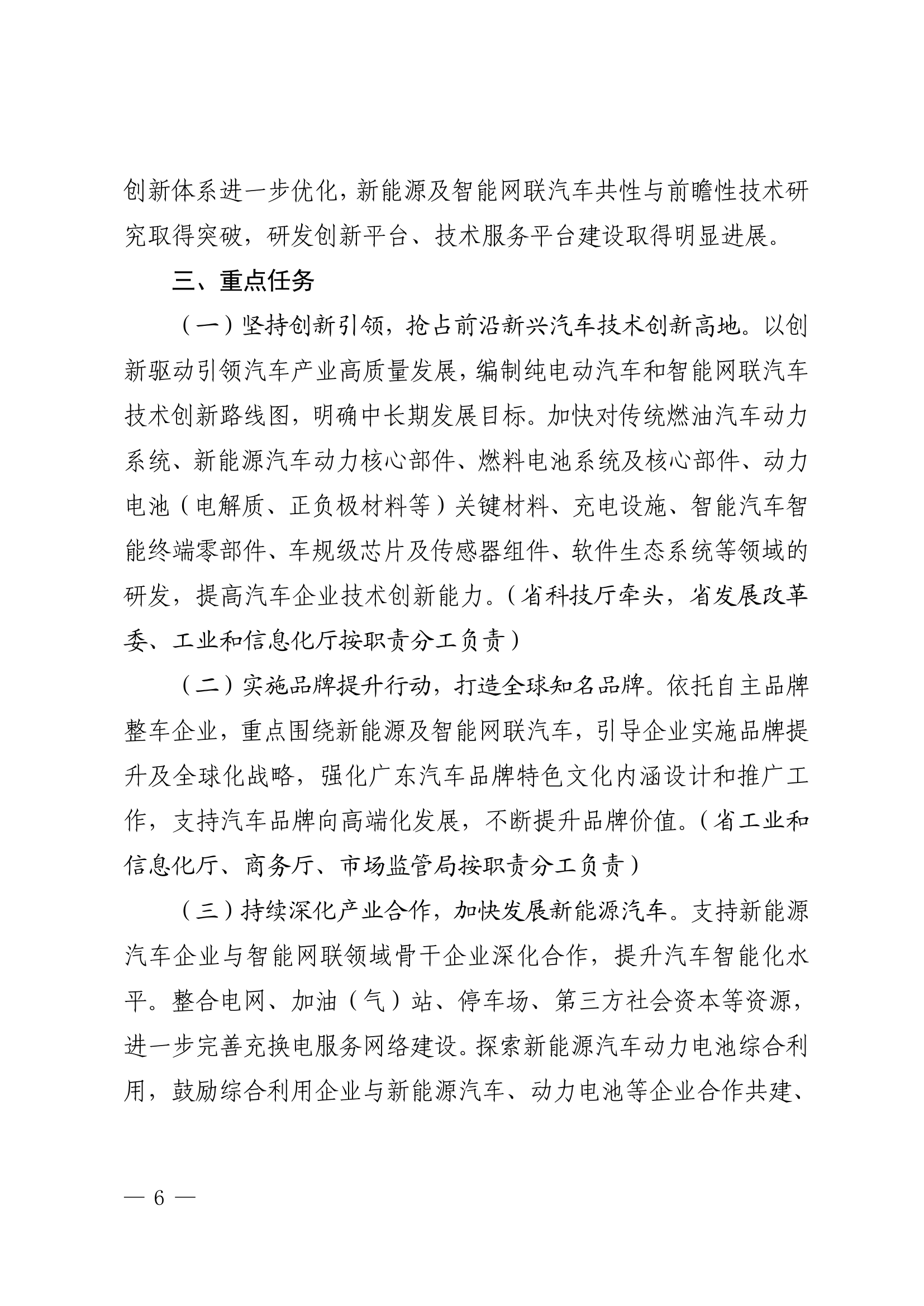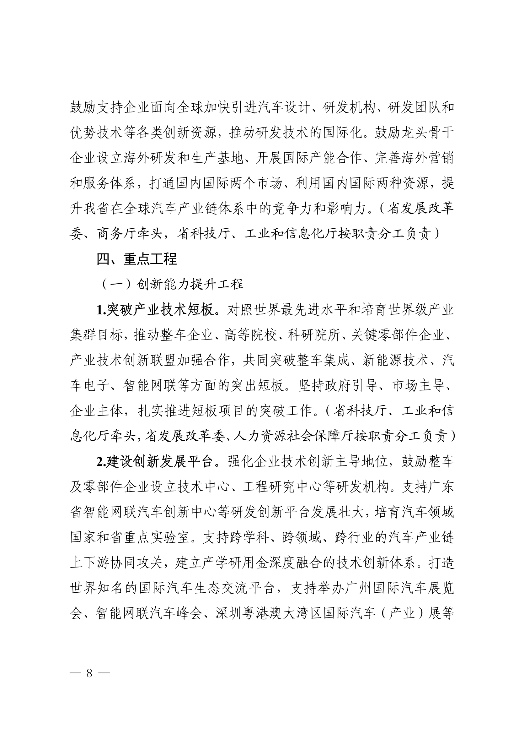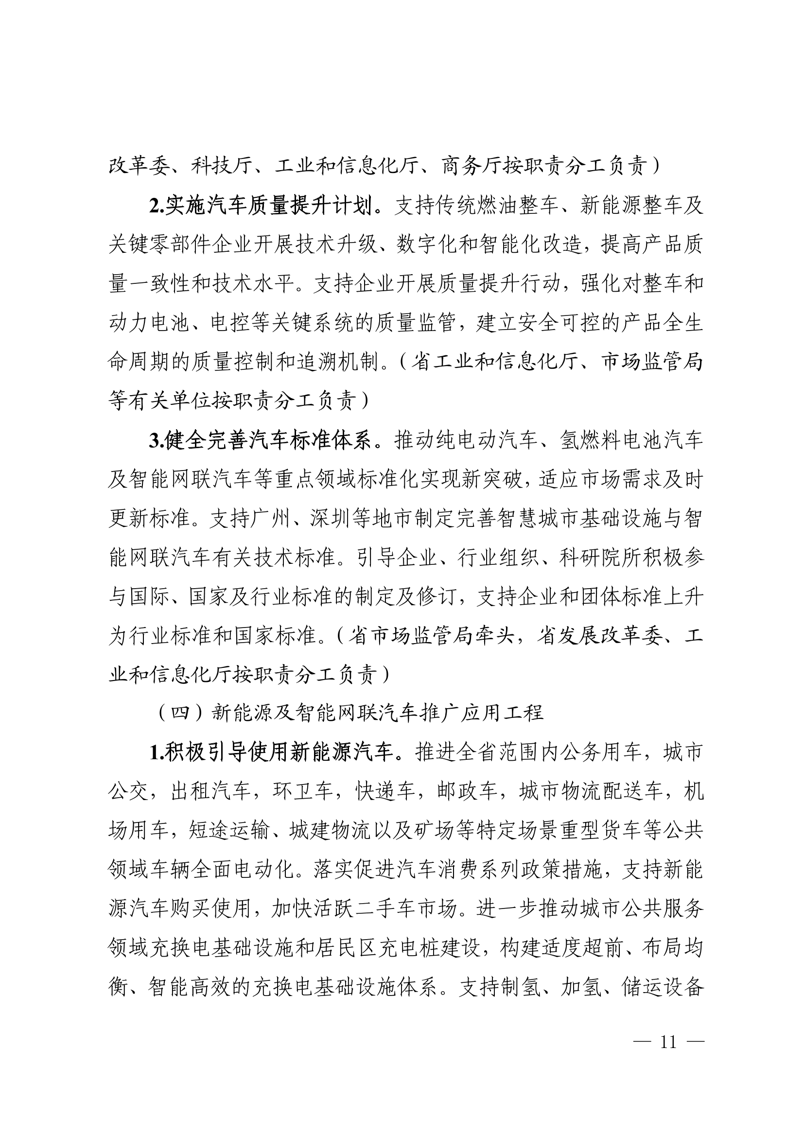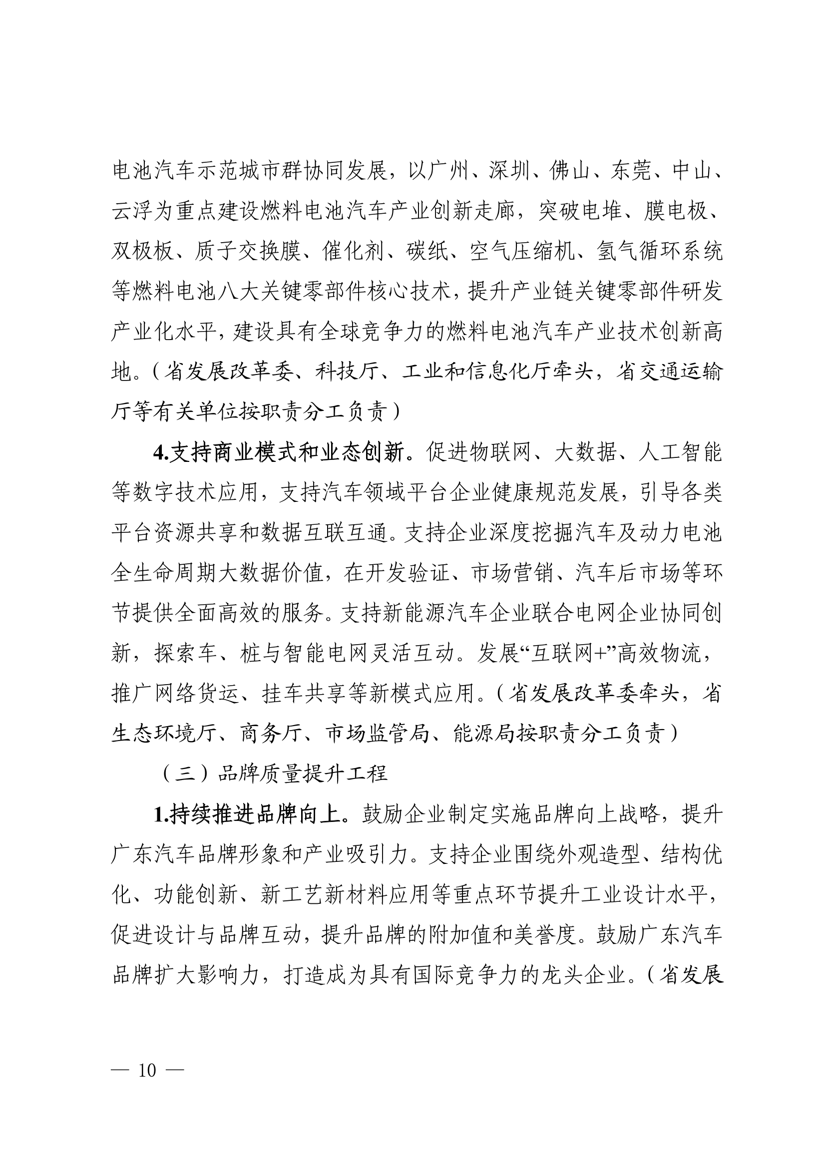 1月17日,廣東工信廳等印發(fā)《廣東省發(fā)展汽車戰(zhàn)略性支柱產(chǎn)業(yè)集群行動(dòng)計(jì)劃(2023—2025年)》,文件提出目標(biāo):到2025年,新能源汽車超過300萬輛,新能源汽車公用充電樁超過21萬個(gè)。 積極引導(dǎo)使用新能源汽車。落實(shí)促進(jìn)汽車消費(fèi)系列政策措施,支持新能源汽車購買使用,加快活躍二手車市場。進(jìn)一步推動(dòng)城市公共服務(wù)領(lǐng)域充換電基礎(chǔ)設(shè)施和居民區(qū)充電樁建設(shè),構(gòu)建適度超前、布局均衡、智能高效的充換電基礎(chǔ)設(shè)施體系。支持制氫、加氫、儲(chǔ)運(yùn)設(shè)備企業(yè)進(jìn)一步擴(kuò)大生產(chǎn)能力,形成氫能產(chǎn)供儲(chǔ)網(wǎng)絡(luò),合理布局加氫站,加快推動(dòng)加氫站建設(shè),支持加氫合建站和制氫加氫一體站建設(shè)。 積極推進(jìn)自動(dòng)駕駛示范應(yīng)用。支持廣州花都、南沙、增城,深圳坪山等規(guī)劃建設(shè)智能網(wǎng)聯(lián)汽車封閉測(cè)試場,加快推進(jìn)智能網(wǎng)聯(lián)汽車道路測(cè)試。支持廣州、深圳等地?cái)U(kuò)大自動(dòng)駕駛測(cè)試區(qū)域范圍,開放高快速路測(cè)試,鼓勵(lì)開展載人、載物、特種作業(yè)等商業(yè)化運(yùn)營活動(dòng),以豐富的應(yīng)用場景推動(dòng)提升自動(dòng)駕駛技術(shù)可靠性和適用性。支持廣州在南沙等地開展智能網(wǎng)聯(lián)汽車混行試點(diǎn)區(qū)及特殊運(yùn)營場景混行試點(diǎn)工作。 原文及解讀如下: 《廣東省發(fā)展汽車戰(zhàn)略性支柱產(chǎn)業(yè)集群行動(dòng)計(jì)劃(2023—2025年)》政策解讀 一、制定背景 為貫徹省委、省政府關(guān)于推進(jìn)制造強(qiáng)省建設(shè)的工作部署,2020年9月省工業(yè)和信息化廳會(huì)同省發(fā)展改革委、科技廳、商務(wù)廳、市場監(jiān)管局聯(lián)合印發(fā)了《廣東省發(fā)展汽車戰(zhàn)略性支柱產(chǎn)業(yè)集群行動(dòng)計(jì)劃(2021—2025年)》,加快發(fā)展汽車戰(zhàn)略性支柱產(chǎn)業(yè)集群,促進(jìn)產(chǎn)業(yè)邁向全球價(jià)值鏈高端。 2023年,按照省委、省政府關(guān)于堅(jiān)持制造業(yè)當(dāng)家、推進(jìn)新型工業(yè)化高質(zhì)量建設(shè)制造強(qiáng)省等工作要求,結(jié)合我省汽車產(chǎn)業(yè)集群發(fā)展情況,對(duì)《廣東省發(fā)展汽車戰(zhàn)略性支柱產(chǎn)業(yè)集群行動(dòng)計(jì)劃(2021—2025年)》相關(guān)內(nèi)容進(jìn)行了修訂,在充分征求各地級(jí)以上市政府、省有關(guān)部門等相關(guān)單位的意見基礎(chǔ)上,形成了《廣東省發(fā)展汽車戰(zhàn)略性支柱產(chǎn)業(yè)集群行動(dòng)計(jì)劃(2023—2025年)》(簡稱汽車產(chǎn)業(yè)集群行動(dòng)計(jì)劃),以便政策文件更好地適應(yīng)新形勢(shì)新要求,加快推進(jìn)汽車產(chǎn)業(yè)集群高質(zhì)量創(chuàng)新發(fā)展。 經(jīng)省政府同意,省工業(yè)和信息化廳聯(lián)合省發(fā)展改革委、科技廳、商務(wù)廳、市場監(jiān)管局于2023年12月印發(fā)實(shí)施汽車產(chǎn)業(yè)集群行動(dòng)計(jì)劃。 二、我省汽車產(chǎn)業(yè)集群發(fā)展總體情況 省委、省政府歷來高度重視汽車產(chǎn)業(yè)工作,將汽車產(chǎn)業(yè)作為我省十大戰(zhàn)略性支柱產(chǎn)業(yè)之一,完善政策措施,深化改革創(chuàng)新,加大要素供給,推動(dòng)汽車產(chǎn)業(yè)發(fā)展取得新成效。廣東是全國汽車生產(chǎn)第一大省,廣汽傳祺、比亞迪等自主品牌發(fā)展壯大,廣汽埃安、小鵬汽車等新能源造車企業(yè)逐步發(fā)展,形成了日系、歐系和自主品牌多元化汽車產(chǎn)業(yè)格局。2022年,廣東汽車產(chǎn)量達(dá)415.37萬輛,占全國汽車總產(chǎn)量15.12%,連續(xù)六年居全國第一,其中新能源汽車產(chǎn)量129.73萬輛,占全國產(chǎn)量17.97%。2022年全省汽車制造業(yè)實(shí)現(xiàn)工業(yè)增加值2442.27億元,營業(yè)收入11987.44億元,首次超萬億元,成為廣東第八個(gè)萬億級(jí)產(chǎn)業(yè)集群。 三、汽車產(chǎn)業(yè)集群行動(dòng)計(jì)劃的目標(biāo)任務(wù) 本行動(dòng)計(jì)劃界定的范圍包含“汽車制造業(yè)”中的“汽車整車制造(汽柴油車整車制造和新能源車整車制造)、汽車用發(fā)動(dòng)機(jī)制造、改裝汽車制造、低速汽車制造、電車制造、汽車車身及掛車制造、汽車零部件及配件制造”等1個(gè)大類7個(gè)中類8個(gè)小類。 (一)總體目標(biāo)。 一是汽車產(chǎn)業(yè)規(guī)模全國領(lǐng)先。到2025年,世界級(jí)汽車產(chǎn)業(yè)集群培育取得明顯進(jìn)展,全省汽車制造業(yè)營業(yè)收入超過1.35萬億元,汽車產(chǎn)量超過530萬輛,其中新能源汽車超過300萬輛。 二是汽車品牌影響力顯著提高。新增1-2家汽車整車企業(yè)進(jìn)入世界500強(qiáng)企業(yè)名單,培育3-4家獨(dú)角獸汽車企業(yè),形成2-3家產(chǎn)銷量突破100萬輛規(guī)模的整車企業(yè),自主品牌汽車出口及海外制造基地建設(shè)實(shí)現(xiàn)大發(fā)展。 三是產(chǎn)業(yè)鏈配套能力顯著提升。培育一批具有全球競爭力的關(guān)鍵配套企業(yè),培育3-5家超百億元的零部件企業(yè)集團(tuán)、2-3家汽車零部件獨(dú)角獸企業(yè)、100家以上省級(jí)“專精特新”汽車零部件企業(yè)。 四是創(chuàng)新平臺(tái)支撐能