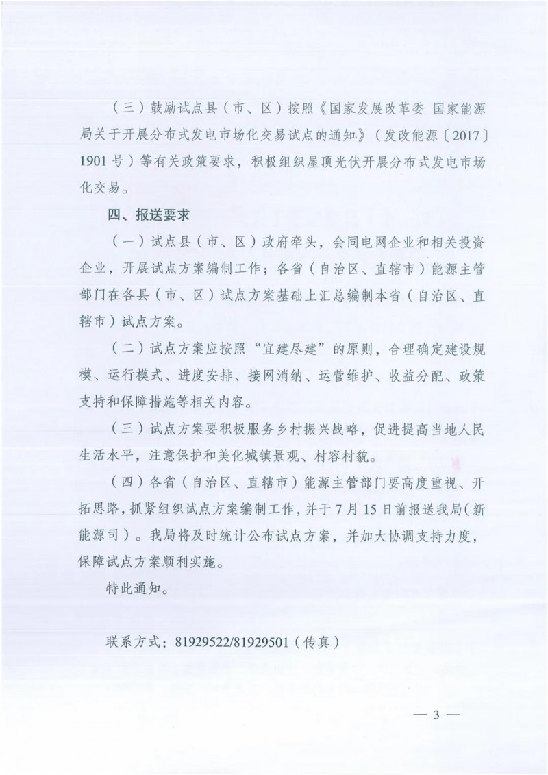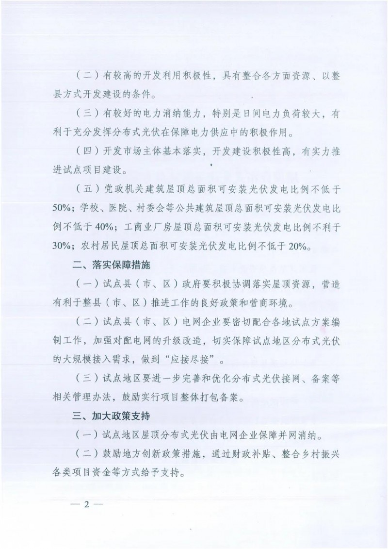 近日,國家能源局綜合司下發(fā)關于報送整縣(市、區(qū))屋頂分布式光伏開發(fā)試點方案的通知?!锻ㄖ分赋?,開展整縣(市、區(qū))屋頂分布式光伏建設,有利于整合資源實現(xiàn)集約開發(fā),有利于消減電力尖峰負荷,有利于節(jié)約優(yōu)化配電網(wǎng)投資,有利于引導居民綠色能源消費,是實現(xiàn)“碳達峰、碳中和”與鄉(xiāng)村振興兩大國家戰(zhàn)略的重要措施。 原文如下: