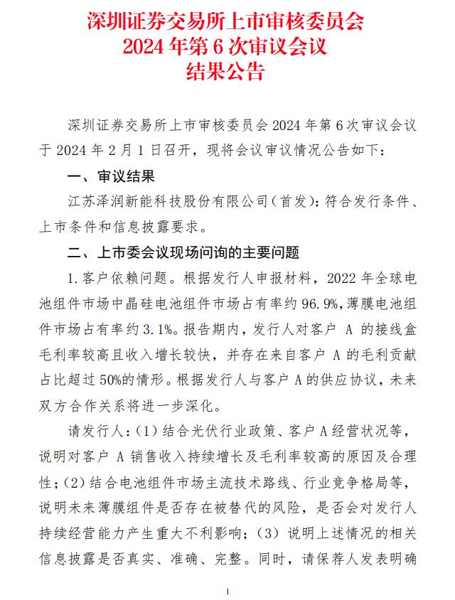 澤潤(rùn)新能IPO成功過會(huì)!2024-02-02 11:23來源:gessey瀏覽數(shù):184次