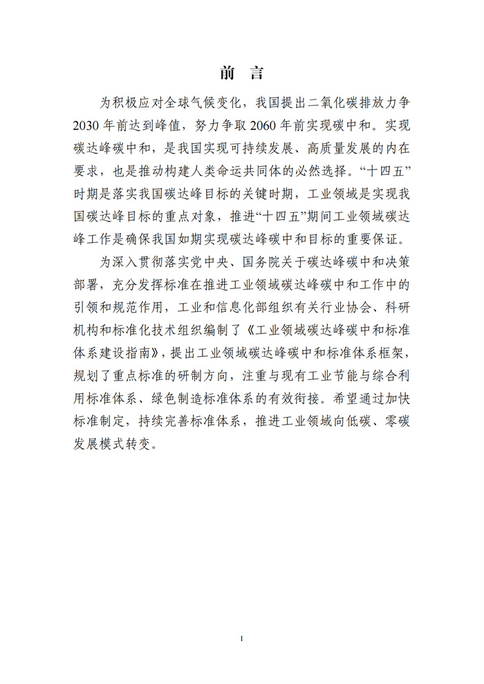2月21日,工業(yè)和信息化部辦公廳關(guān)于印發(fā)工業(yè)領(lǐng)域碳達(dá)峰碳中和標(biāo)準(zhǔn)體系建設(shè)指南的通知,通知指出,在可再生能源利用方面,重點(diǎn)制定太陽(yáng)能、風(fēng)能、光熱、地?zé)?、潮汐能、生物質(zhì)能等可再生能源開發(fā)、輸送、儲(chǔ)能、利用以及分布式應(yīng)用等相關(guān)技術(shù)和裝備標(biāo)準(zhǔn)。 原文如下: 工業(yè)和信息化部辦公廳關(guān)于印發(fā)工業(yè)領(lǐng)域碳達(dá)峰碳中和標(biāo)準(zhǔn)體系建設(shè)指南的通知 工信廳科〔2024〕7號(hào) 各省、自治區(qū)、直轄市工業(yè)和信息化主管部門,有關(guān)行業(yè)協(xié)會(huì)、標(biāo)準(zhǔn)化技術(shù)組織和專業(yè)機(jī)構(gòu): 為切實(shí)發(fā)揮標(biāo)準(zhǔn)對(duì)工業(yè)領(lǐng)域碳達(dá)峰碳中和的支撐和引領(lǐng)作用,工業(yè)和信息化部依據(jù)《新產(chǎn)業(yè)標(biāo)準(zhǔn)化領(lǐng)航工程實(shí)施方案(2023-2035年)》《工業(yè)領(lǐng)域碳達(dá)峰實(shí)施方案》《建立健全碳達(dá)峰碳中和標(biāo)準(zhǔn)計(jì)量體系實(shí)施方案》等,組織編制了《工業(yè)領(lǐng)域碳達(dá)峰碳中和標(biāo)準(zhǔn)體系建設(shè)指南》?,F(xiàn)印發(fā)給你們,請(qǐng)結(jié)合本地區(qū)、本行業(yè)、本領(lǐng)域?qū)嶋H,在標(biāo)準(zhǔn)化工作中貫徹執(zhí)行。 工業(yè)和信息化部辦公廳 2024年2月4日