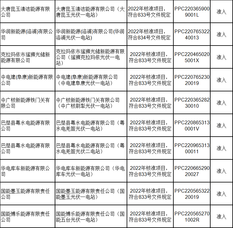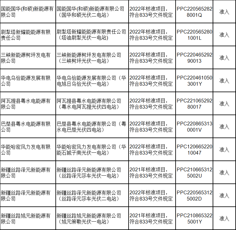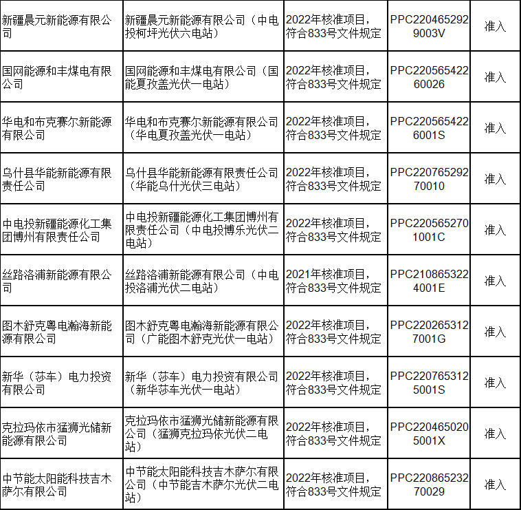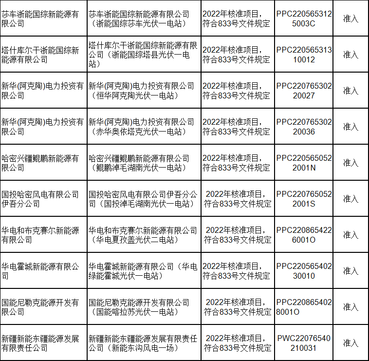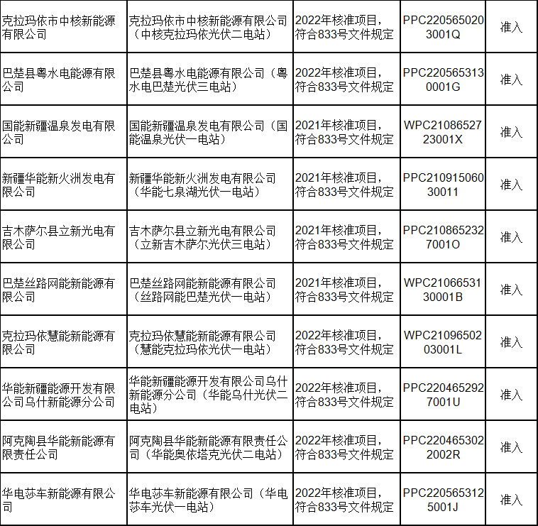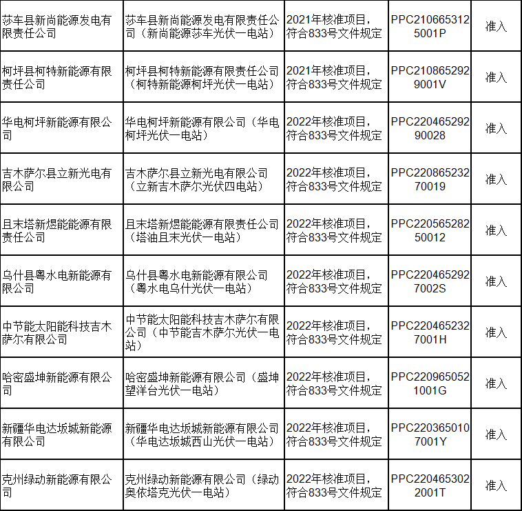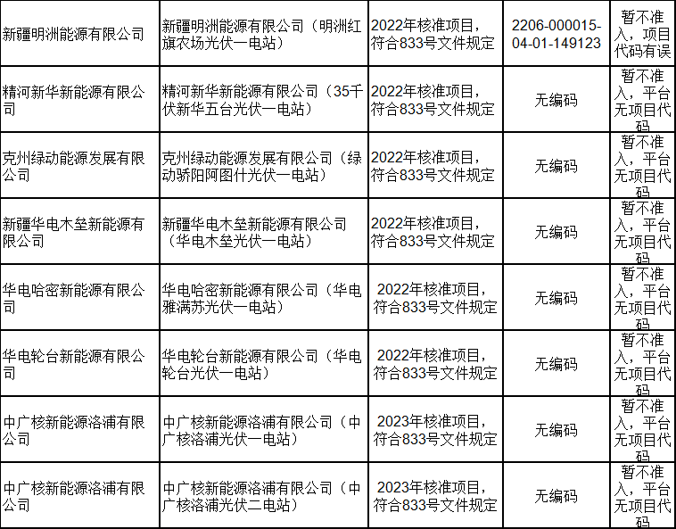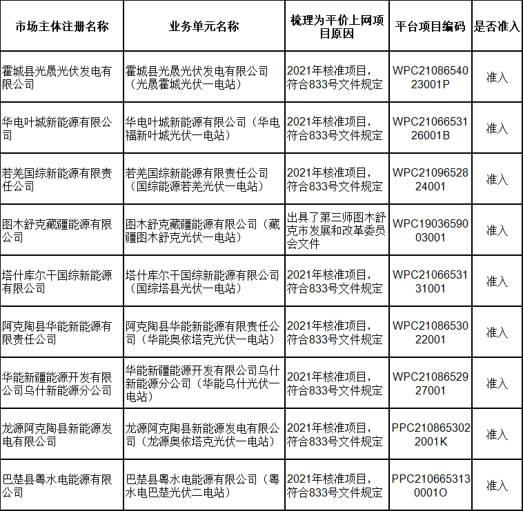 2月21日,新疆電力交易中心有限公司發(fā)布關(guān)于2024年2月綠電交易發(fā)電企業(yè)準(zhǔn)入名單的公告,共包含168家發(fā)電企業(yè),其中155家獲準(zhǔn)入,13家因平臺無項(xiàng)目代碼或項(xiàng)目代碼有誤暫不準(zhǔn)入。 經(jīng)統(tǒng)計(jì),獲得準(zhǔn)入的光伏企業(yè)有73家,項(xiàng)目類型均為平價(jià)上網(wǎng)項(xiàng)目;暫不準(zhǔn)入光伏企業(yè)8家,原因均為平臺無項(xiàng)目代碼。 光伏企業(yè)詳情如下: