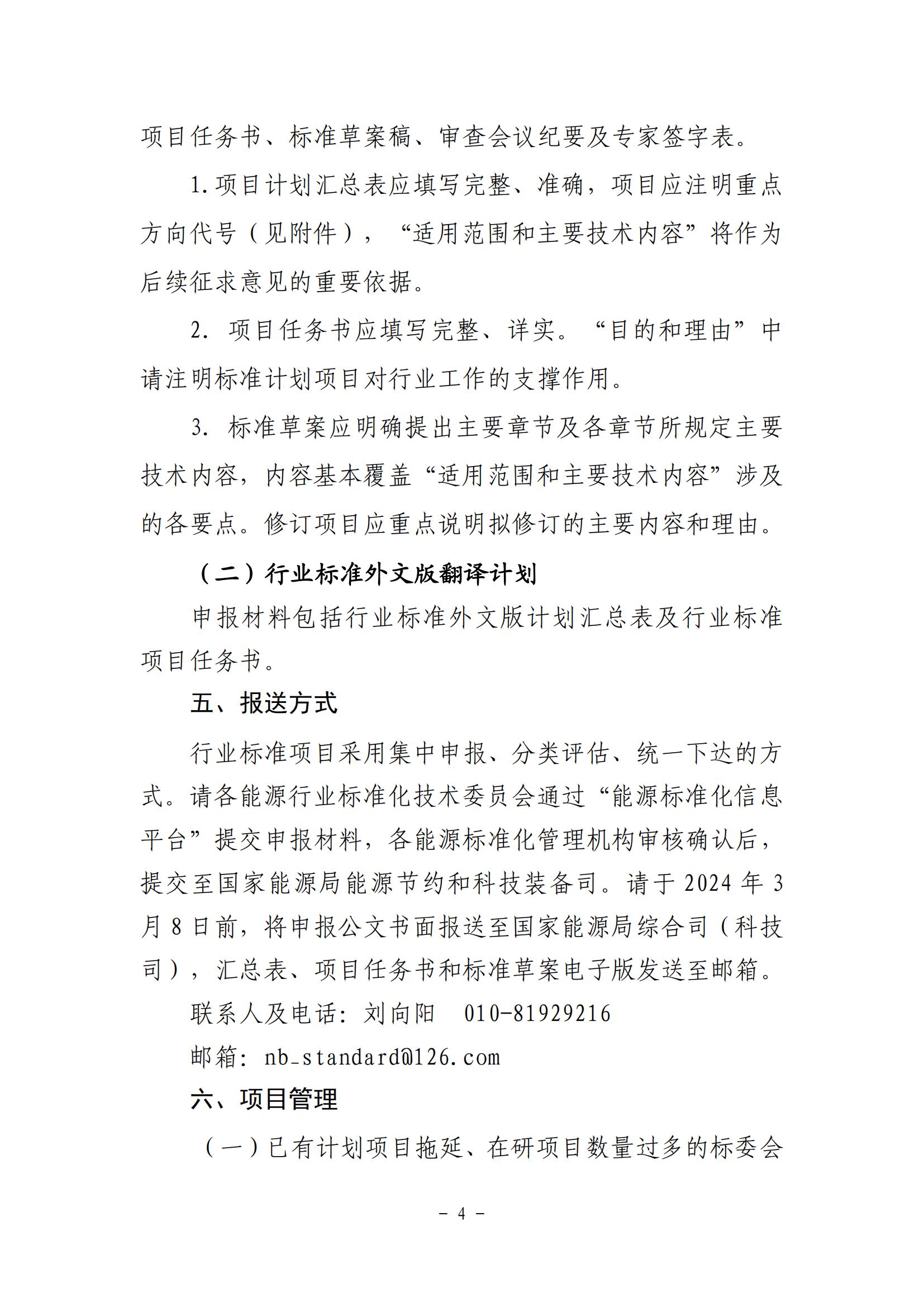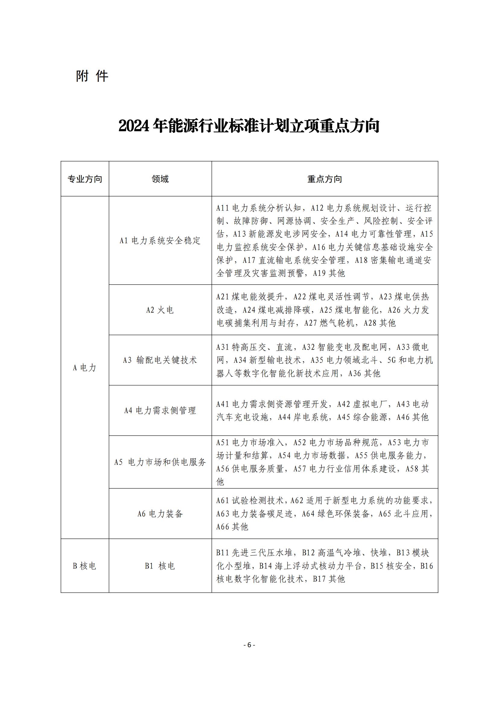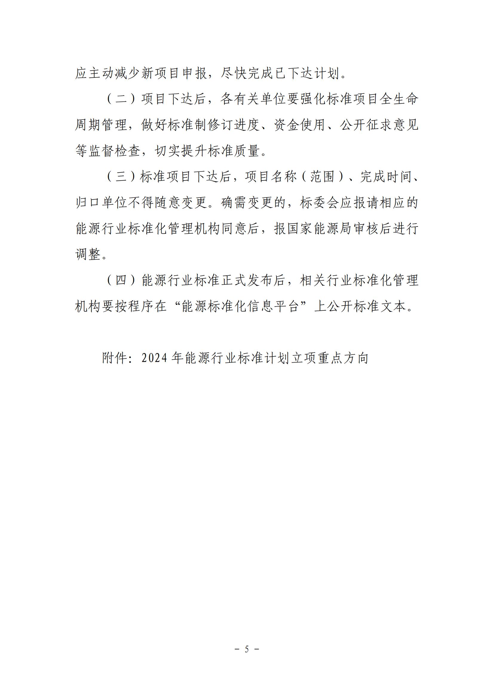 2月23日,國家能源局綜合司關(guān)于印發(fā)《2024年能源行業(yè)標(biāo)準(zhǔn)計劃立項指南》的通知。 根據(jù)通知,立項重點包括立足能源安全和促進能源綠色低碳轉(zhuǎn)型。服務(wù)和保障 能源安全穩(wěn)定供應(yīng),支撐能源碳達峰、碳中和目標(biāo)的行業(yè)標(biāo) 準(zhǔn)計劃;支撐新型電力系統(tǒng)和新型能源體系建設(shè),促進能源 綠色低碳轉(zhuǎn)型、新興技術(shù)產(chǎn)業(yè)發(fā)展、能效提升和產(chǎn)業(yè)鏈碳減 排等重點方向的行業(yè)標(biāo)準(zhǔn)計劃。 申報要求 (一)對沒有推薦性國家標(biāo)準(zhǔn)而又需要在能源行業(yè)范圍 內(nèi)統(tǒng)一的技術(shù)要求,提出能源行業(yè)標(biāo)準(zhǔn)計劃。屬于競爭性的、 一般性的技術(shù)要求,原則上不作為能源行業(yè)標(biāo)準(zhǔn)計劃。 (二)應(yīng)按照現(xiàn)有標(biāo)準(zhǔn)管理分工機制和專業(yè)領(lǐng)域,經(jīng)過 充分調(diào)研、技術(shù)論證和初步篩選后確定申報計劃。 (三)申報計劃應(yīng)保證與現(xiàn)有標(biāo)準(zhǔn)體系協(xié)調(diào)一致。存在 技術(shù)交叉的領(lǐng)域,申報單位應(yīng)在計劃上報前與技術(shù)相關(guān)方充 分溝通協(xié)商,避免交叉重復(fù)立項。 (四)主要起草單位應(yīng)做好標(biāo)準(zhǔn)編制前期準(zhǔn)備工作,確 保兩年內(nèi)完成報批。 (五)行業(yè)標(biāo)準(zhǔn)外文版翻譯計劃應(yīng)與相關(guān)國際標(biāo)準(zhǔn)進行 比對研究,技術(shù)要求不低于國際標(biāo)準(zhǔn)。 全文見下: