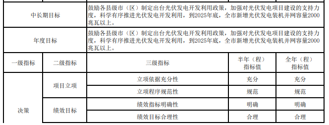 日前,蘇州市發(fā)展和改革委員會公布2024年度項目預(yù)算績效目標(biāo)表,其中包含光伏發(fā)電開發(fā)利用財政補助。 根據(jù)績效目標(biāo)表,蘇州將對設(shè)立光伏發(fā)電補貼財政專項資金并落實補貼的縣級市(區(qū)),市級財政于次年給予補助,補助期為2023年至2026年。對納入整縣(市、區(qū))屋頂分布式光伏開發(fā)試點的常熟市 、吳江區(qū)、吳中區(qū)、相城區(qū)按照30%進行補助,對其他縣級市(區(qū))按照 15%進行補助。 實施內(nèi)容為:根據(jù)《市政府辦公室印發(fā)關(guān)于加快推進全市光伏發(fā)電開發(fā)利用的工作意見(試行)的通知》(蘇府辦〔2022〕68號)要求,鼓勵各縣級市(區(qū))制定出臺光伏發(fā)電開發(fā)利用政策,加強對光伏發(fā)電項目建設(shè)的支持力度。對設(shè)立光伏發(fā)電補貼財政專項資金并落實補貼的縣級市(區(qū)),市級財政于次年給予補助,補助期為2023年至2026年。 年度目標(biāo)為:鼓勵各縣級市(區(qū))制定出臺光伏發(fā)電開發(fā)利用政策,加強對光伏發(fā)電項目建設(shè)的支持力度,科學(xué)有序推進光伏發(fā)電開發(fā)利用,到2025年底,全市新增光伏發(fā)電裝機并網(wǎng)容量2000兆瓦以上。