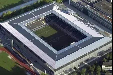 范可多夫球場(chǎng) 范可多夫球場(chǎng)又譯為瑞士首都球場(chǎng),坐落在瑞士首都伯爾尼。2007 年完成了太陽能發(fā)電設(shè)備的安裝,共裝配了 7930 套太陽能組件,總裝機(jī)量達(dá) 1.3 MW,每年可以產(chǎn)生 1 兆千瓦時(shí)的電能。