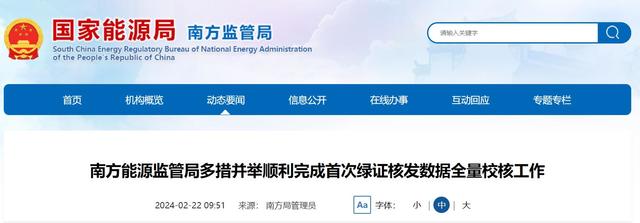 南方能源監(jiān)管局完成首次綠證核發(fā)數(shù)據(jù)全量校核工作2024-02-26 12:13來源:gessey瀏覽數(shù):224次