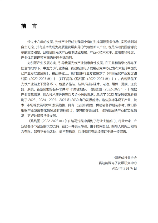 重磅!《中國(guó)光伏產(chǎn)業(yè)發(fā)展路線圖(2023-2024年)》發(fā)布