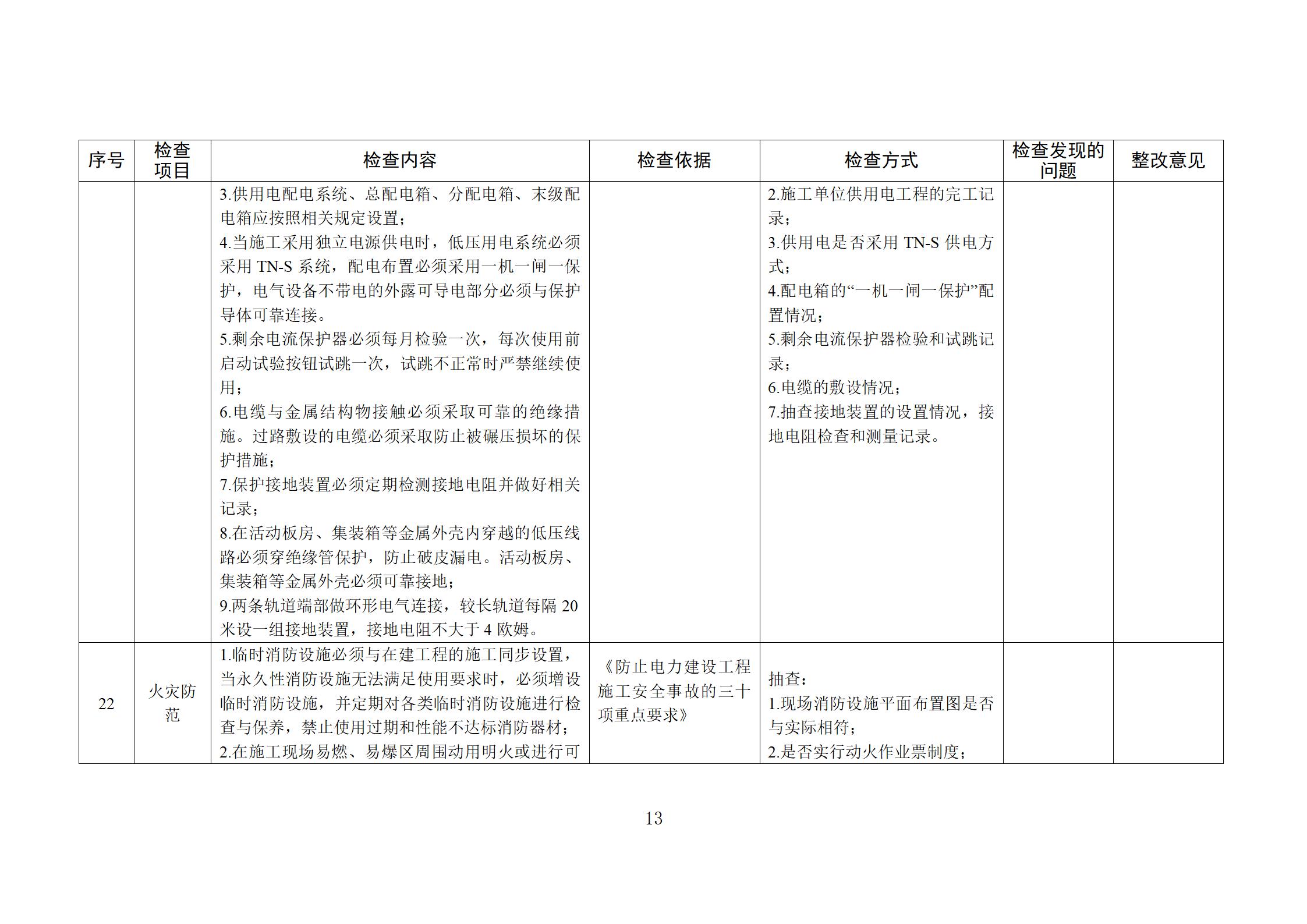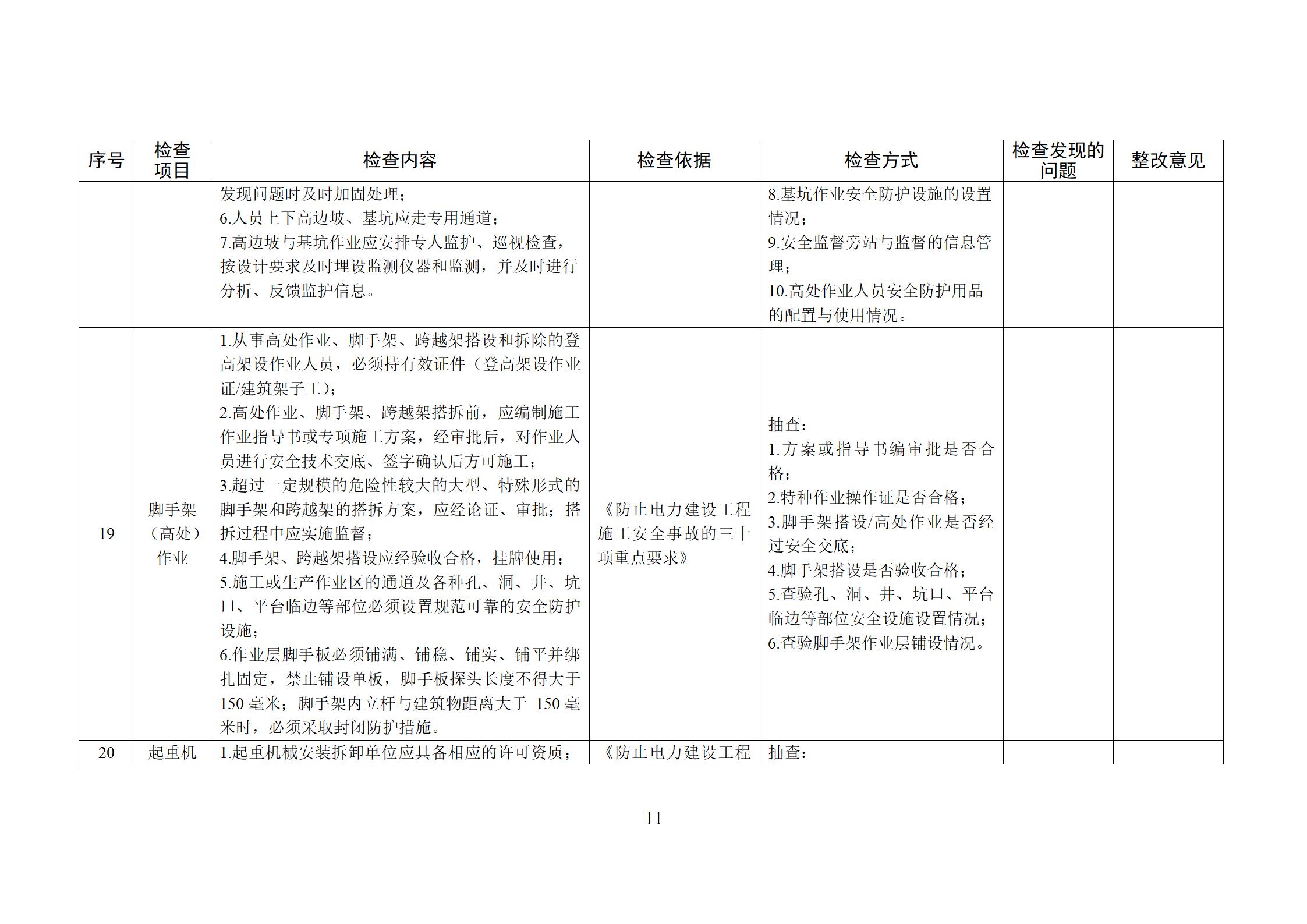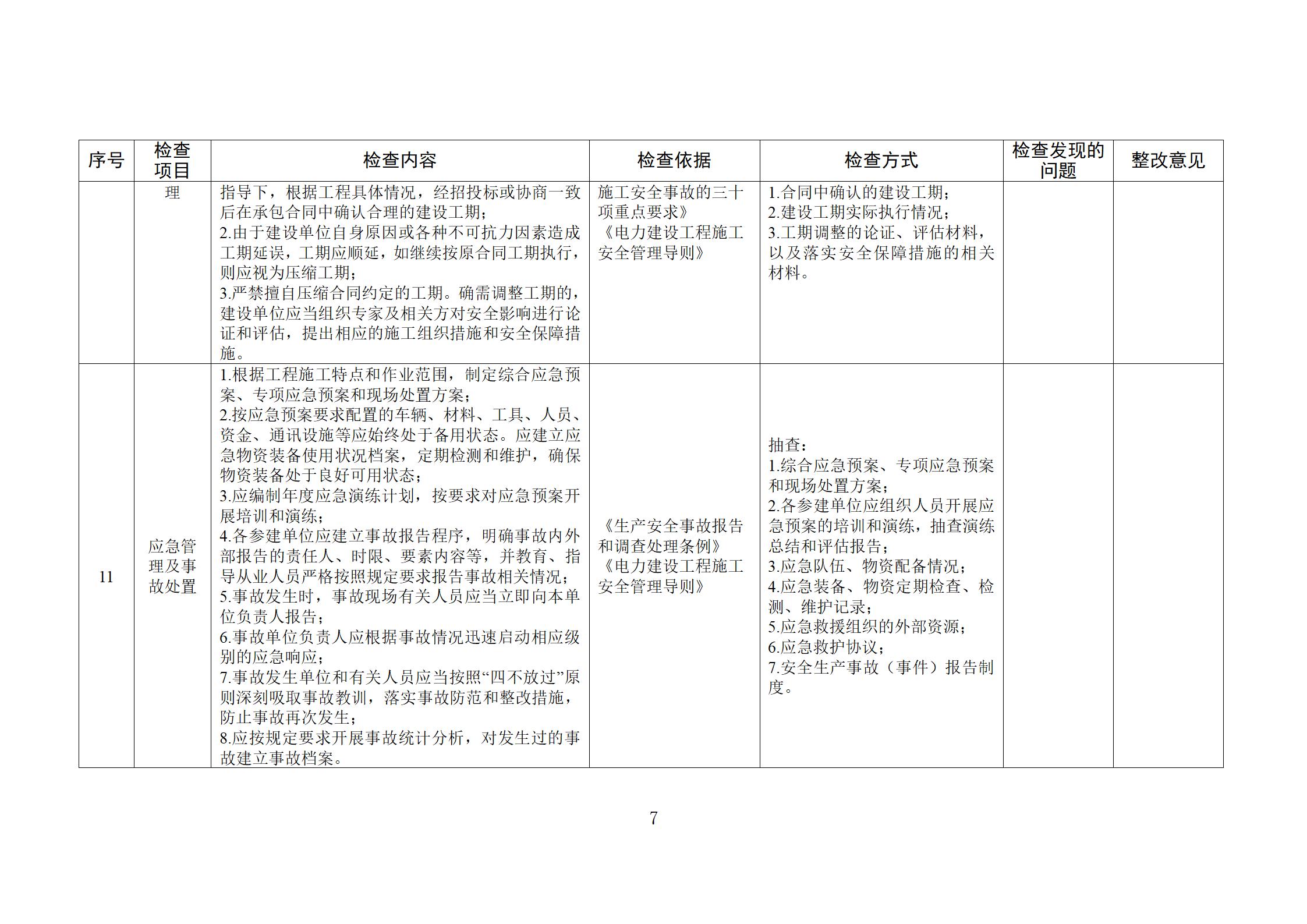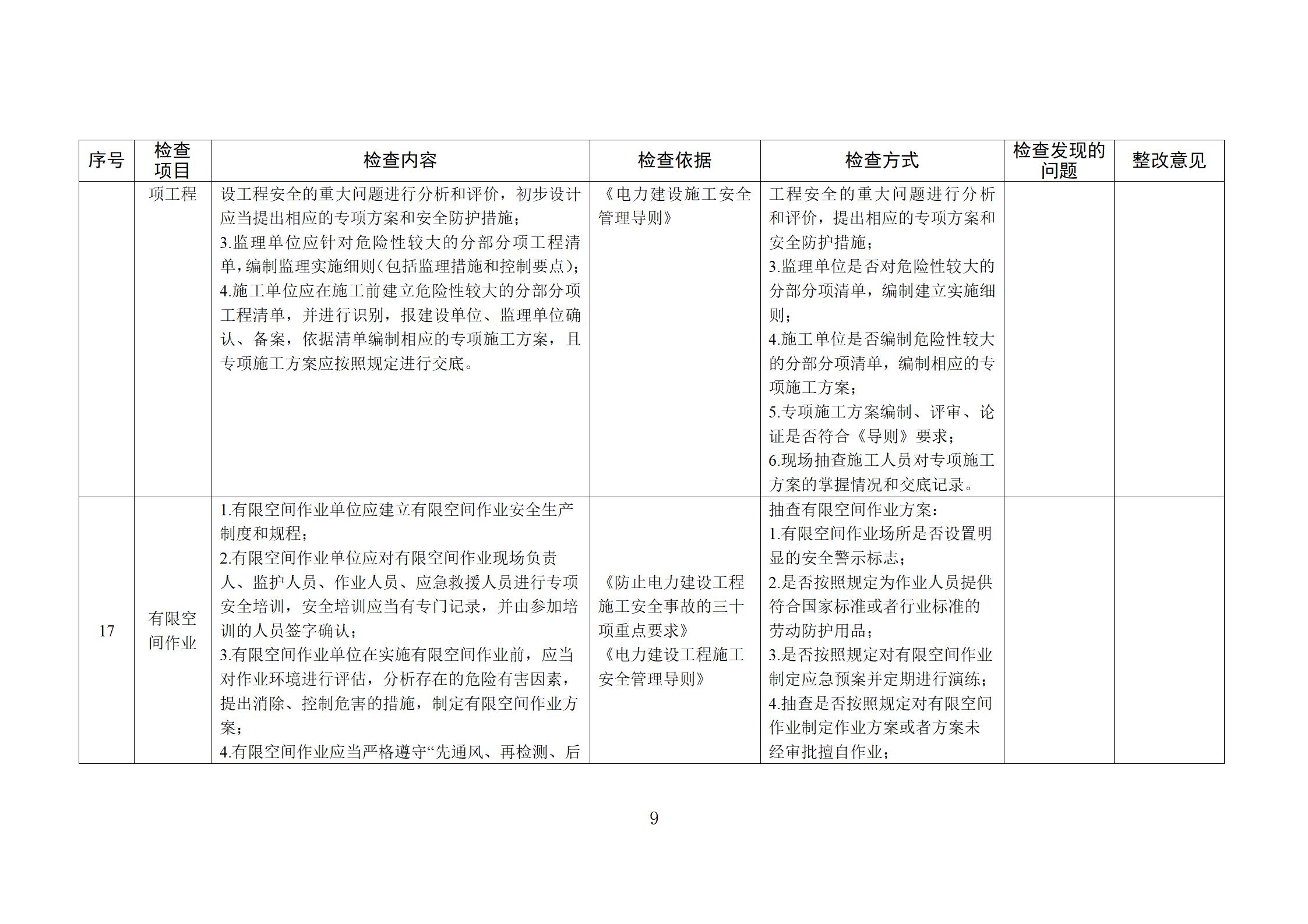 日前,國(guó)家能源局關(guān)于開(kāi)展2024年度電力建設(shè)施工安全和工程質(zhì)量專(zhuān)項(xiàng)監(jiān)管的通知。 根據(jù)通知,重點(diǎn)任務(wù)為全國(guó)電力建設(shè)工程各參建單位要嚴(yán)格落實(shí)安全生產(chǎn)主體責(zé)任,建設(shè)單位要落實(shí)首要責(zé)任,深刻汲取近年來(lái)電力行業(yè)事故事件教訓(xùn),在勘察設(shè)計(jì)、建設(shè)施工、安裝調(diào)試、竣工驗(yàn)收、工程監(jiān)理等階段環(huán)節(jié),深入排查整治各類(lèi)安全風(fēng)險(xiǎn)隱患和管理漏洞短板,重點(diǎn)對(duì)照《2024年度電力建設(shè)施工安全和工程質(zhì)量專(zhuān)項(xiàng)監(jiān)管檢查事項(xiàng)清單》(見(jiàn)附件1)明確的30個(gè)檢查項(xiàng)目、145項(xiàng)檢查內(nèi)容開(kāi)展排查整治,切實(shí)保障施工安全和工程質(zhì)量。 全文見(jiàn)下: 國(guó)家能源局關(guān)于開(kāi)展2024年度電力建設(shè)施工安全和工程質(zhì)量專(zhuān)項(xiàng)監(jiān)管的通知 國(guó)能發(fā)安全〔2024〕16號(hào) 各省(自治區(qū)、直轄市)能源局,有關(guān)省(自治區(qū)、直轄市)及新疆生產(chǎn)建設(shè)兵團(tuán)發(fā)展改革委、工業(yè)和信息化主管部門(mén),北京市城市管理委,各派出機(jī)構(gòu),可靠性和質(zhì)監(jiān)中心,各電力建設(shè)工程質(zhì)量監(jiān)督機(jī)構(gòu),中國(guó)電力建設(shè)企業(yè)協(xié)會(huì),全國(guó)電力安委會(huì)各企業(yè)成員單位: 近年來(lái),全國(guó)電力建設(shè)工程數(shù)量多、規(guī)模大、分布廣、種類(lèi)雜,安全風(fēng)險(xiǎn)長(zhǎng)期居高不下,當(dāng)前已出現(xiàn)事故反彈回潮苗頭,安全生產(chǎn)形勢(shì)較為嚴(yán)峻。為深入學(xué)習(xí)貫徹習(xí)近平總書(shū)記關(guān)于安全生產(chǎn)重要指示批示精神,認(rèn)真落實(shí)國(guó)務(wù)院安委會(huì)安全生產(chǎn)十五條硬措施及治本攻堅(jiān)三年行動(dòng)統(tǒng)一部署,加強(qiáng)電力建設(shè)工程安全監(jiān)督管理,推動(dòng)電力安全生產(chǎn)形勢(shì)穩(wěn)定向好,國(guó)家能源局決定在全國(guó)范圍內(nèi)組織開(kāi)展電力建設(shè)施工安全和工程質(zhì)量專(zhuān)項(xiàng)監(jiān)管工作,現(xiàn)就有關(guān)要求通知如下。 一、總體目標(biāo) 通過(guò)開(kāi)展專(zhuān)項(xiàng)監(jiān)管工作,電力行業(yè)各有關(guān)單位進(jìn)一步樹(shù)牢安全發(fā)展理念,進(jìn)一步增強(qiáng)“時(shí)時(shí)放心不下”的責(zé)任感,進(jìn)一步加強(qiáng)電力建設(shè)工程安全監(jiān)督管理,管控一批安全風(fēng)險(xiǎn),消除一批事故隱患,堵塞一批管理漏洞,提升電力建設(shè)工程本質(zhì)安全水平,防范遏制各類(lèi)事故發(fā)生,守住不發(fā)生重特大事故的底線(xiàn)。 二、專(zhuān)項(xiàng)監(jiān)管時(shí)間 自本通知印發(fā)之日至2024年12月。 三、重點(diǎn)任務(wù) 全國(guó)電力建設(shè)工程各參建單位要嚴(yán)格落實(shí)安全生產(chǎn)主體責(zé)任,建設(shè)單位要落實(shí)首要責(zé)任,深刻汲取近年來(lái)電力行業(yè)事故事件教訓(xùn),在勘察設(shè)計(jì)、建設(shè)施工、安裝調(diào)試、竣工驗(yàn)收、工程監(jiān)理等階段環(huán)節(jié),深入排查整治各類(lèi)安全風(fēng)險(xiǎn)隱患和管理漏洞短板,重點(diǎn)對(duì)照《2024年度電力建設(shè)施工安全和工程質(zhì)量專(zhuān)項(xiàng)監(jiān)管檢查事項(xiàng)清單》(見(jiàn)附件1)明確的30個(gè)檢查項(xiàng)目、145項(xiàng)檢查內(nèi)容開(kāi)展排查整治,切實(shí)保障施工安全和工程質(zhì)量。 四、進(jìn)度安排 (一)集中自查自糾階段(3—4月) 各電力企業(yè)要建立并嚴(yán)格落實(shí)電力建設(shè)施工安全和工程質(zhì)量常態(tài)化巡查檢查工作機(jī)制,對(duì)發(fā)現(xiàn)的問(wèn)題要建立清單,并立行立改;問(wèn)題復(fù)雜而不能立即整改的,要及時(shí)制定整改計(jì)劃,明確整改目標(biāo),分解責(zé)任到崗到人,積極推進(jìn)整改,確保問(wèn)題閉環(huán)管理。2024年3—4月,各電力企業(yè)要結(jié)合春季安全生產(chǎn)大檢查、春節(jié)后開(kāi)復(fù)工安全評(píng)估檢查等工作安排,集中開(kāi)展一次施工安全和工程質(zhì)量自查自糾行動(dòng),并于4月底前將自查自糾問(wèn)題清單及整改情況報(bào)送當(dāng)?shù)厥〖?jí)電力管理部門(mén)和派出機(jī)構(gòu)。 (二)重點(diǎn)督查督導(dǎo)階段(3—11月) 各省級(jí)電力管理部門(mén)、各派出機(jī)構(gòu)要跟蹤分析研判轄區(qū)內(nèi)電力建設(shè)工程安全形勢(shì),會(huì)同相關(guān)專(zhuān)業(yè)支撐機(jī)構(gòu),選擇安全生產(chǎn)工作態(tài)度不端正、專(zhuān)項(xiàng)監(jiān)管推進(jìn)不扎實(shí)、風(fēng)險(xiǎn)隱患整治不到位的電力建設(shè)工程和相關(guān)企業(yè)開(kāi)展督查,其中要對(duì)2023年發(fā)生過(guò)事故現(xiàn)仍在建的工程和2024年發(fā)生事故的工程實(shí)現(xiàn)督查全覆蓋。國(guó)家能源局電力安全監(jiān)管司將會(huì)同可靠性和質(zhì)監(jiān)中心、相關(guān)專(zhuān)業(yè)支撐機(jī)構(gòu)及行業(yè)協(xié)會(huì),對(duì)電力建設(shè)任務(wù)繁重、重大風(fēng)險(xiǎn)隱患突出、事故多發(fā)頻發(fā)的地方和企業(yè)開(kāi)