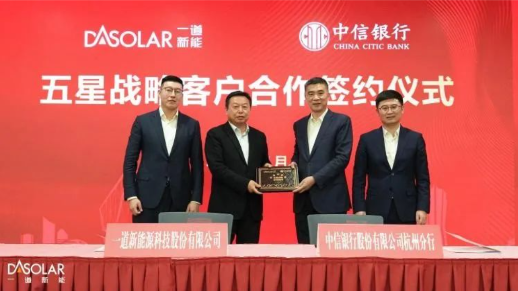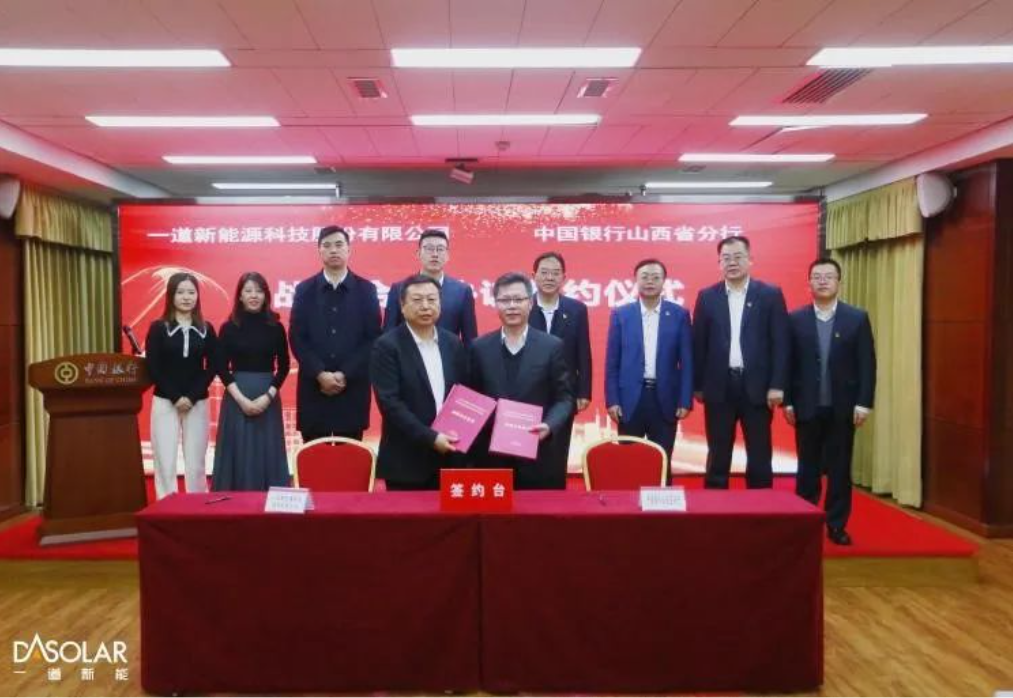 近日,一道新能分別與中國銀行股份有限公司山西省分行、中信銀行股份有限公司杭州分行簽署《金融服務(wù)戰(zhàn)略合作協(xié)議》。中國銀行山西省分行黨委書記、行長臧新軍先生,黨委委員、副行長劉溟先生;中信銀行杭州分行黨委書記、行長單國民先生,黨委委員、副行長許峰先生,黨委委員、副行長李江東先生;一道新能董事長、總裁劉勇先生,首席財(cái)務(wù)官兼董事會秘書符亞瑋先生等領(lǐng)導(dǎo)出席現(xiàn)場簽約儀式。 一道新能與中國銀行山西省分行、中信銀行杭州分行將本著長期合作和共同發(fā)展的原則,充分發(fā)揮各自在金融、光伏領(lǐng)域的資源優(yōu)勢,強(qiáng)強(qiáng)聯(lián)手,建立全面、長期和穩(wěn)定的戰(zhàn)略合作伙伴關(guān)系。雙方明確將在創(chuàng)新融資、資產(chǎn)管理等領(lǐng)域的開展創(chuàng)新合作模式,為一道新能的長期穩(wěn)定發(fā)展開拓了新局面,提供了新思路。 光伏+金融 構(gòu)建綠能新生態(tài) 一道新能在忻州建設(shè)的年產(chǎn)14GW高效光伏電池生產(chǎn)基地項(xiàng)目,是山西省招商引資的重點(diǎn)項(xiàng)目,此次與中國銀行山西省分行合作將為一道新能在山西忻州的項(xiàng)目建設(shè)“插上”騰飛之翼。中國銀行山西省分行黨委書記、行長臧新軍表示,此次與一道新能簽署戰(zhàn)略合作協(xié)議,是雙方落實(shí)中央金融工作會議精神的生動實(shí)踐,也是推動我國實(shí)現(xiàn)科技強(qiáng)國、產(chǎn)業(yè)興國的重要落地舉措。 中信銀行是中信集團(tuán)下屬的國有控股上市銀行,中信銀行杭州分行作為首批進(jìn)駐浙江省的股份制銀行省級分行,近年來一直積極踐行國家“雙碳”戰(zhàn)略,不斷構(gòu)建綠色金融服務(wù)體系。在本次合作中,中信銀行杭州分行將為一道新能量身定制綜合金融服務(wù)方案,提供“一攬子”、“一站式”的綜合化金融服務(wù),進(jìn)一步深化雙方互利合作,共同推動清潔能源的發(fā)展應(yīng)用。 創(chuàng)新合作 譜寫綠能新篇章 一道新能將以此次戰(zhàn)略合作為契機(jī),在科技金融等領(lǐng)域不斷探索更加深入的合作模式,積極構(gòu)建科技發(fā)展金融、金融反哺科技的新生態(tài)。通過將一道新能的科技資源與金融資本有效對接,將加速推動一道新能科技創(chuàng)新成果轉(zhuǎn)化為現(xiàn)實(shí)生產(chǎn)力,助力國家綠色能源發(fā)展,為經(jīng)濟(jì)高質(zhì)量發(fā)展貢獻(xiàn)力量。 接連與多家大型國有銀行達(dá)成戰(zhàn)略合作,彰顯了一道新能在行業(yè)中的實(shí)力與地位,體現(xiàn)出大型金融機(jī)構(gòu)對一道新能穩(wěn)健經(jīng)營的認(rèn)可和長期發(fā)展的看好與信心,為公司高質(zhì)量和可持續(xù)發(fā)展提供了有力的支持。未來,一道新能將攜手金融機(jī)構(gòu)深入探索“光伏技術(shù)+綠色金融”的創(chuàng)新融合發(fā)展新模式,以實(shí)現(xiàn)全球綠色能源轉(zhuǎn)型升級為己任,助力我國“雙碳”目標(biāo)的早日達(dá)成。 會議預(yù)告 2024 第二屆浙江光儲產(chǎn)業(yè)發(fā)展大會 3月22日-23日 浙江杭州 主辦單位:浙江省太陽能光伏行業(yè)協(xié)會 國能能源研究院 會議內(nèi)容:聚焦“光伏、儲能”產(chǎn)業(yè)高質(zhì)量發(fā)展,探討光儲大基地、工商業(yè)光伏、工商業(yè)儲能、戶用光伏等應(yīng)用模式,共同分享發(fā)展成果和思路,以及技術(shù)路徑、示范項(xiàng)目、產(chǎn)業(yè)未來等趨向性話題。 參會嘉賓:邀請國家主管部委,科研機(jī)構(gòu),行業(yè)機(jī)構(gòu),省經(jīng)信委、省能源局及其部分市縣級主管部門的領(lǐng)導(dǎo),五大六小電力集團(tuán)、能源央國企等電源電源企業(yè),金融機(jī)構(gòu)、設(shè)計(jì)院、EPC、光儲產(chǎn)業(yè)鏈企業(yè)的管理者和代表,省協(xié)會會員,主流媒體等。