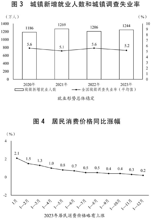 2023年經(jīng)濟社會發(fā)展主要預(yù)期目標(biāo)圓滿完成,經(jīng)濟發(fā)展、社會民生等預(yù)期目標(biāo)完成情況較好;創(chuàng)新驅(qū)動發(fā)展成效明顯,研發(fā)經(jīng)費投入強度、數(shù)字經(jīng)濟核心產(chǎn)業(yè)增加值占比持續(xù)提高;綠色低碳轉(zhuǎn)型深入推進,非化石能源占比穩(wěn)中有升,主要污染物排放量繼續(xù)下降;民生福祉不斷增進,城鎮(zhèn)新增就業(yè)超額完成任務(wù),居民收入增長快于經(jīng)濟增長,基本公共服務(wù)進一步加強;糧食安全保障有力,原油、天然氣產(chǎn)量持續(xù)增長。受出口增速回落、房地產(chǎn)銷售和投資收縮、部分行業(yè)產(chǎn)能過剩等影響,一些行業(yè)生產(chǎn)恢復(fù)不及預(yù)期,工業(yè)增長與預(yù)期目標(biāo)有一定差距。工業(yè)和民用領(lǐng)域能源消費增長較快,導(dǎo)致能耗強度下降和碳強度下降不及預(yù)期。 過去一年,國際環(huán)境變亂交織,地緣政治沖突加劇,外部變化對我不利影響持續(xù)加大;國內(nèi)周期性和結(jié)構(gòu)性矛盾疊加,多地遭受洪澇等嚴(yán)重自然災(zāi)害,經(jīng)濟工作的復(fù)雜性挑戰(zhàn)性多年少有。面對異常復(fù)雜的國際環(huán)境和艱巨繁重的國內(nèi)改革發(fā)展穩(wěn)定任務(wù),我國經(jīng)濟社會發(fā)展取得上述成績來之不易。這是以習(xí)近平同志為核心的黨中央運籌帷幄、堅強領(lǐng)導(dǎo)的結(jié)果,是習(xí)近平新時代中國特色社會主義思想凝心鑄魂、科學(xué)指引的結(jié)果,是各地區(qū)各部門勇于擔(dān)當(dāng)、實干篤行的結(jié)果,是全黨全國各族人民團結(jié)一致、不懈奮斗的結(jié)果。在此過程中,全國人大實行正確監(jiān)督、有效監(jiān)督、依法監(jiān)督,全國人大代表依法參加行使國家權(quán)力,對經(jīng)濟社會發(fā)展工作提出很多很好的意見建議;全國政協(xié)加強政治協(xié)商、民主監(jiān)督、參政議政,全國政協(xié)委員積極建言獻策,在推動落實黨中央重大決策部署上發(fā)揮了重要作用。 同時也要看到,世界百年變局加速演進,世界經(jīng)濟增長仍未恢復(fù)至疫情前水平,全球貿(mào)易投資增長乏力,風(fēng)險點和動蕩源顯著增多,外部環(huán)境復(fù)雜性、嚴(yán)峻性、不確定性明顯上升。經(jīng)歷三年新冠疫情沖擊,國內(nèi)經(jīng)濟恢復(fù)發(fā)展本身有不少難題,長期積累的深層次矛盾加速顯現(xiàn),很多新情況新問題接踵而至,包括有效需求仍然不足,居民擴大消費能力不足、意愿不強,房地產(chǎn)投資持續(xù)承壓,民間投資信心仍需提振,國際貿(mào)易限制和摩擦可能增加穩(wěn)定出口的壓力;實體經(jīng)濟困難較多,產(chǎn)業(yè)創(chuàng)新能力有待提升,關(guān)鍵核心技術(shù)“卡脖子”問題仍然突出,部分新興領(lǐng)域存在重復(fù)布局和投資過熱問題,部分行業(yè)、中小企業(yè)和個體工商戶生產(chǎn)經(jīng)營仍較困難;一些領(lǐng)域風(fēng)險防范化解壓力較大,部分地方債務(wù)、金融等風(fēng)險隱患依然突出,房地產(chǎn)發(fā)展新模式建立還需要一個過程;民生保障存在短板弱項,穩(wěn)就業(yè)壓力較大,部分人員就業(yè)困難與部分崗位招工難并存,居民增收困難較多,基本公共服務(wù)均等化水平需持續(xù)提升;安全生產(chǎn)和防災(zāi)減災(zāi)形勢不容樂觀,部分地方防災(zāi)減災(zāi)能力建設(shè)存在短板弱項,防控重特大事故的壓力較大。 我們既要正視困難,更要堅定信心。從發(fā)展機遇看,求和平、謀發(fā)展仍然是世界各國人民的共同心愿,經(jīng)濟全球化仍是大勢所趨,新一輪科技革命和產(chǎn)業(yè)變革正在重塑世界經(jīng)濟結(jié)構(gòu),全球政治經(jīng)濟格局調(diào)整中蘊藏著新的機遇,共建“一帶一路”十年成果斐然,正在吸引越來越多國家深度參與,我國積極開展自貿(mào)協(xié)定談判,參與世界貿(mào)易組織改革,在全球產(chǎn)業(yè)格局調(diào)整中搶抓機遇,有望不斷拓展貿(mào)易投資合作空間。從有利條件看,我國具有顯著的制度優(yōu)勢、超大規(guī)模市場的需求優(yōu)勢、產(chǎn)業(yè)體系完善的供給優(yōu)勢、高素質(zhì)勞動者眾多的人才優(yōu)勢,科技創(chuàng)新能力在持續(xù)提升,新產(chǎn)業(yè)、新模式、新動能在加快壯大,全面深化改革為發(fā)展注入新動力,宏觀政策空間仍然較大,我國發(fā)展面臨的有利條件強于不利因素,經(jīng)濟韌性強、潛力足、回旋余地廣,支撐高質(zhì)量發(fā)展的生產(chǎn)要素條件沒有改變,經(jīng)濟回升向好、長期向好的基本趨勢沒有改變。 最為重要的是,我們有以習(xí)近平同志為核心的黨中央的堅強領(lǐng)導(dǎo),有習(xí)近平新時代中國特色社會主義思想的科學(xué)指引,有集中力量辦大事的中國特色社會主義制度優(yōu)勢,全國上下貫徹落實習(xí)近平經(jīng)濟思想和黨中央各項決策部署的自覺性、主動性、創(chuàng)造性進一步提高,干事創(chuàng)業(yè)的精氣神進一步激發(fā),將為推動高質(zhì)量發(fā)展提供堅強保障。只要我們堅決貫徹落實黨中央、國務(wù)院決策部署,善于在應(yīng)對國際環(huán)境變化帶來的風(fēng)險挑戰(zhàn)中趨利避害、化危為機,善于在復(fù)雜局面中把握主要矛盾和矛盾的主要方面,解決好發(fā)展中的“兩難”、