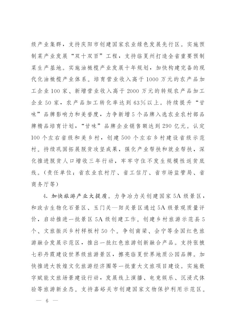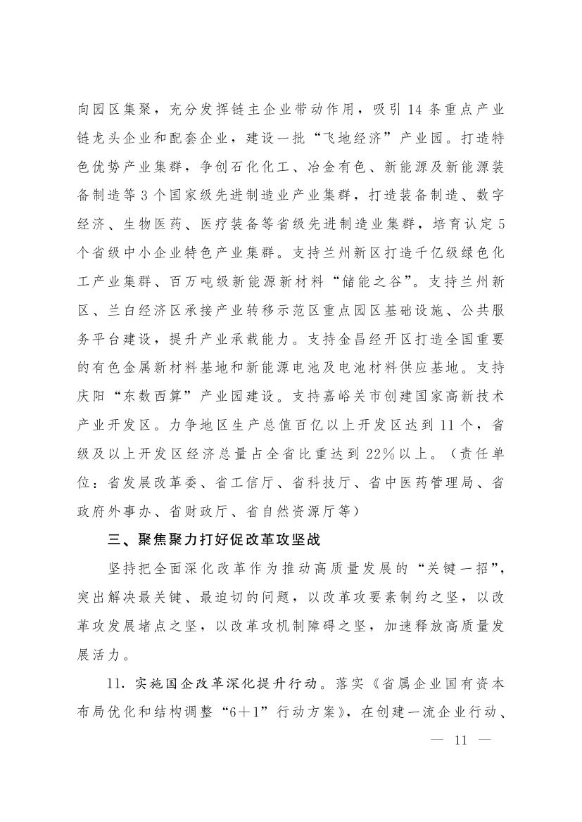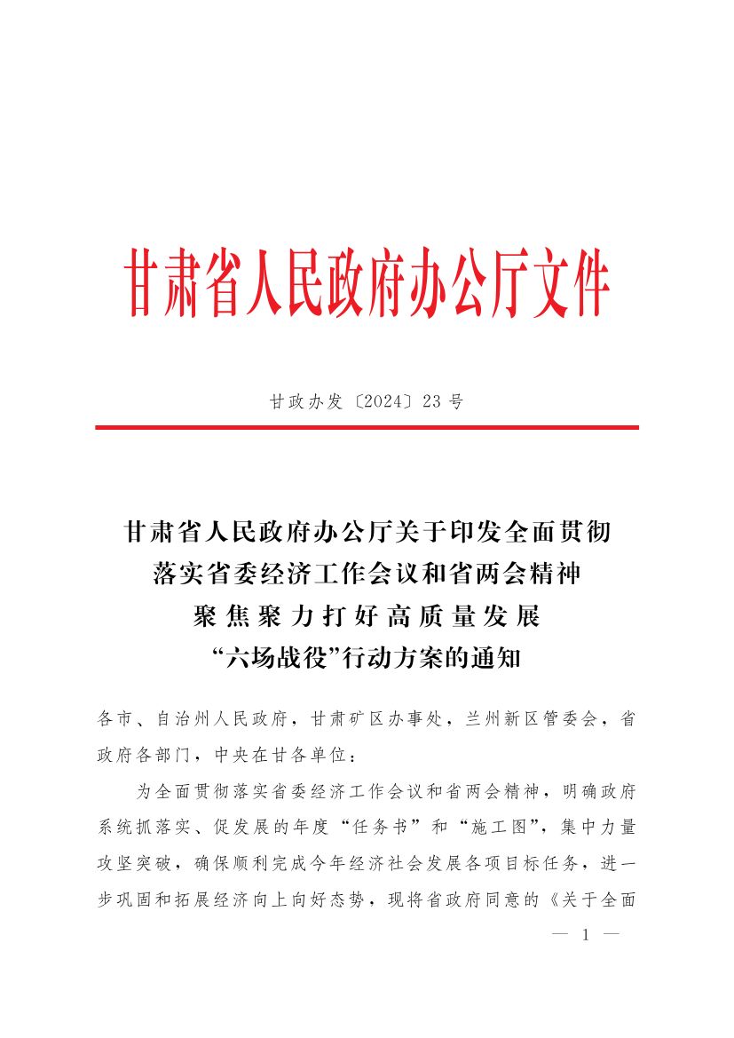 3月19日,甘肅省人民政府發(fā)布《甘肅省人民政府辦公廳關于印發(fā)全面貫徹落實省委經濟工作會議和省兩會精神聚焦聚力打好高質量發(fā)展“六場戰(zhàn)役”行動方案的通知》。 《通知》提出,要加快能源資源開發(fā)突破提升。推動新能源綜合開發(fā)利用示范區(qū)獲批實施。加快風光電大基地項目建設,全面啟動隴電入魯工程配套新能源項目,新增新能源并網裝機1200萬千瓦。爭取新開工建設抽水蓄能項目2—3個,新開工1000萬千瓦內用和外送煤電項目,新增新型儲能裝機200萬千瓦。推進電力外送通道建設,爭取隴電入魯工程早日建成投產,隴電入浙、隴電入川工程早日開工建設。 通知還提出要推動園區(qū)建設,打造一個新能源及新能源裝備制造國家級先進制造業(yè)產業(yè)集群。支持蘭州新區(qū)打造千億級綠色化工產業(yè)集群、百萬噸級新能源新材料“儲能之谷”。支持慶陽“東數西算”產業(yè)園建設。 壯大提升園區(qū)經濟增長極。推動項目向園區(qū)集中、產業(yè)向園區(qū)集聚,充分發(fā)揮鏈主企業(yè)帶動作用,吸引14條重點產業(yè)鏈龍頭企業(yè)和配套企業(yè),建設一批“飛地經濟”產業(yè)園。打造特色優(yōu)勢產業(yè)集群,爭創(chuàng)石化化工、冶金有色、新能源及新能源裝備制造等3個國家級先進制造業(yè)產業(yè)集群,打造裝備制造、數字經濟、生物醫(yī)藥、醫(yī)療裝備等省級先進制造業(yè)集群,培育認定5個省級中小企業(yè)特色產業(yè)集群。支持蘭州新區(qū)打造千億級綠色化工產業(yè)集群、百萬噸級新能源新材料“儲能之谷”。支持蘭州新區(qū)、蘭白經濟區(qū)承接產業(yè)轉移示范區(qū)重點園區(qū)基礎設施、公共服務平臺建設,提升產業(yè)承載能力。支持金昌經開區(qū)打造全國重要的有色金屬新材料基地和新能源電池及電池材料供應基地。支持慶陽“東數西算”產業(yè)園建設。 通知全文如下: